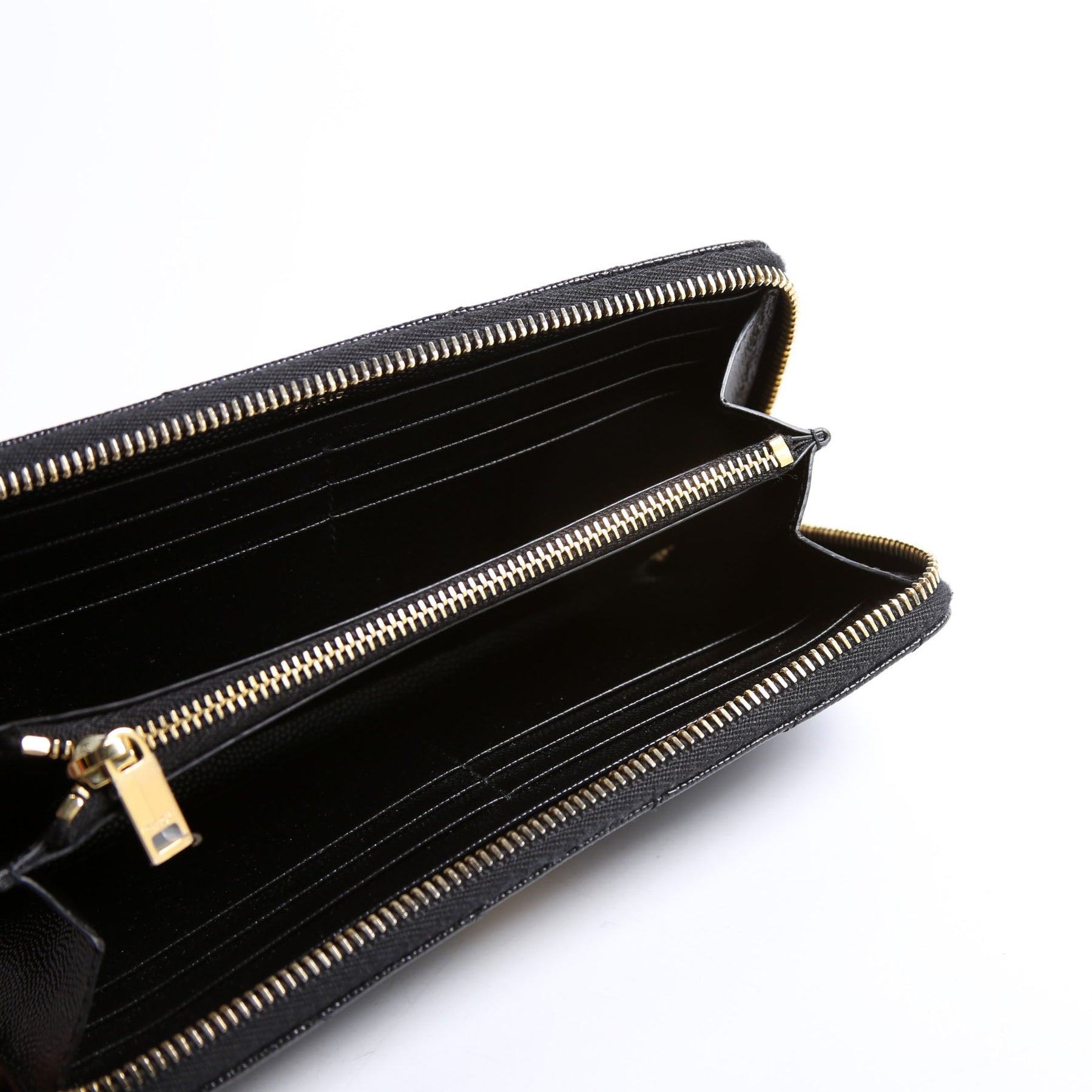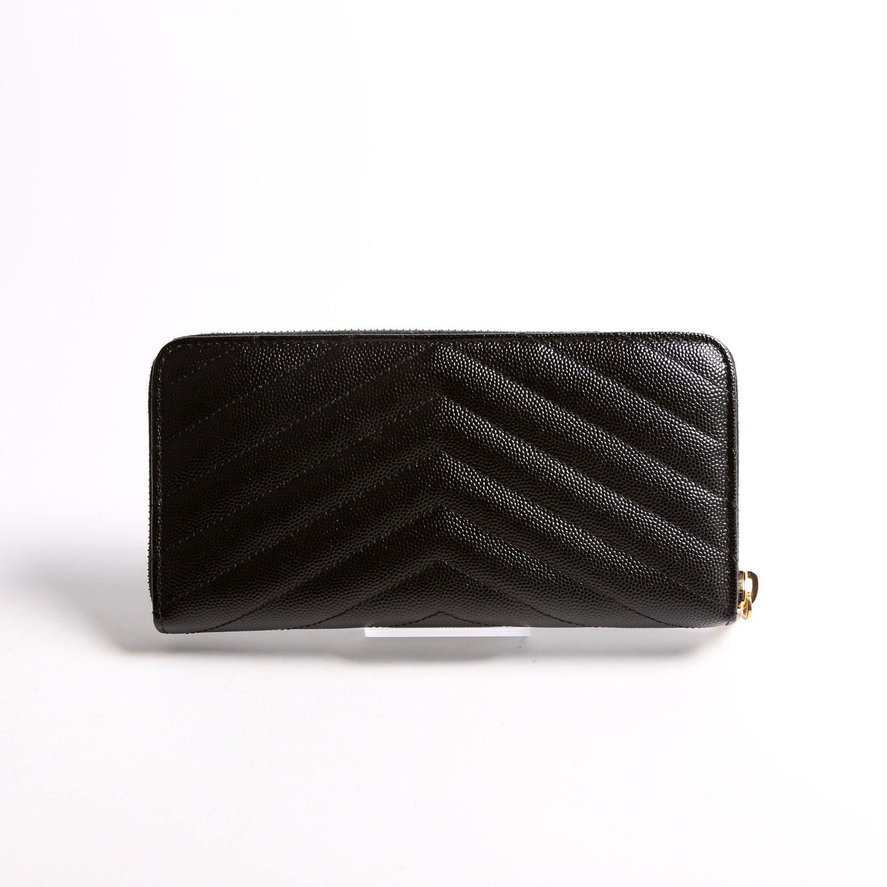 This pre-owned Saint Laurent Grain De Poudre Zip Around Wallet is guaranteed 100% authentic. The exterior is in the classic Saint Laurent leather.