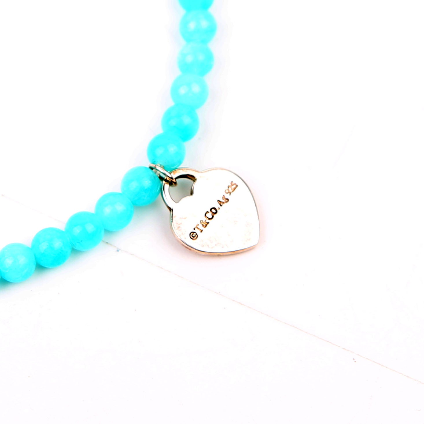 This pre-owned Tiffany & Co. Heart Tag Amazonite 4MM Beaded Bracelet is guaranteed 100% authentic.