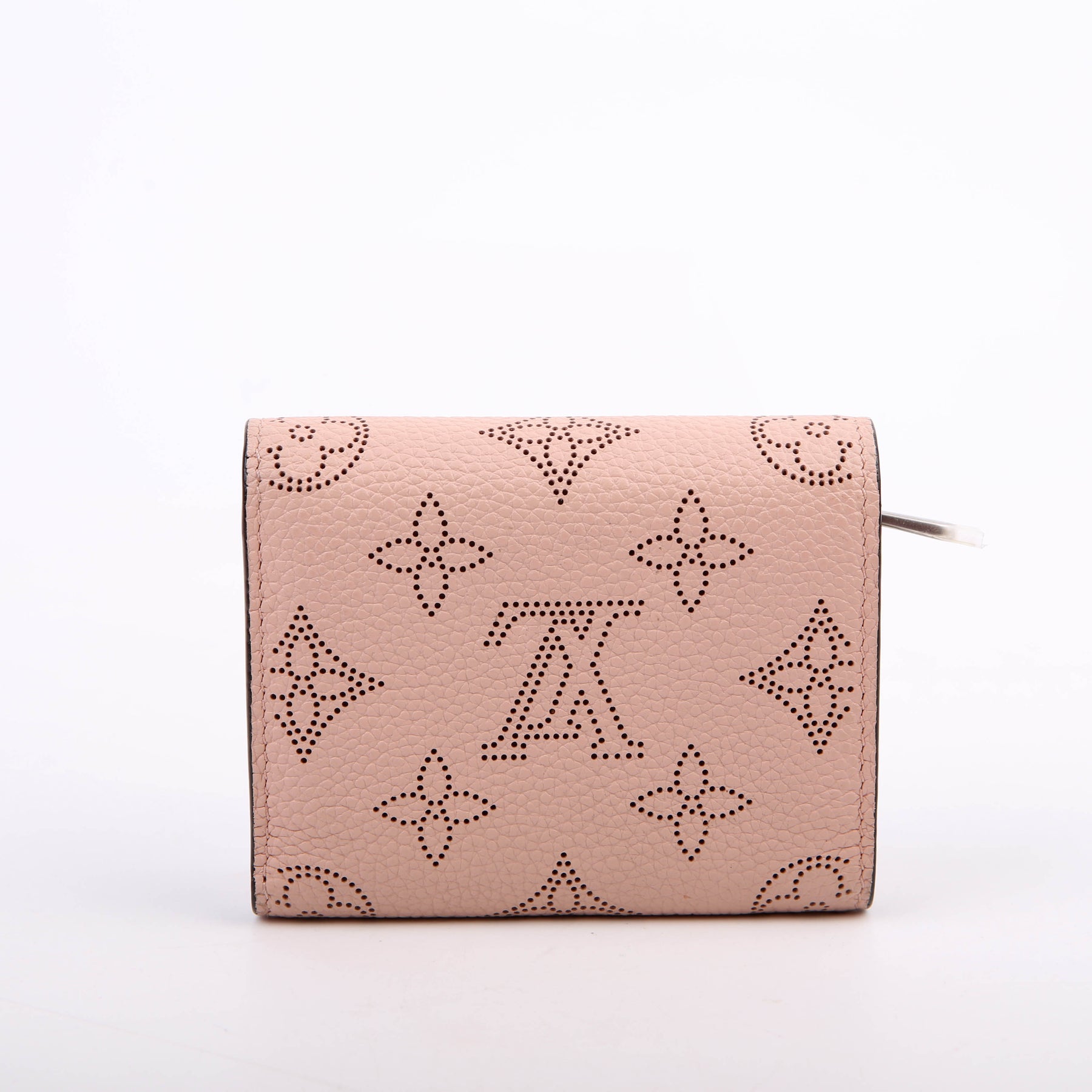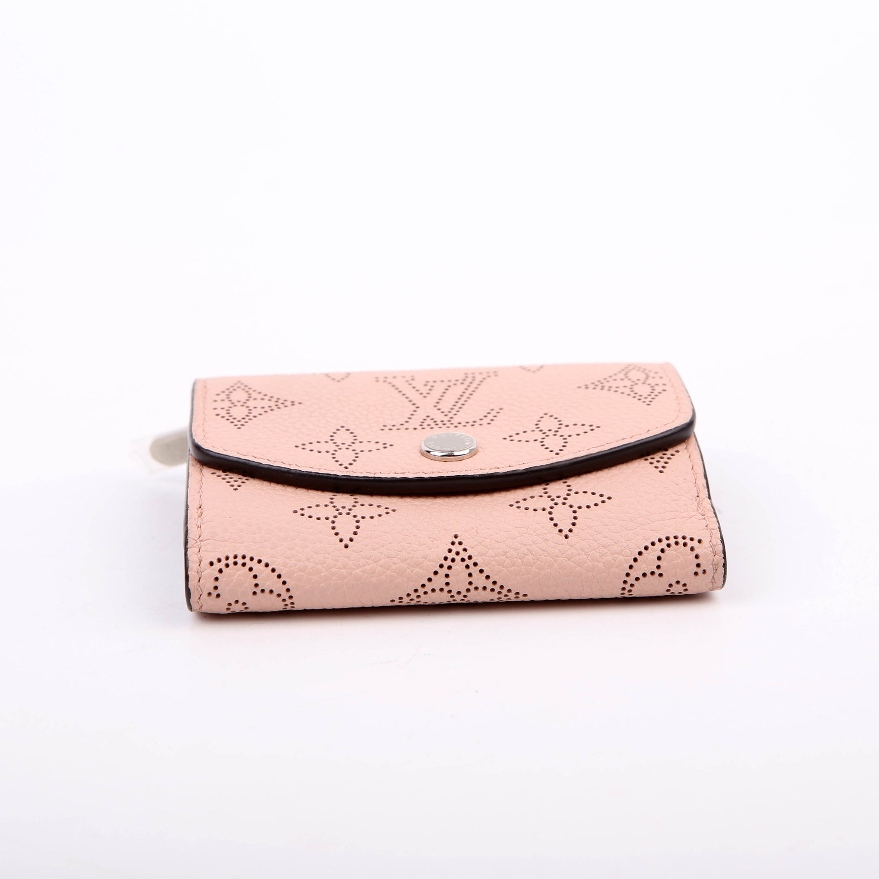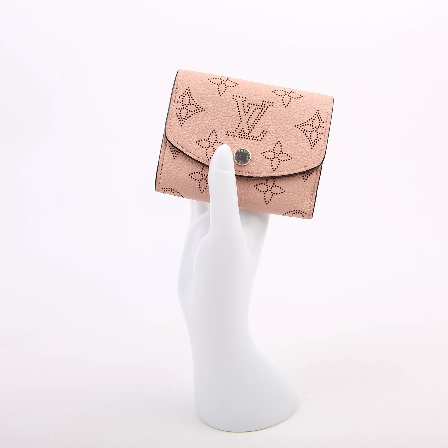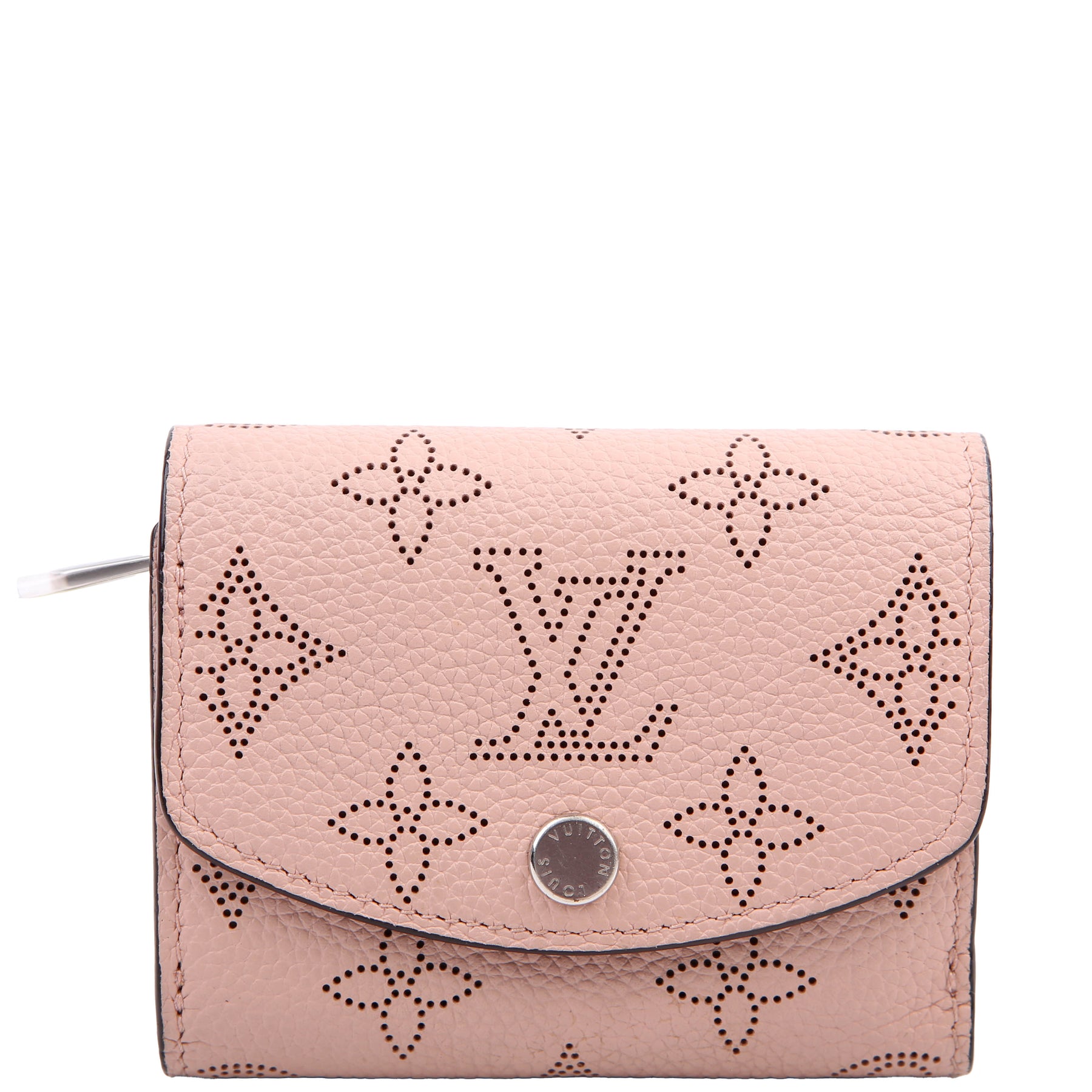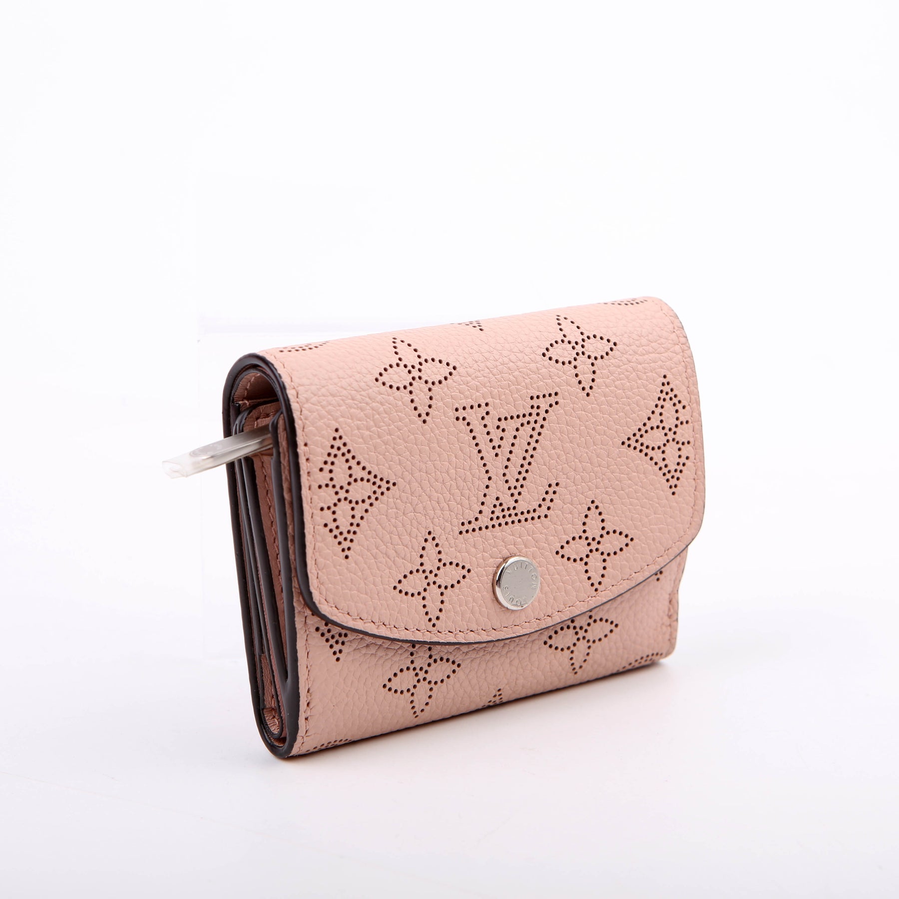 This pre-owned Louis Vuitton Iris Compact Wallet is guaranteed 100% authentic. The exterior is in the Louis Vuitton Mahina leather.