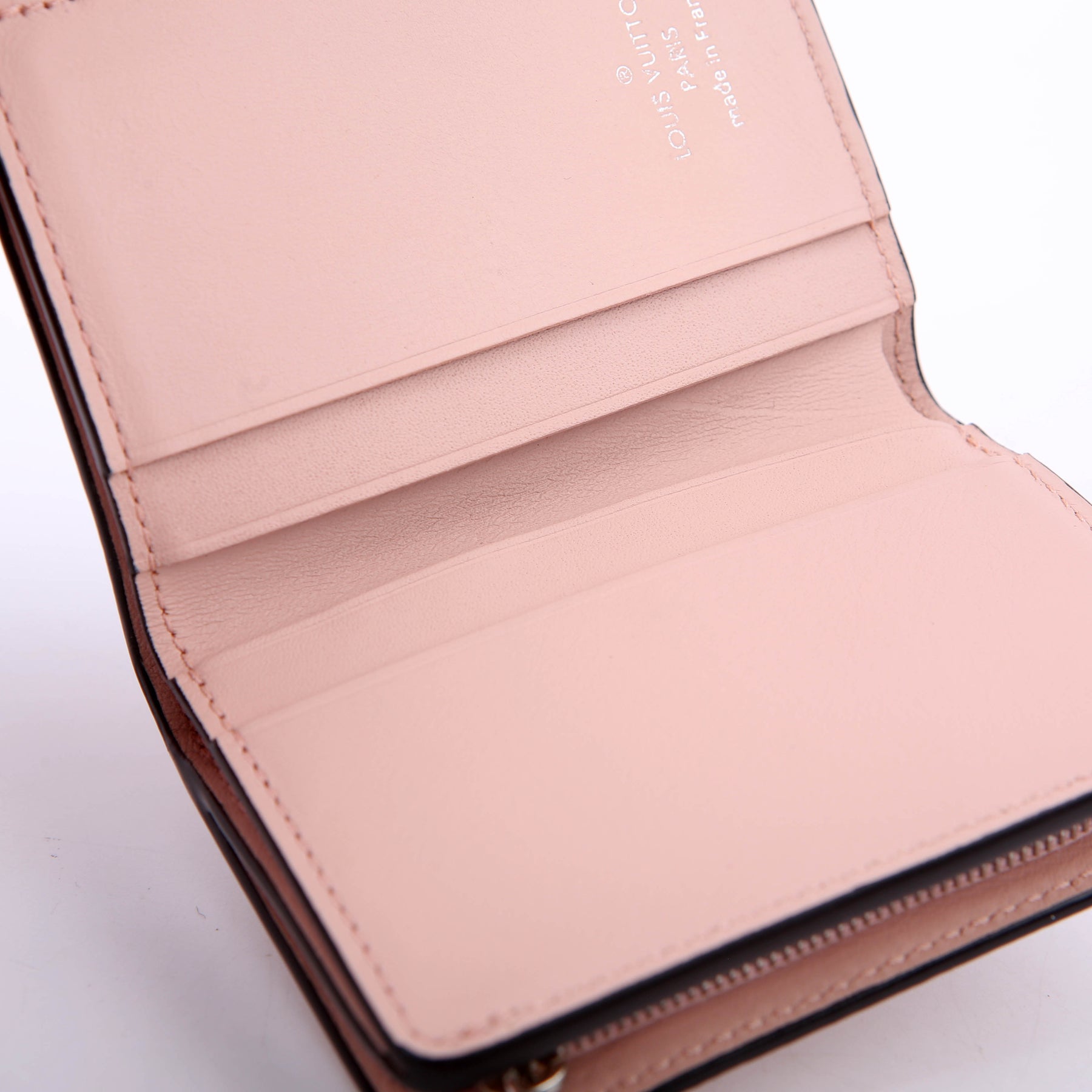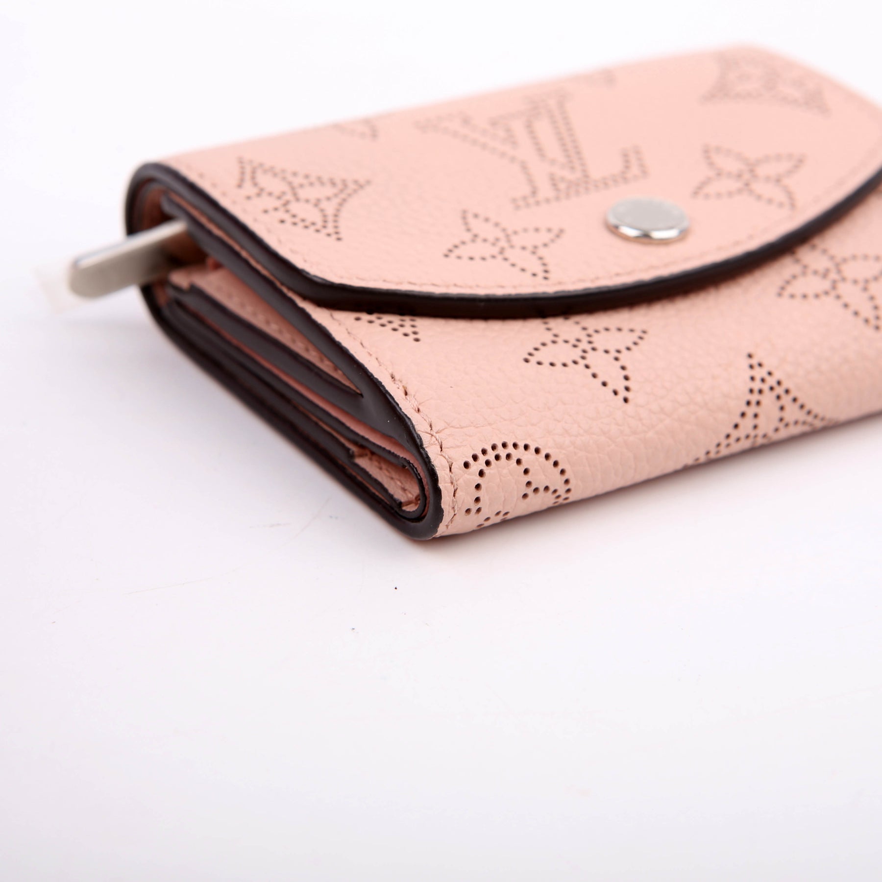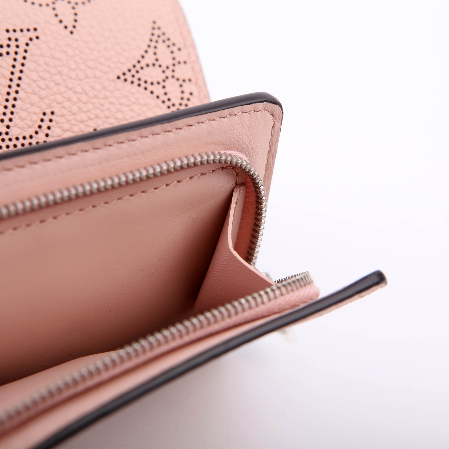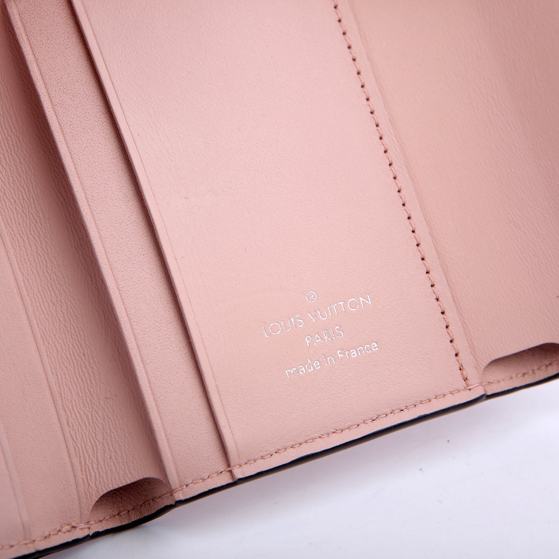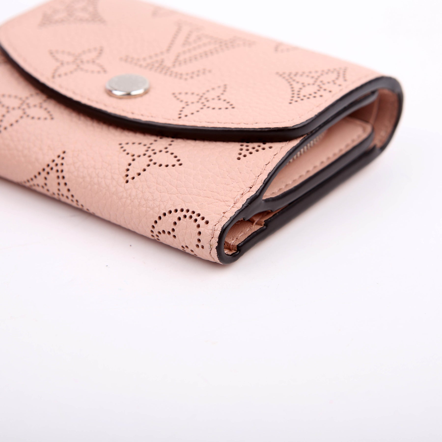 This pre-owned Louis Vuitton Iris Compact Wallet is guaranteed 100% authentic. The exterior is in the Louis Vuitton Mahina leather.