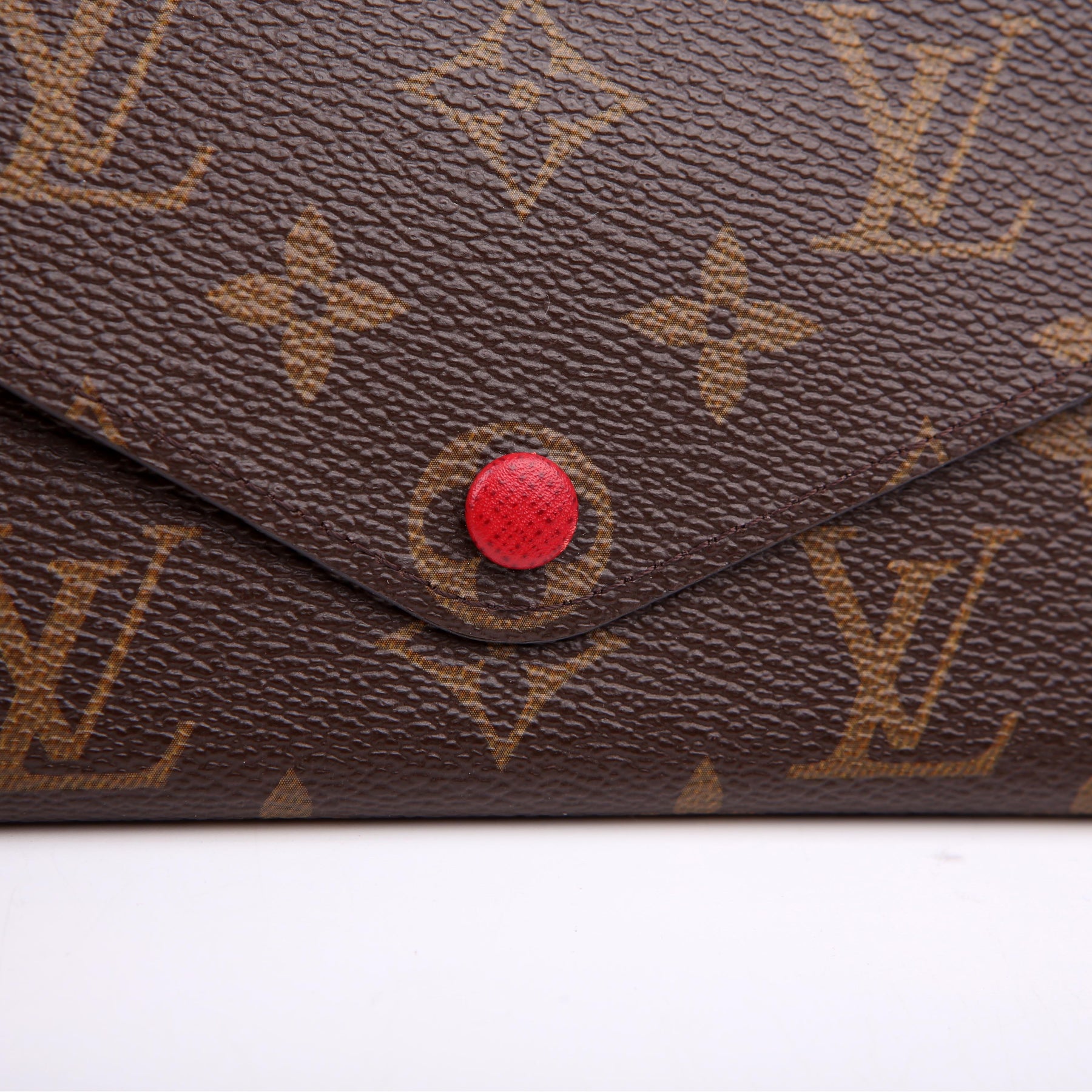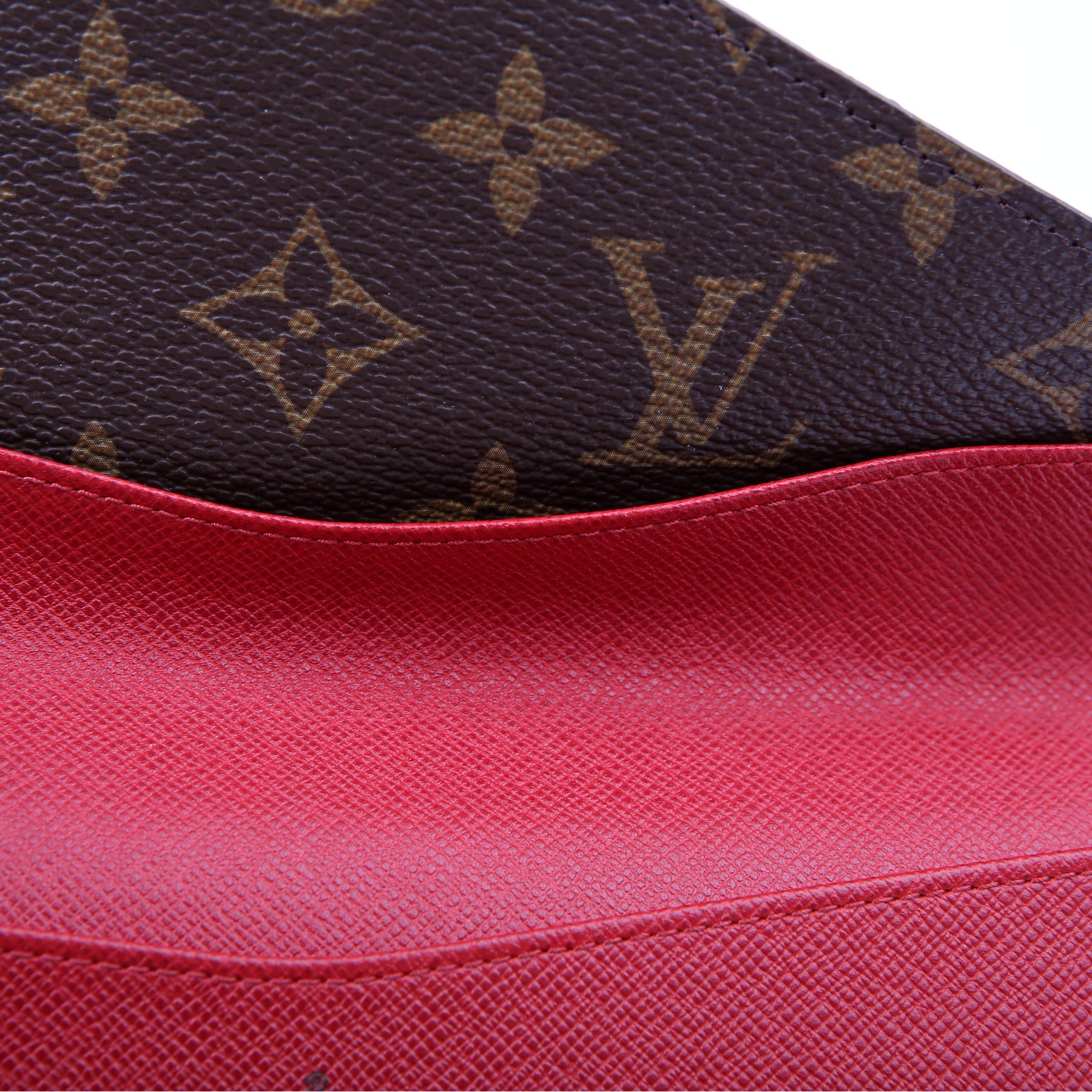 This pre-owned Louis Vuitton Josephine Wallet is guaranteed 100% authentic. The exterior is in the classic Louis Vuitton Monogram coated canvas.