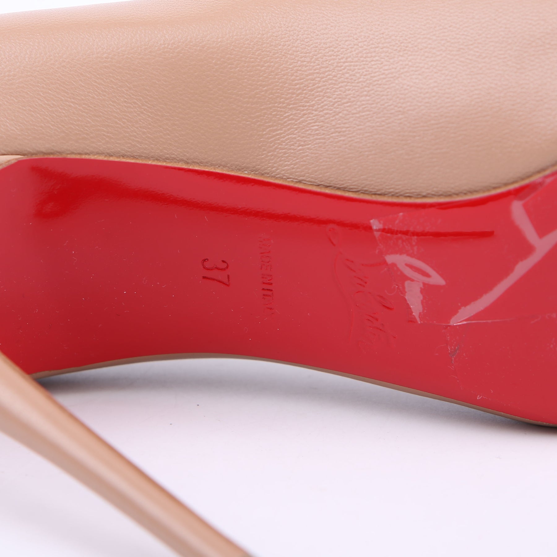 Soles: The soles have adhesive protectors are free from wear.