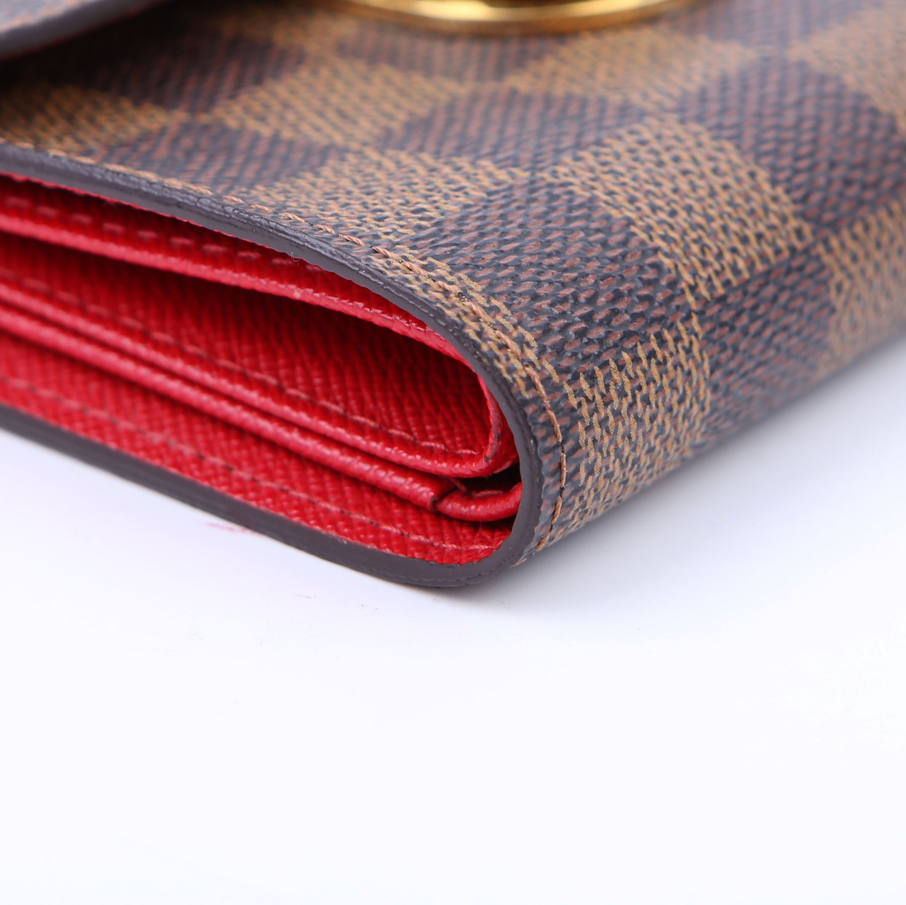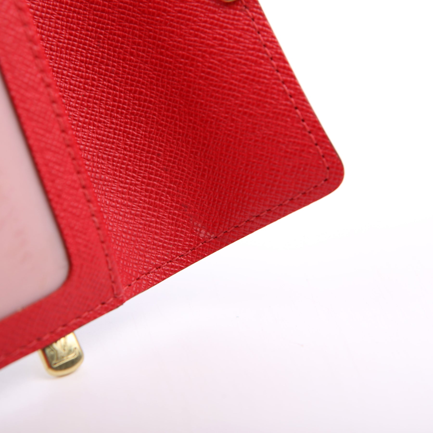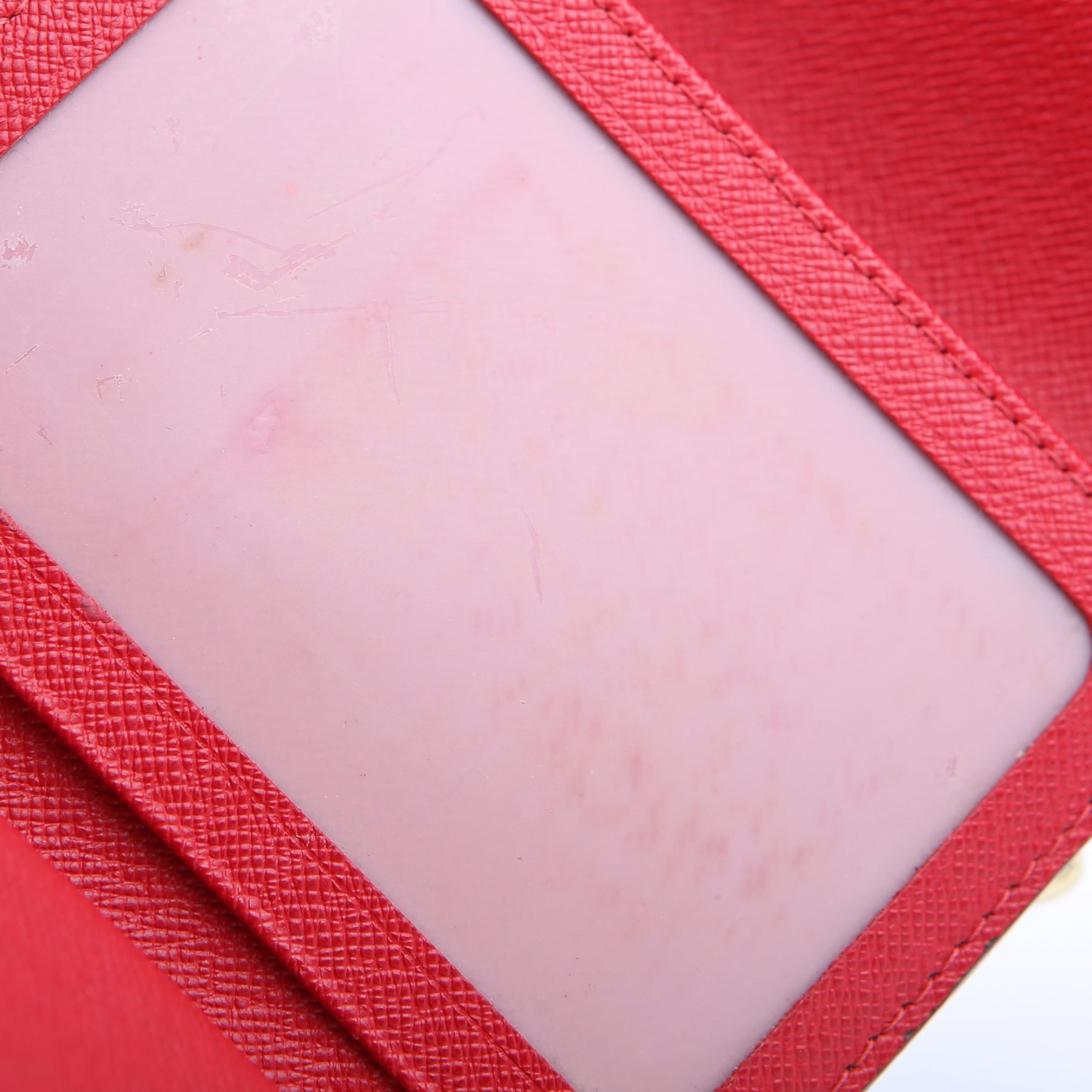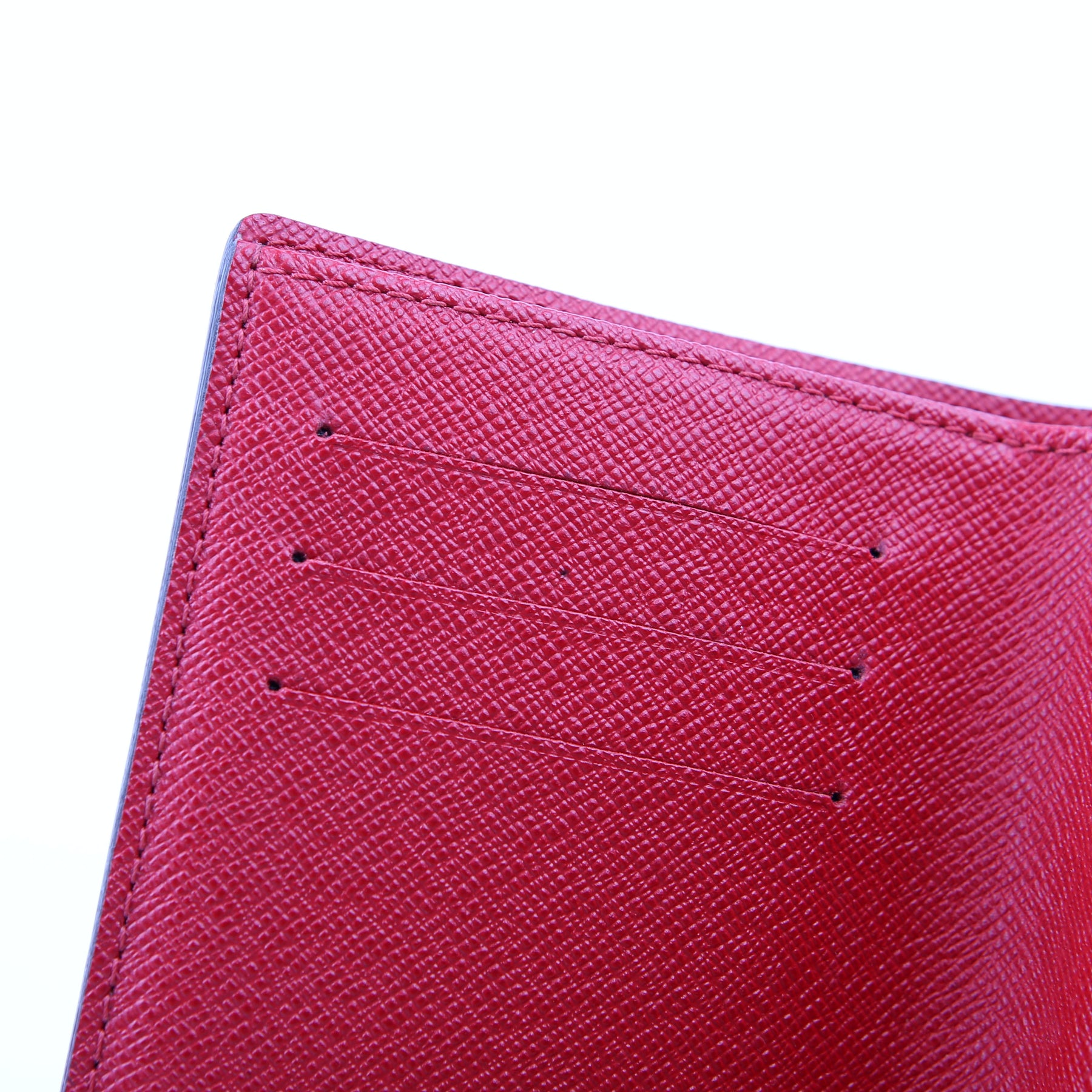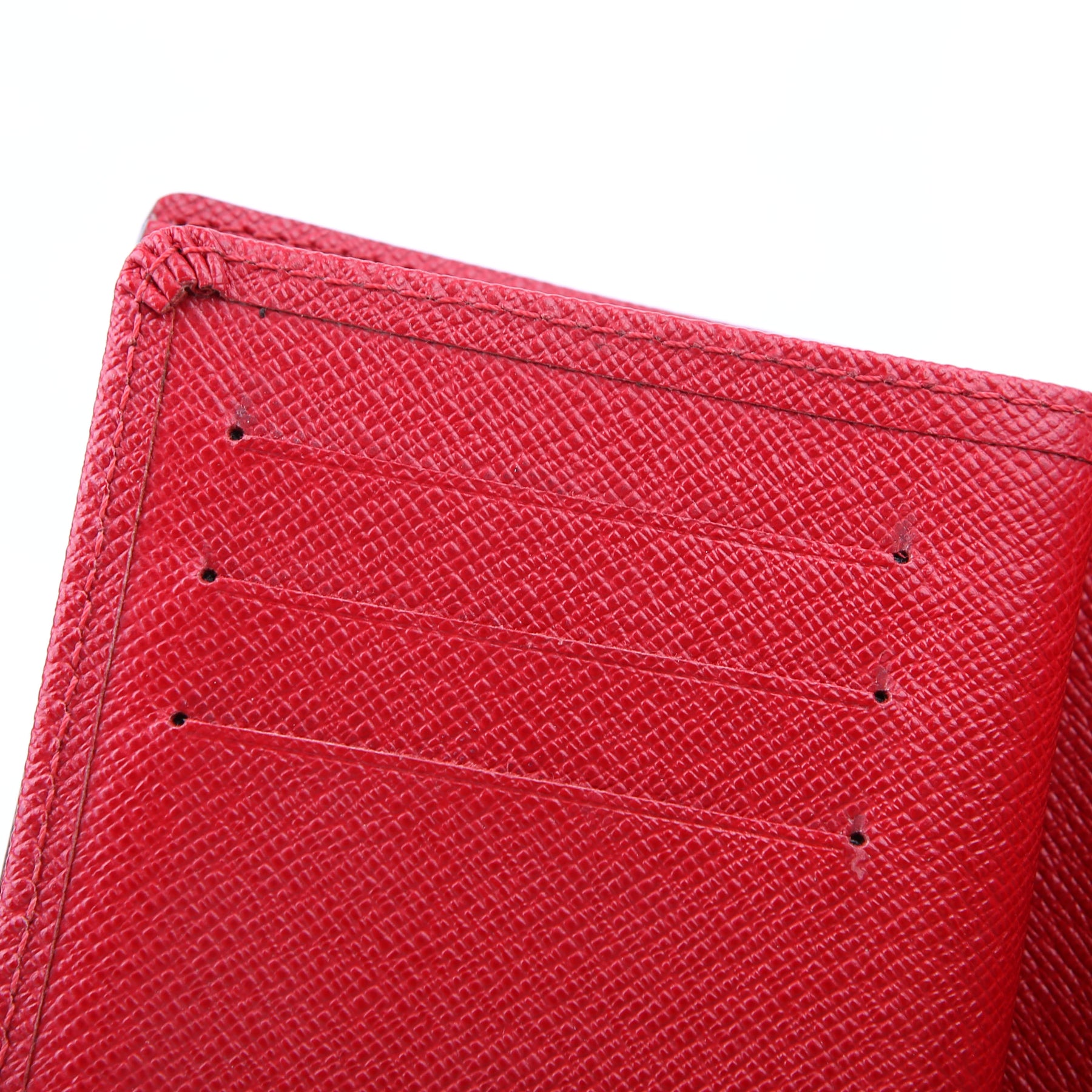 Interior: The interior is clean. The ID holder has minor scratches. The interior features nine card slots, one ID slot, one bill slot, and one open slot.