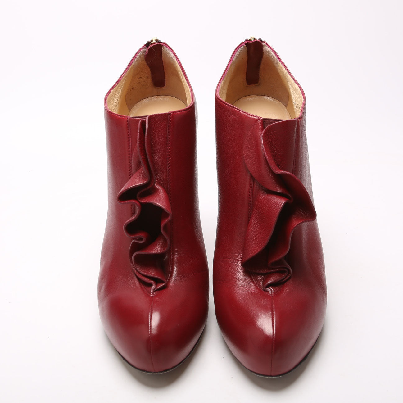 These pre-owned Valentino Leather Ruffle Ankle Boots are guaranteed 100% authentic.