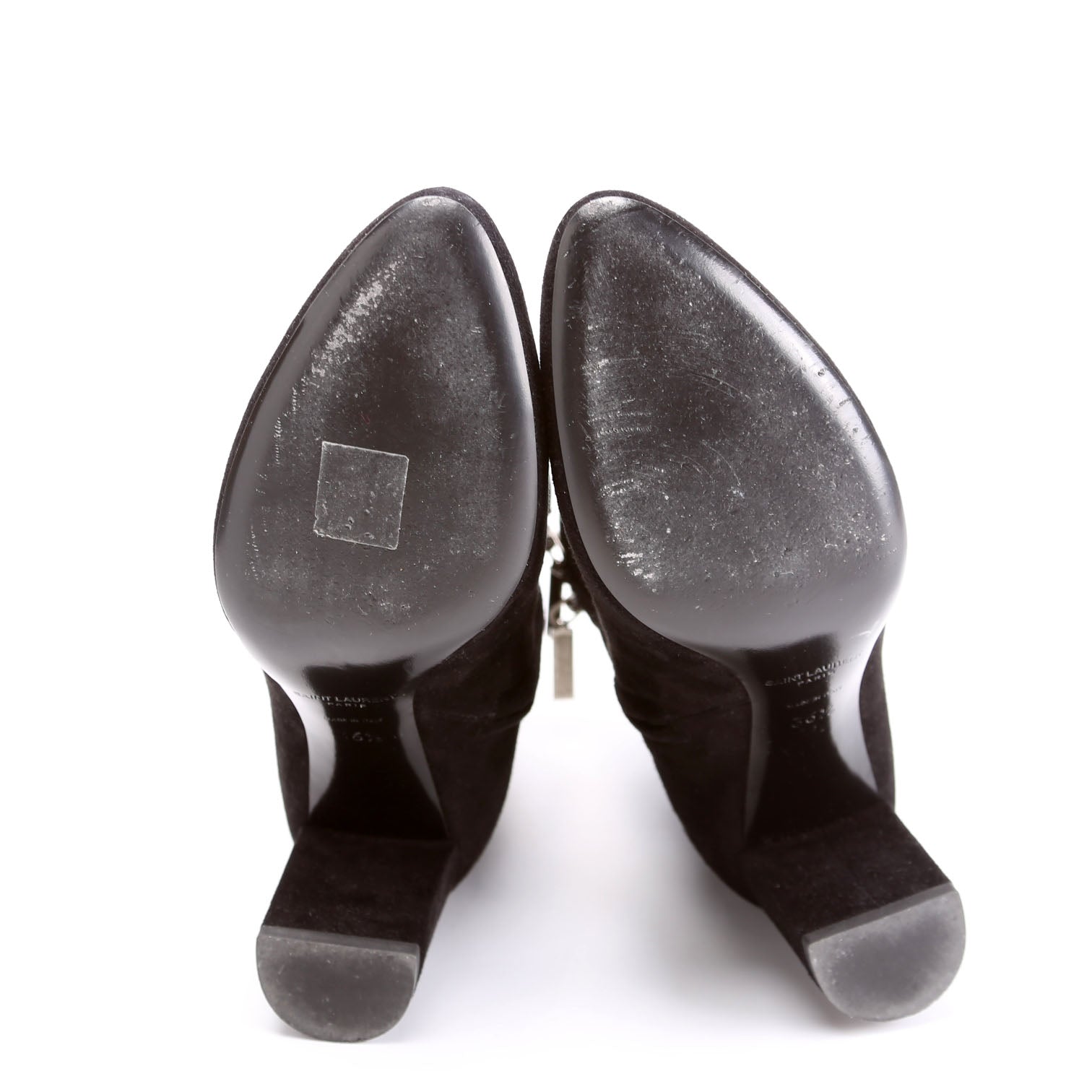 These pre-owned Saint Laurent Suede Ankle Boots are guaranteed 100% authentic.