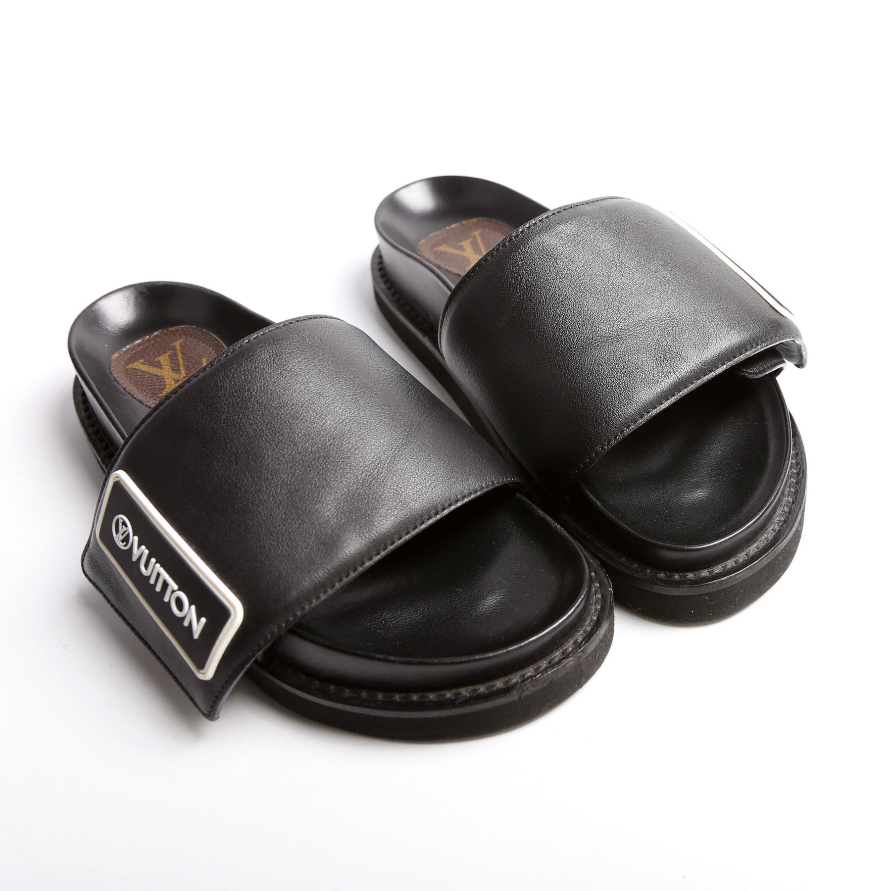 These pre-owned Louis Vuitton LV Sunset Flat Comfort Mules are guaranteed 100% authentic.