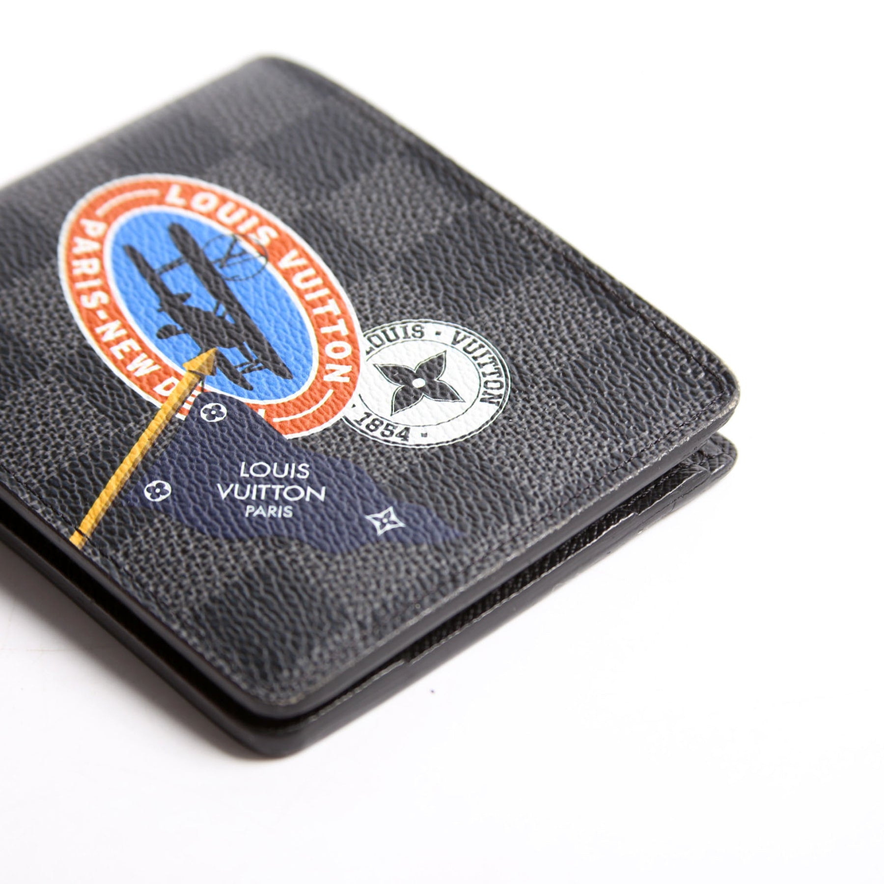 These pre-owned Louis Vuitton Mens Multiple Wallet World Tour are guaranteed 100% authentic. The exterior is in the classic Louis Vuitton Damier Graphite coated canvas.