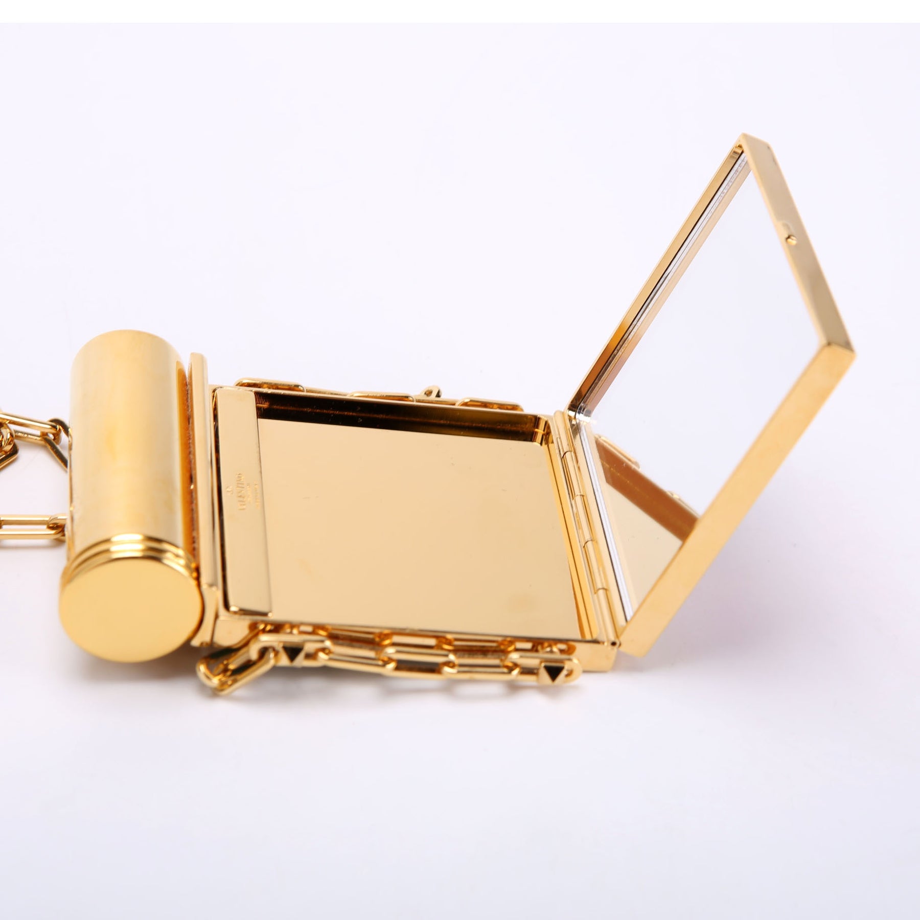 These pre-owned Valentino Minaudiere Lipstick/Mirror Chain are guaranteed 100% authentic.