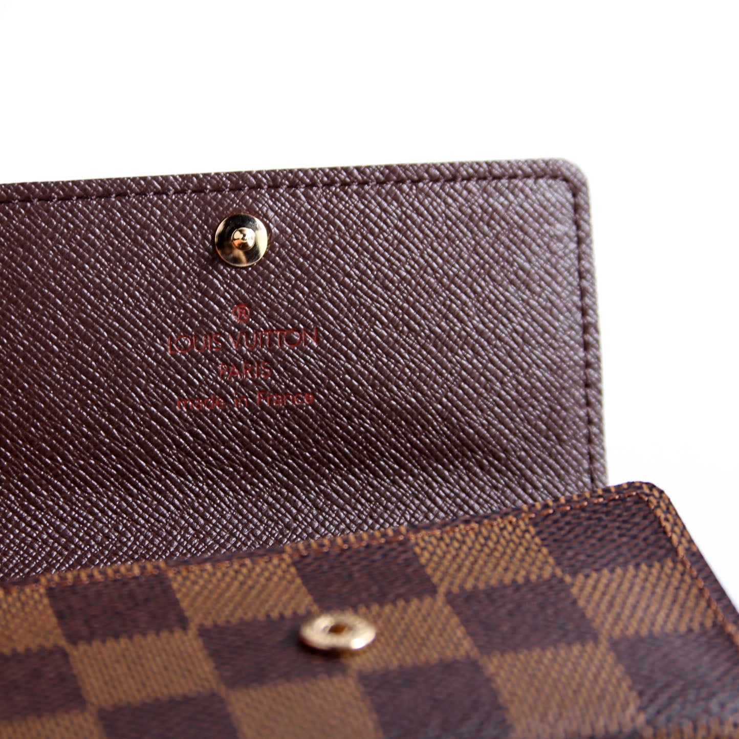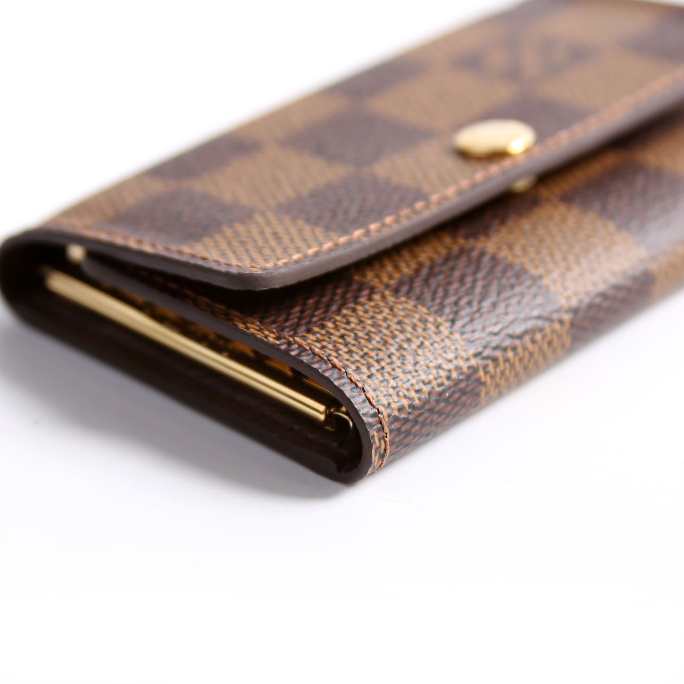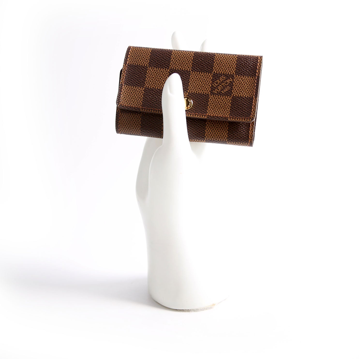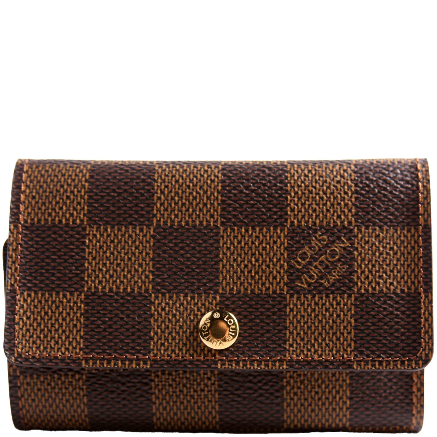 This pre-owned Louis Vuitton Multicles 6 Ring is guaranteed 100% authentic. The exterior is in the classic Louis Vuitton Damier Ebene coated canvas.