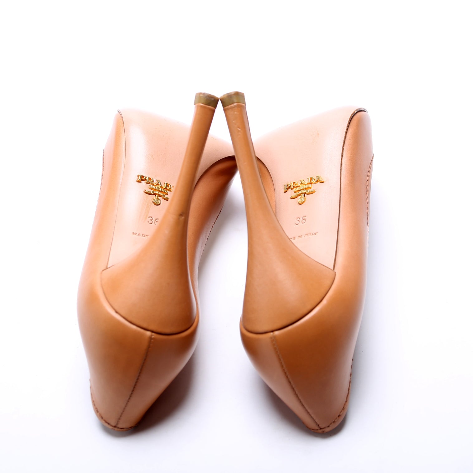These pre-owned Prada Peep Toe Leather Pumps are guaranteed 100% authentic.