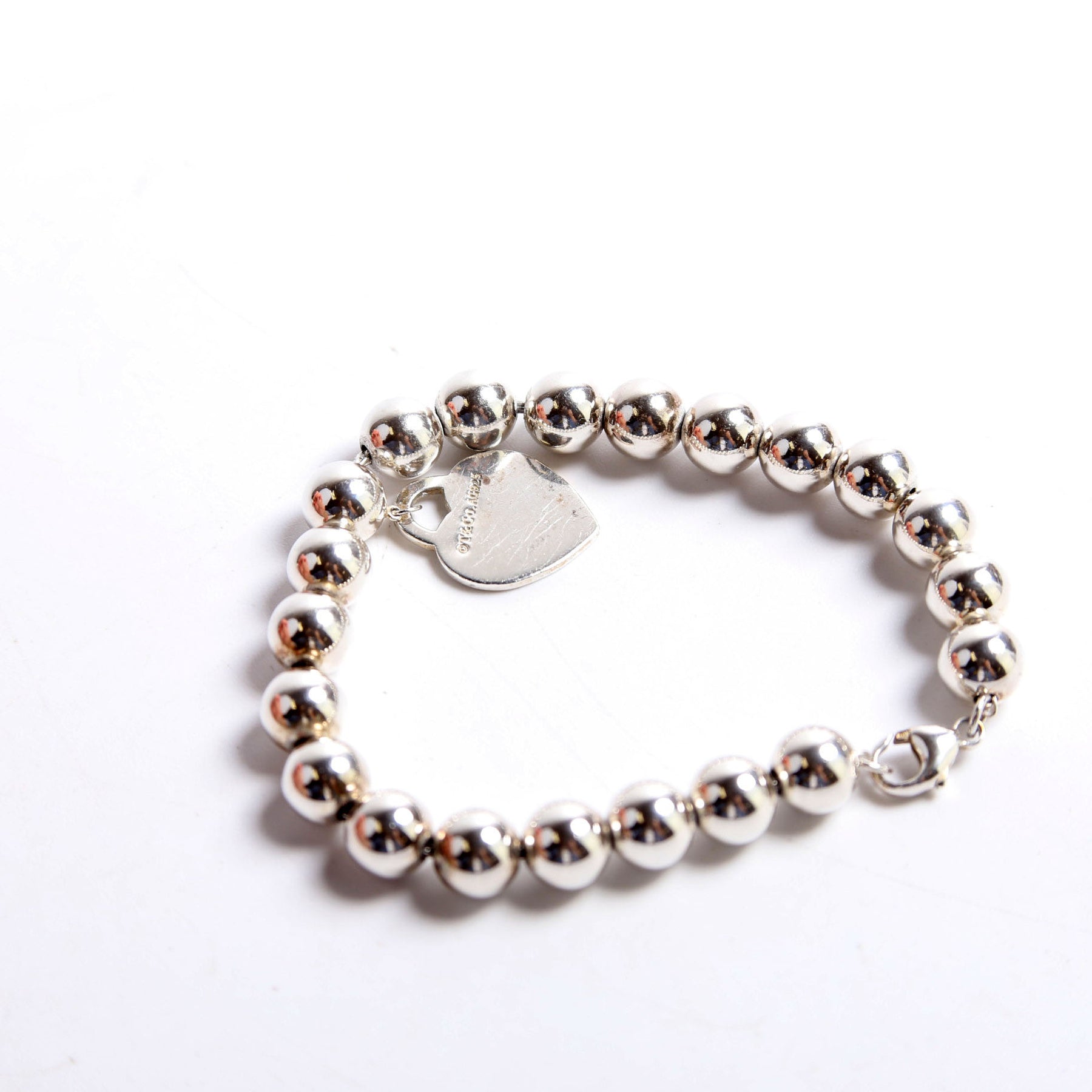 This pre-owned Tiffany & Co. Please Return Bead Mini Heart 925/750 Bracelet is guaranteed 100% authentic.