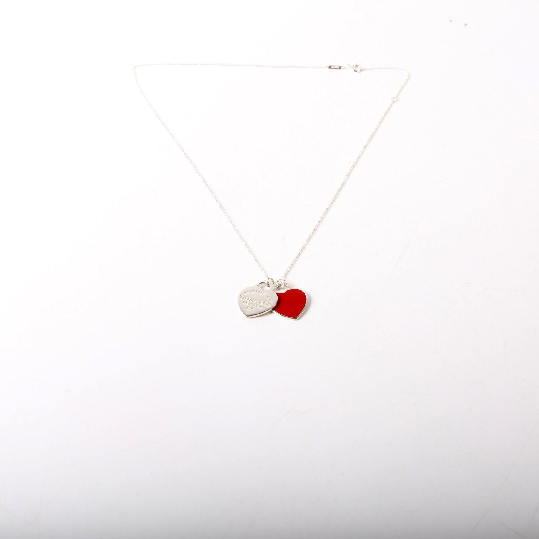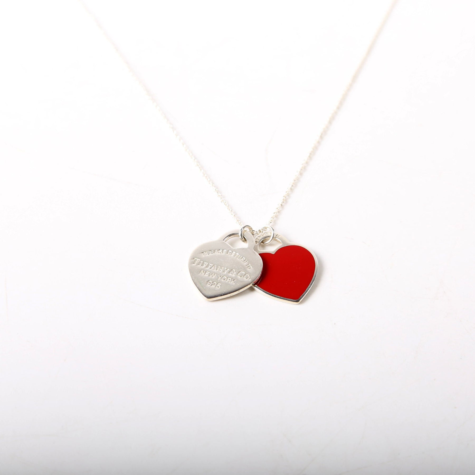 Please Return Small Double Enamel Heart Necklace 925 Red
