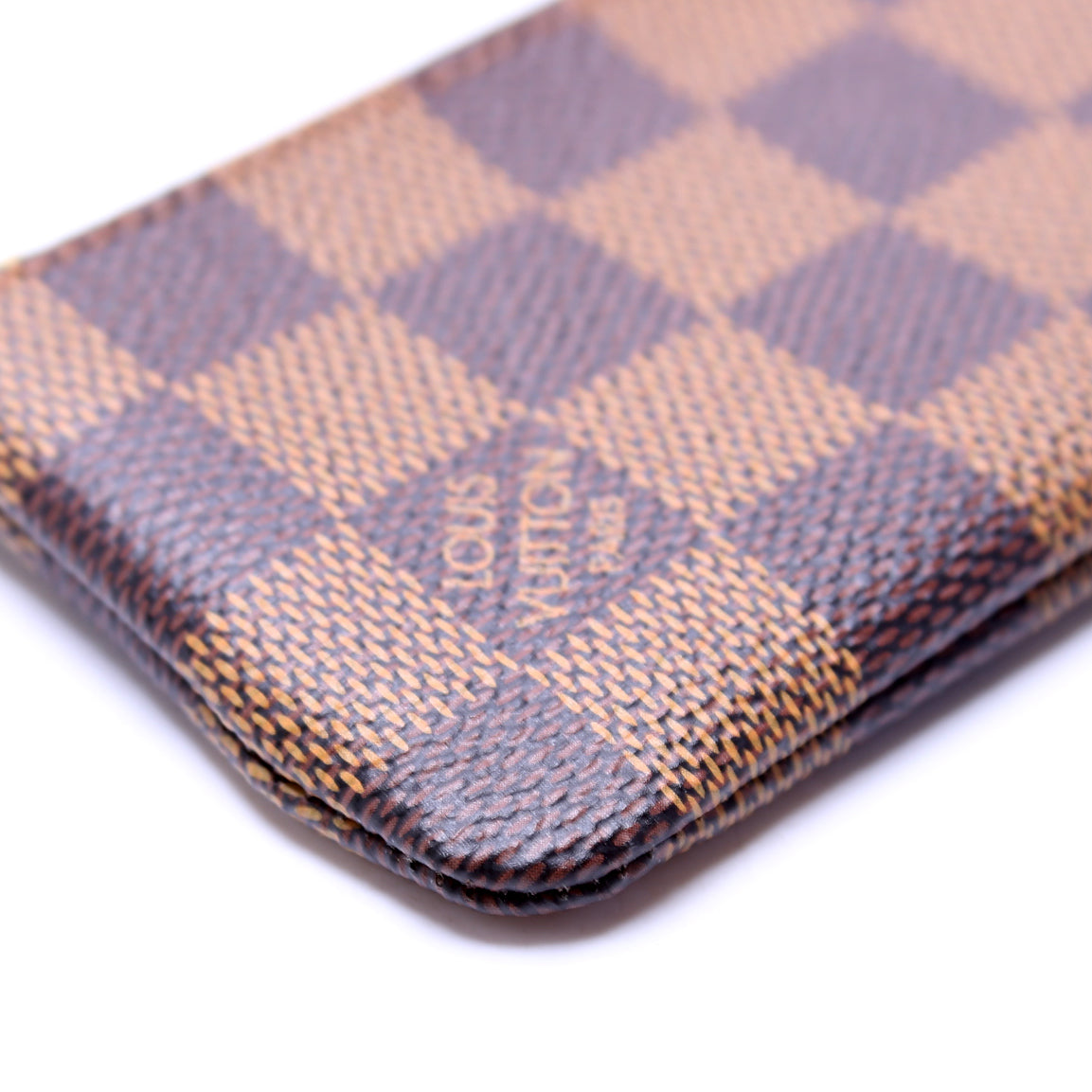 This pre-owned Louis Vuitton Pochette Cles is guaranteed 100% authentic. The exterior is in the classic Louis Vuitton Damier Ebene coated canvas.