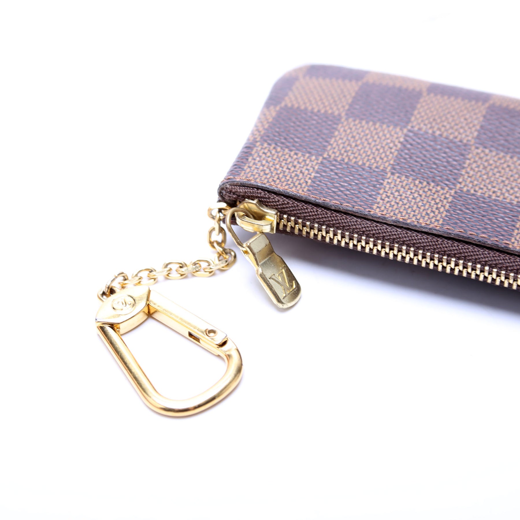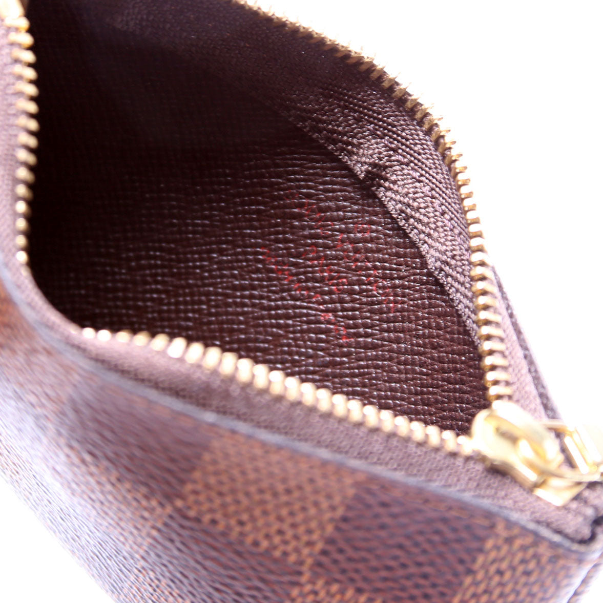 This pre-owned Louis Vuitton Pochette Cles is guaranteed 100% authentic. The exterior is in the classic Louis Vuitton Damier Ebene leather.