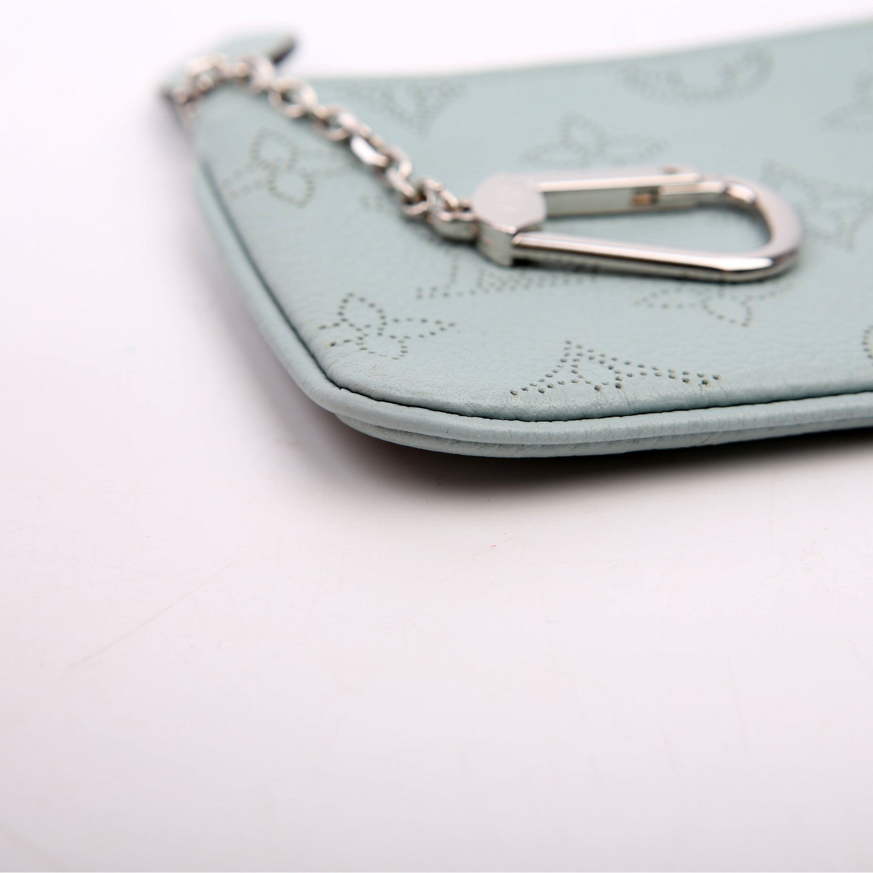 This pre-owned Louis Vuitton Pochette Cles is guaranteed 100% authentic. The exterior is in the classic Louis Vuitton Mahina leather.