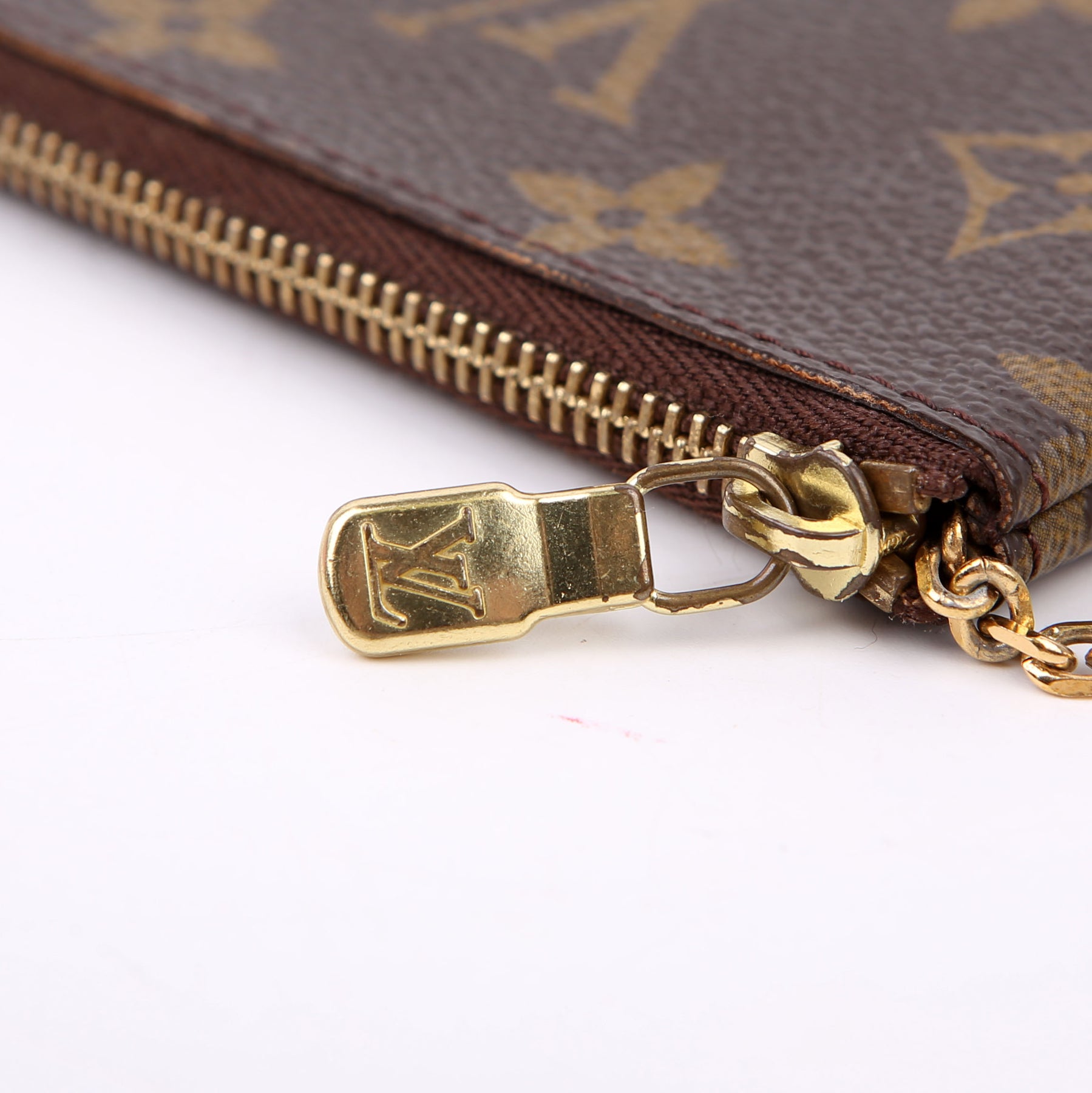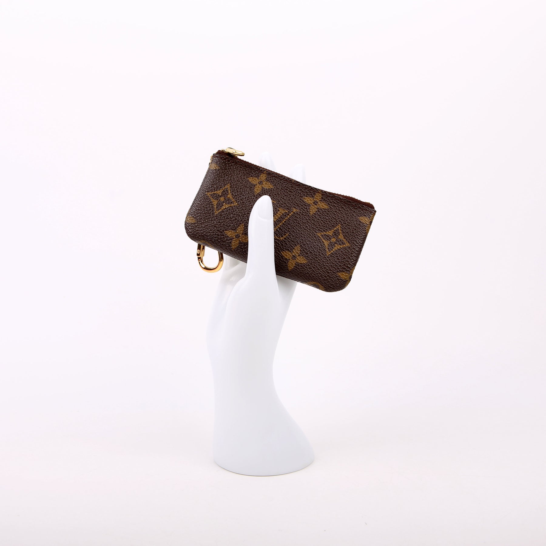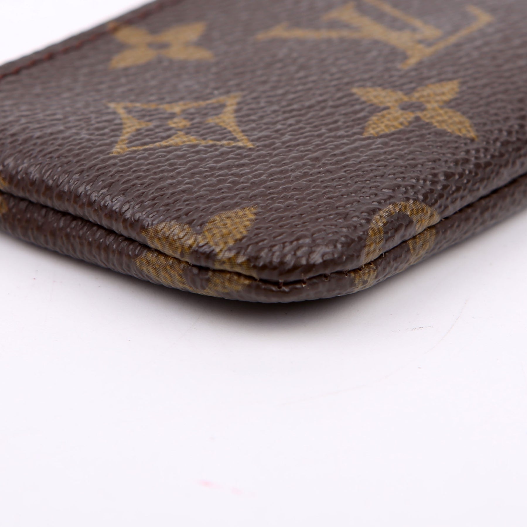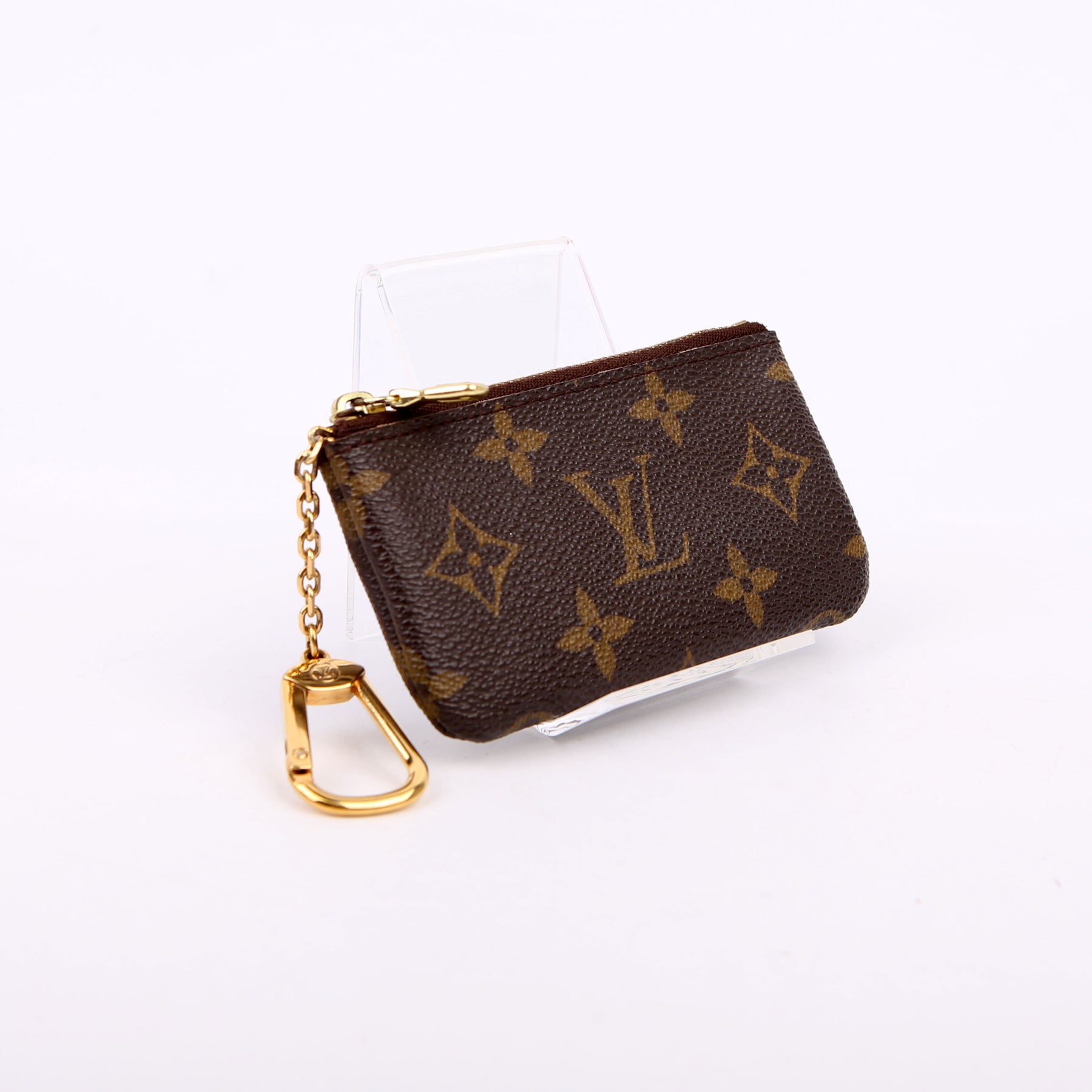 This pre-owned Louis Vuitton Pochette Cles is guaranteed 100% authentic. The exterior is in the classic Louis Vuitton Monogram coated canvas.