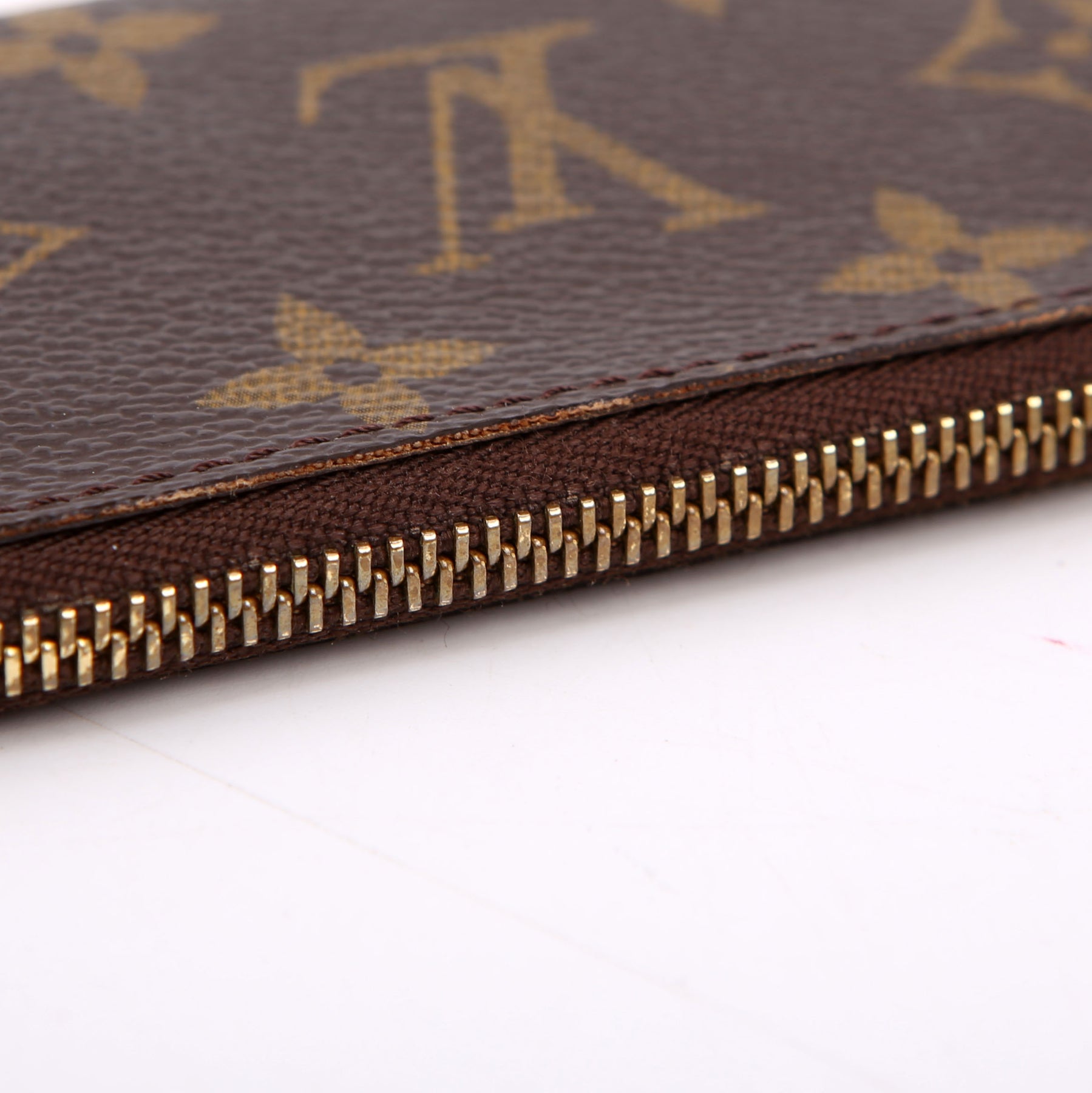 Hardware: The zipper operates properly. The hardware has minor wear and discoloration.