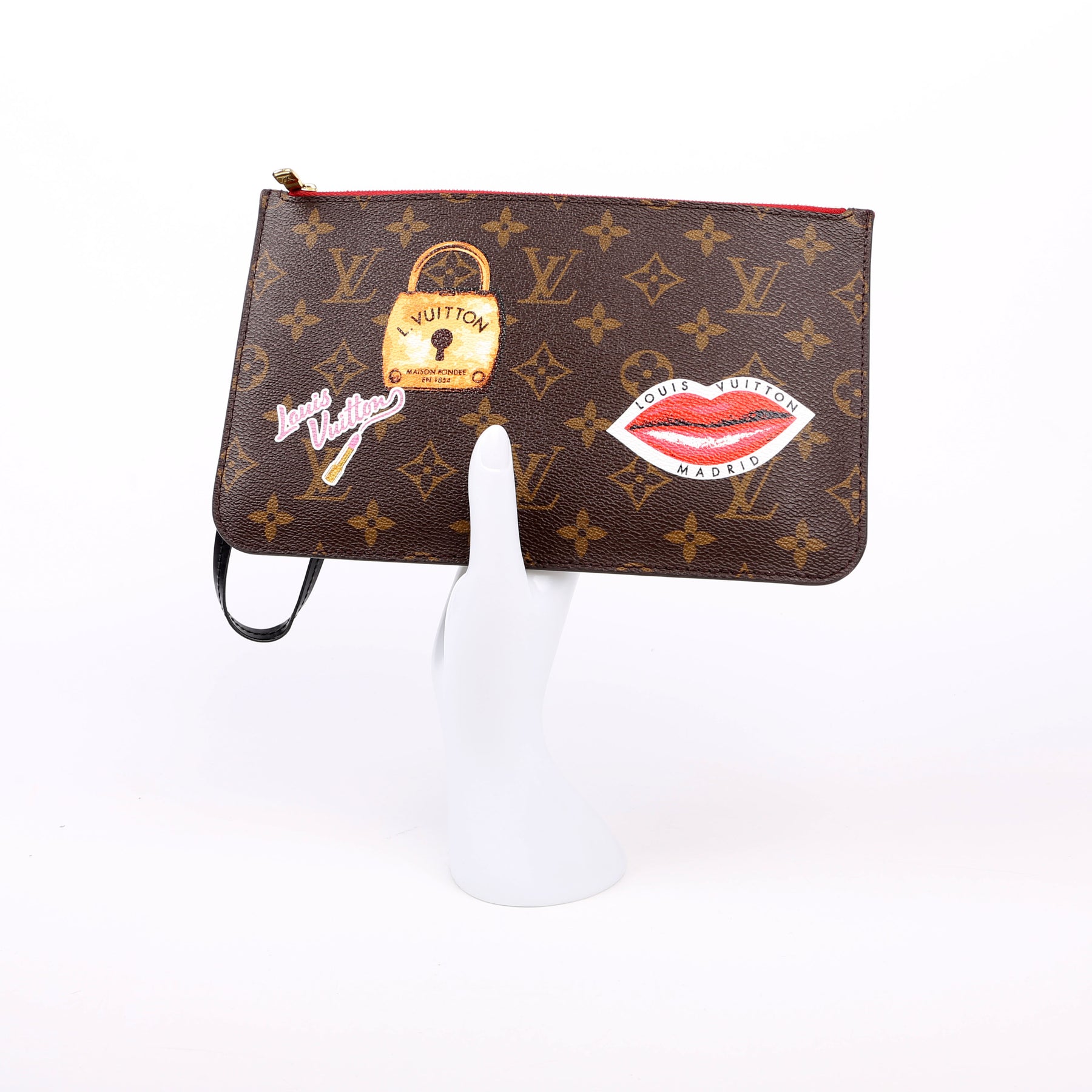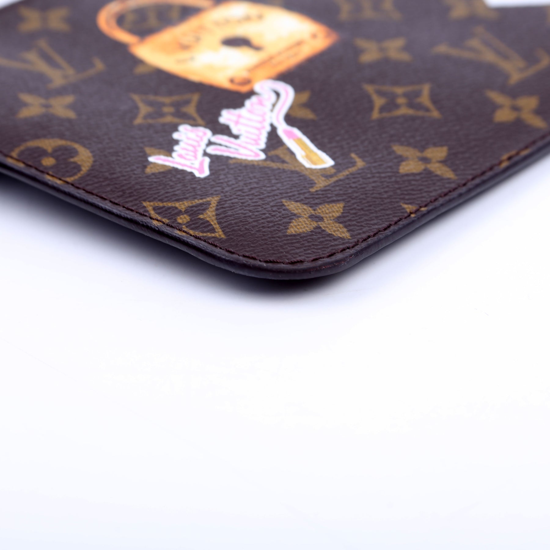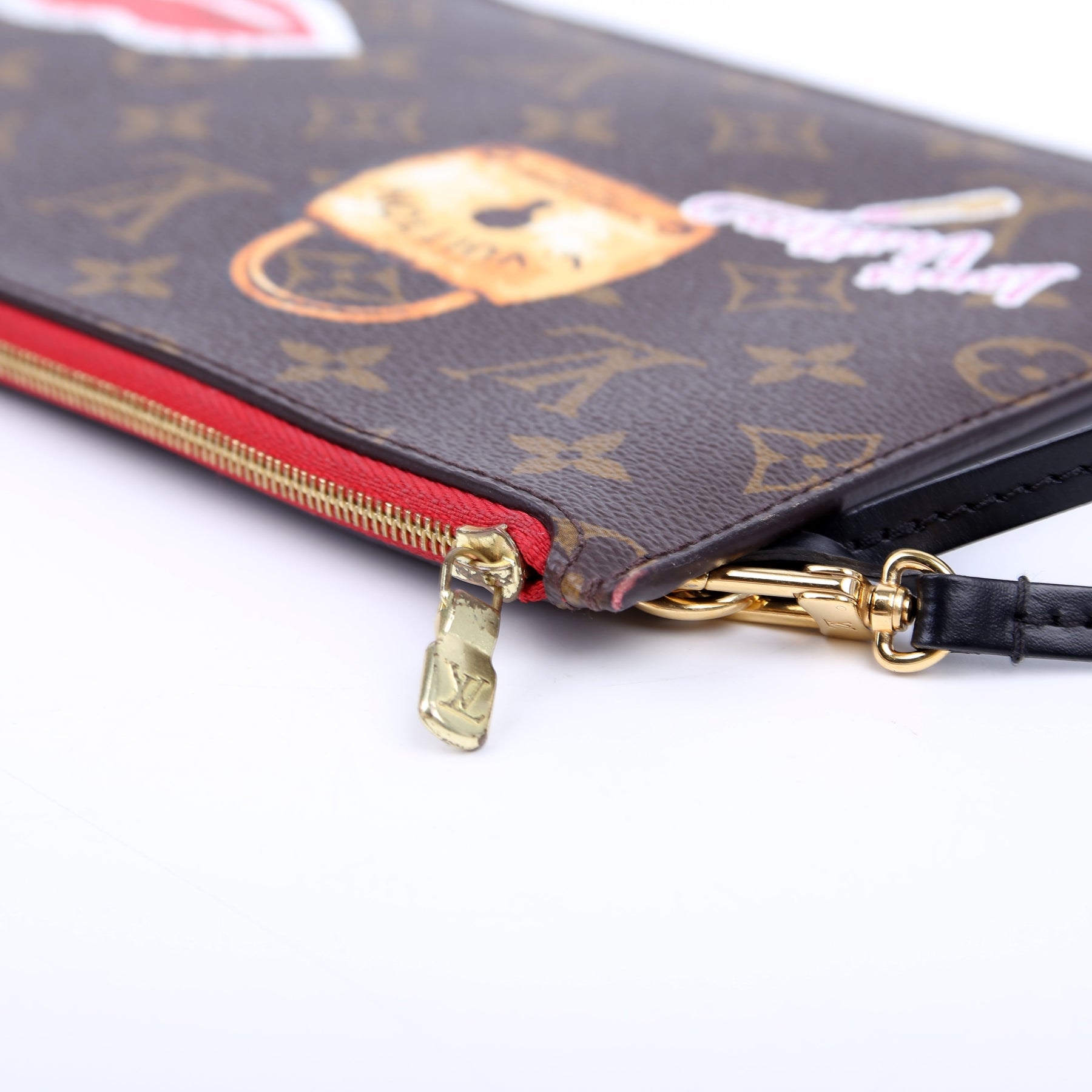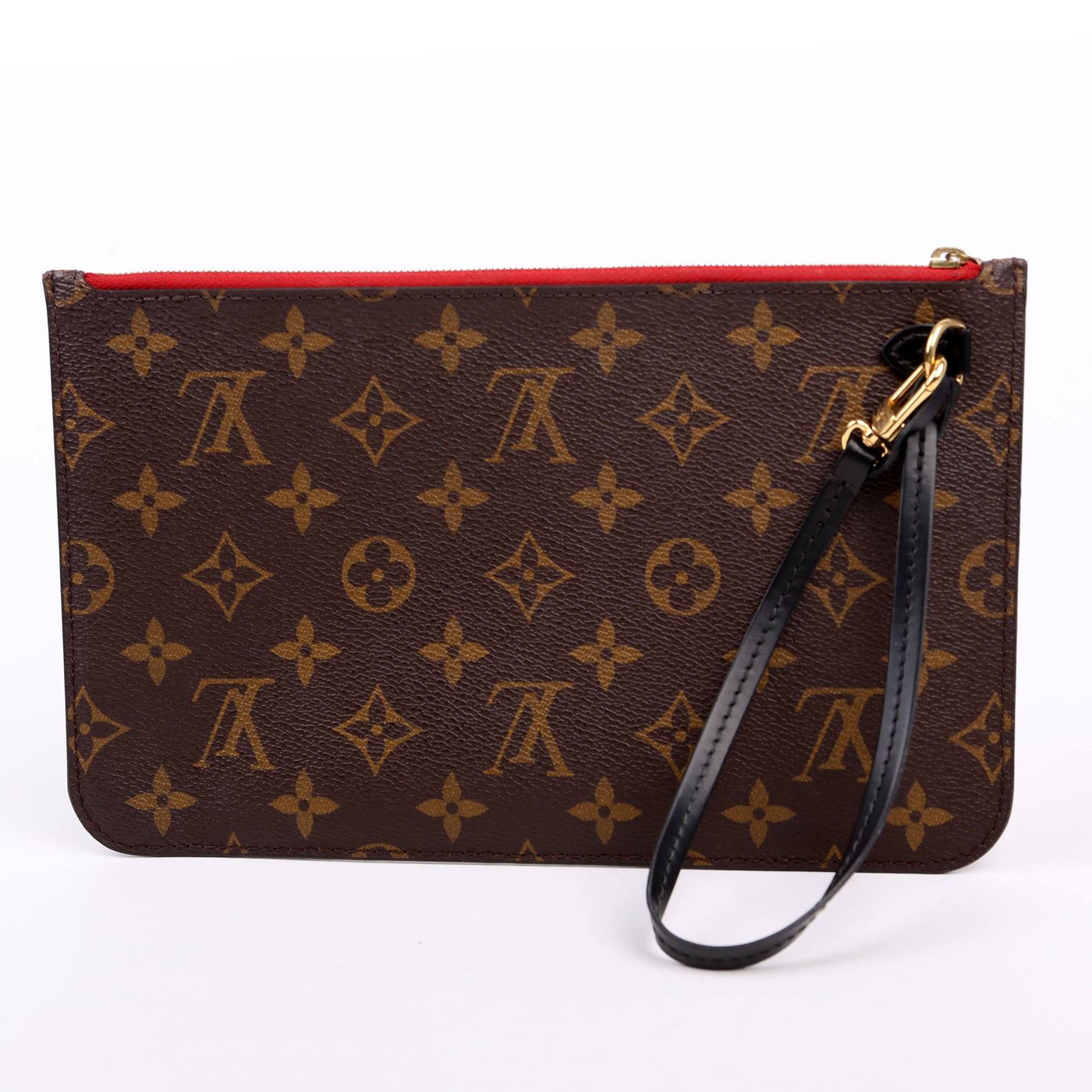 This pre-owned Louis Vuitton Pochette Only Monogram World Tour is guaranteed 100% authentic. The exterior is in the classic Louis Vuitton Monogram coated canvas.