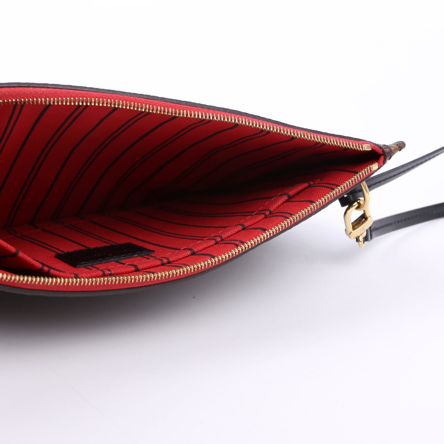 This pre-owned Louis Vuitton Pochette Only Monogram World Tour is guaranteed 100% authentic. The exterior is in the classic Louis Vuitton Monogram coated canvas.