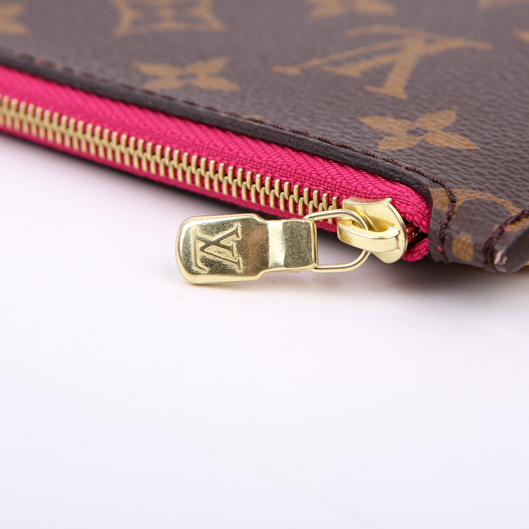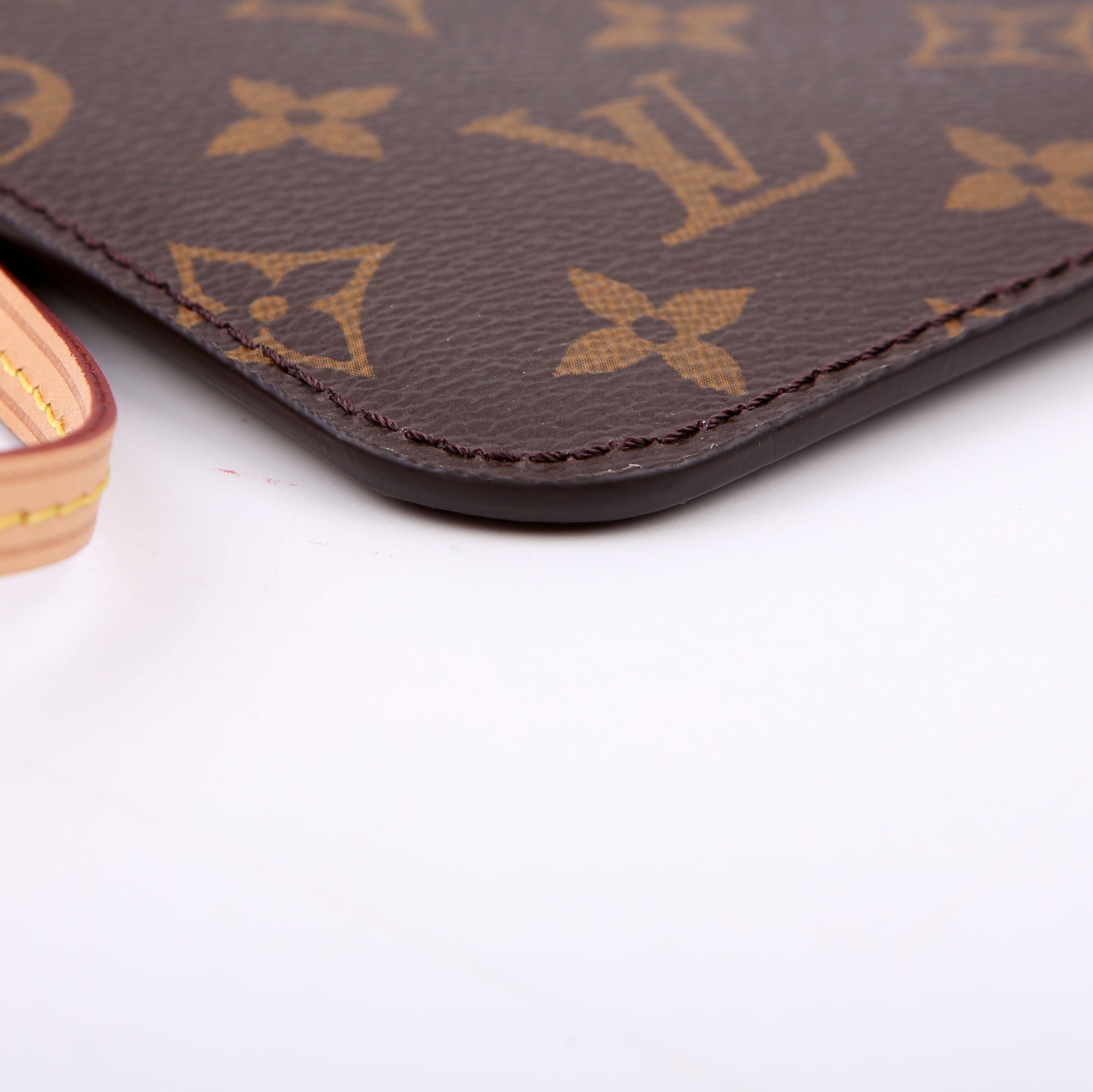 This pre-owned Louis Vuitton Pochette Only Neverfull is guaranteed 100% authentic. The exterior is in the classic Louis Vuitton Monogram coated canvas.