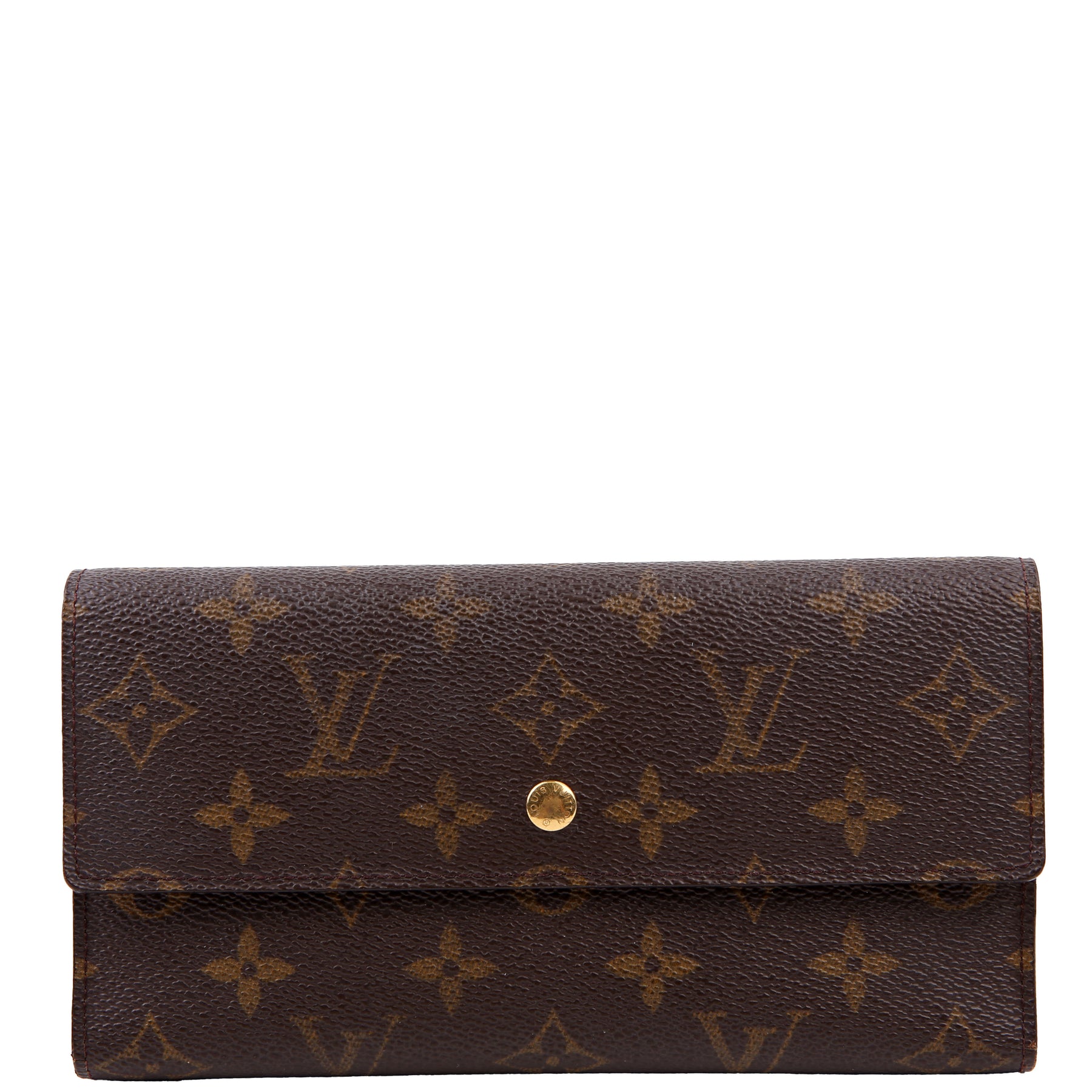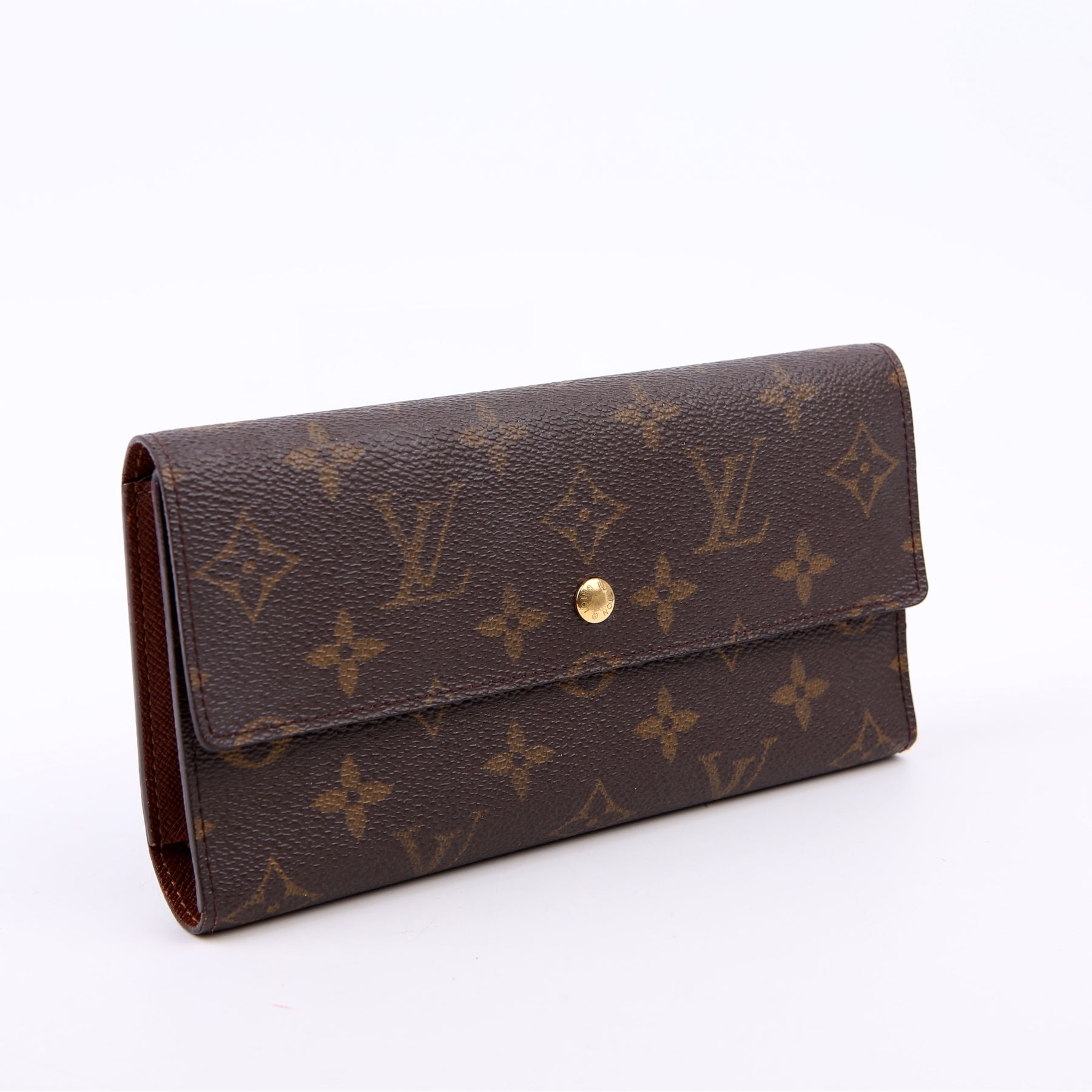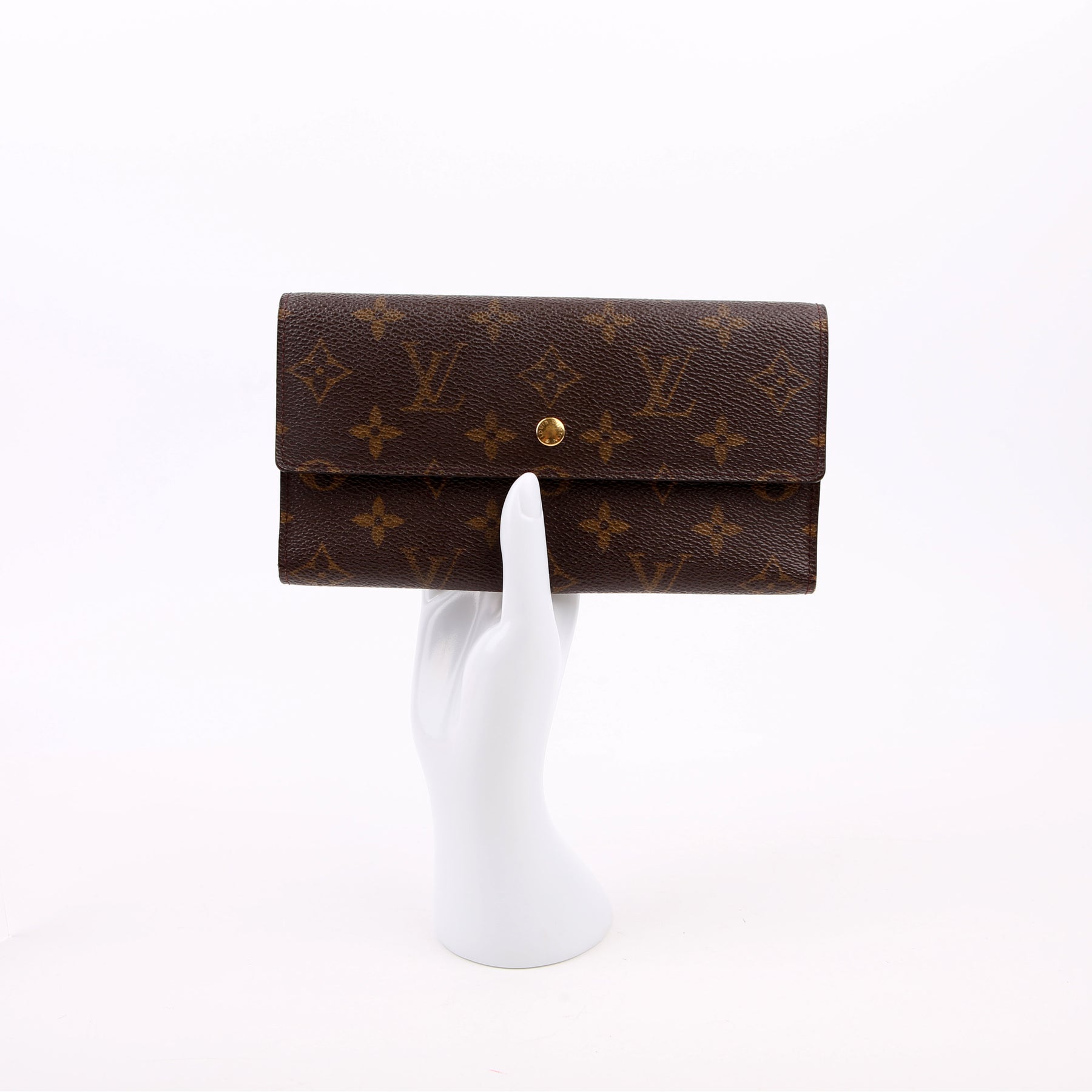 This pre-owned Louis Vuitton Porte Tresor International Wallet is guaranteed 100% authentic. The exterior is in the classic Louis Vuitton Monogram coated canvas.