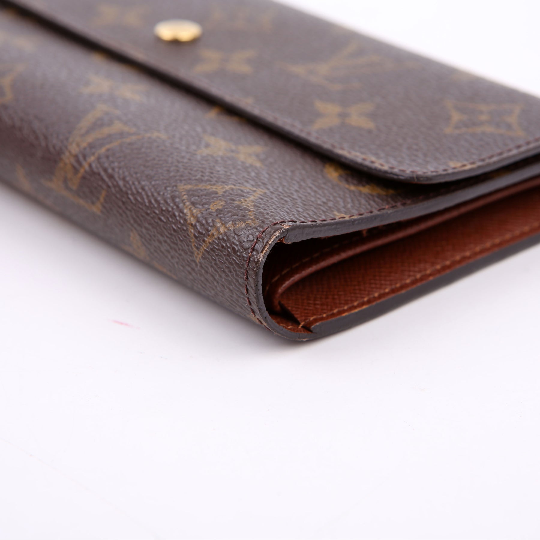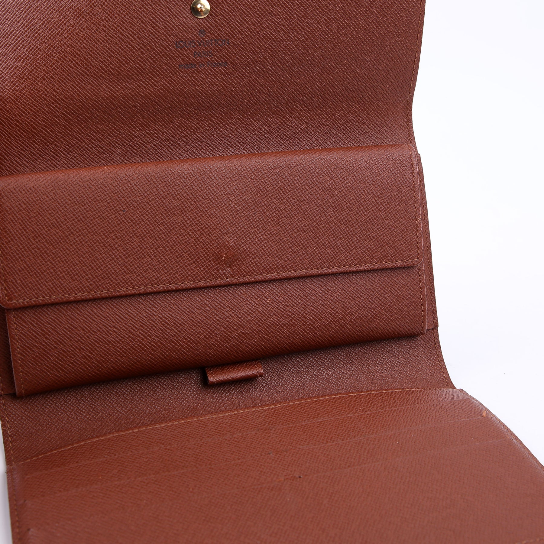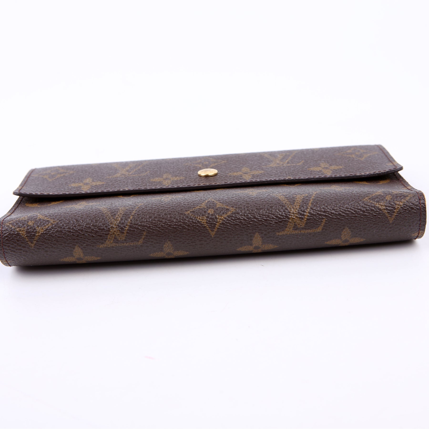 This pre-owned Louis Vuitton Porte Tresor International Wallet is guaranteed 100% authentic. The exterior is in the classic Louis Vuitton Monogram coated canvas.