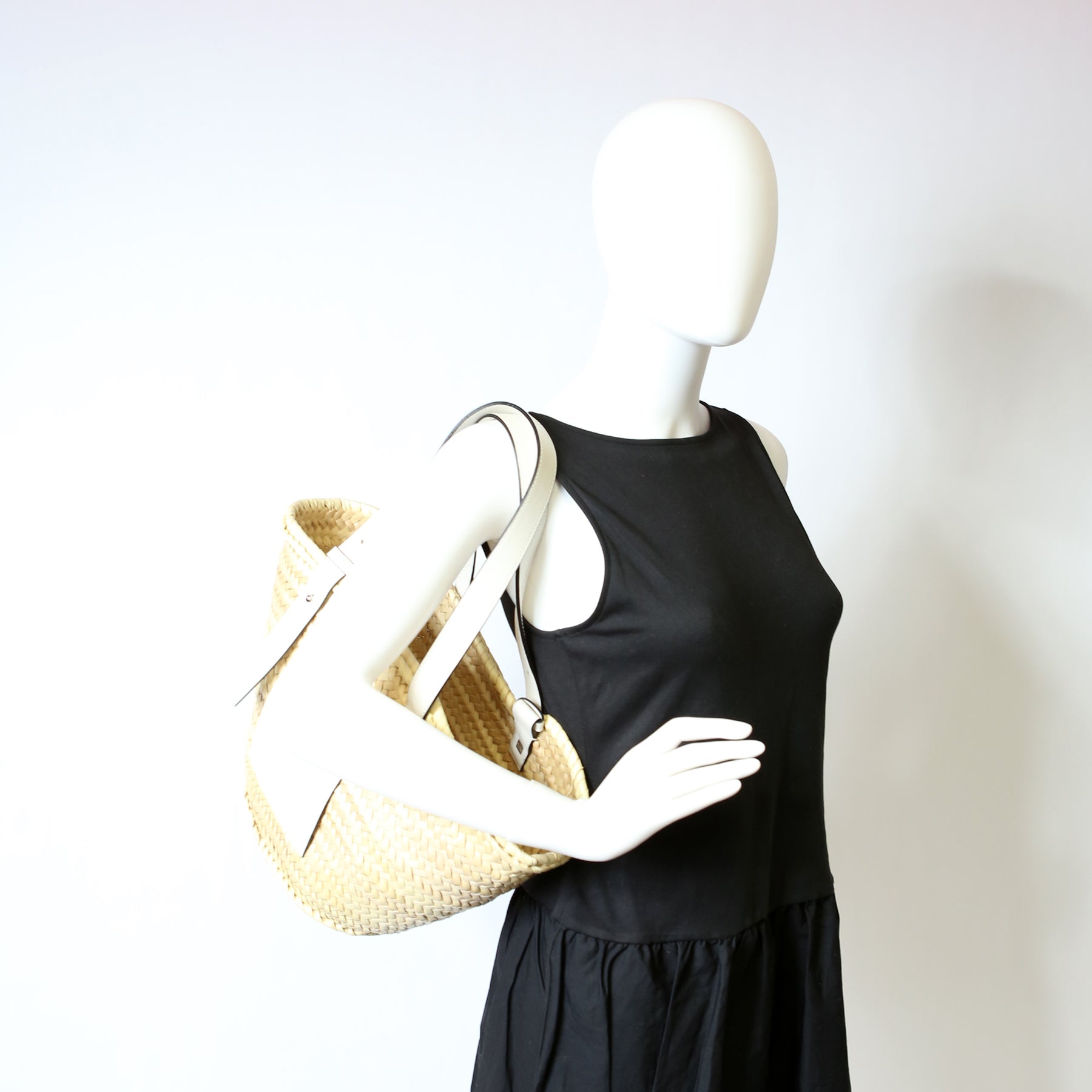 Raffia Basket Tote Small White
