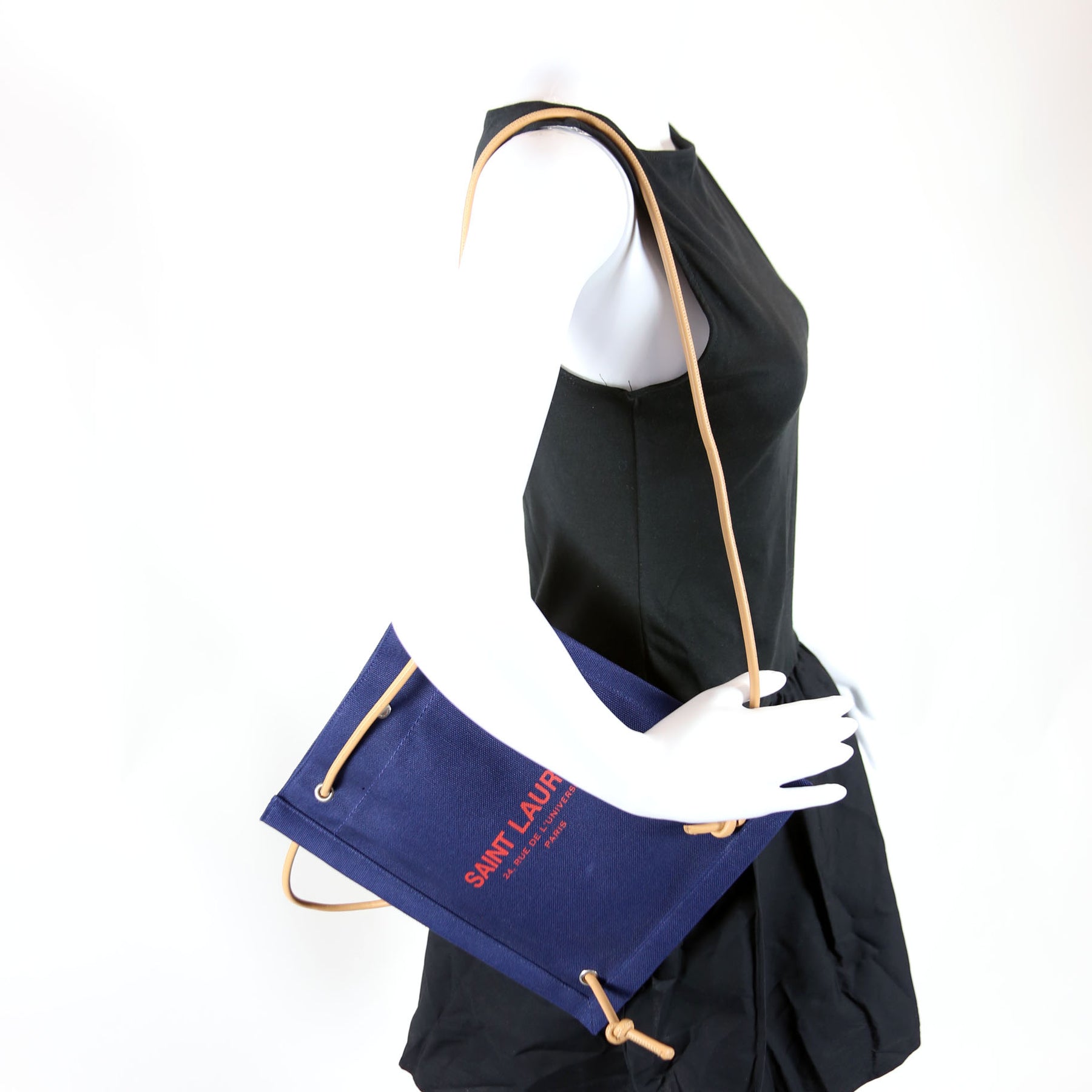 Rive Gauche Backpack Linen Calfskin Blue/Red