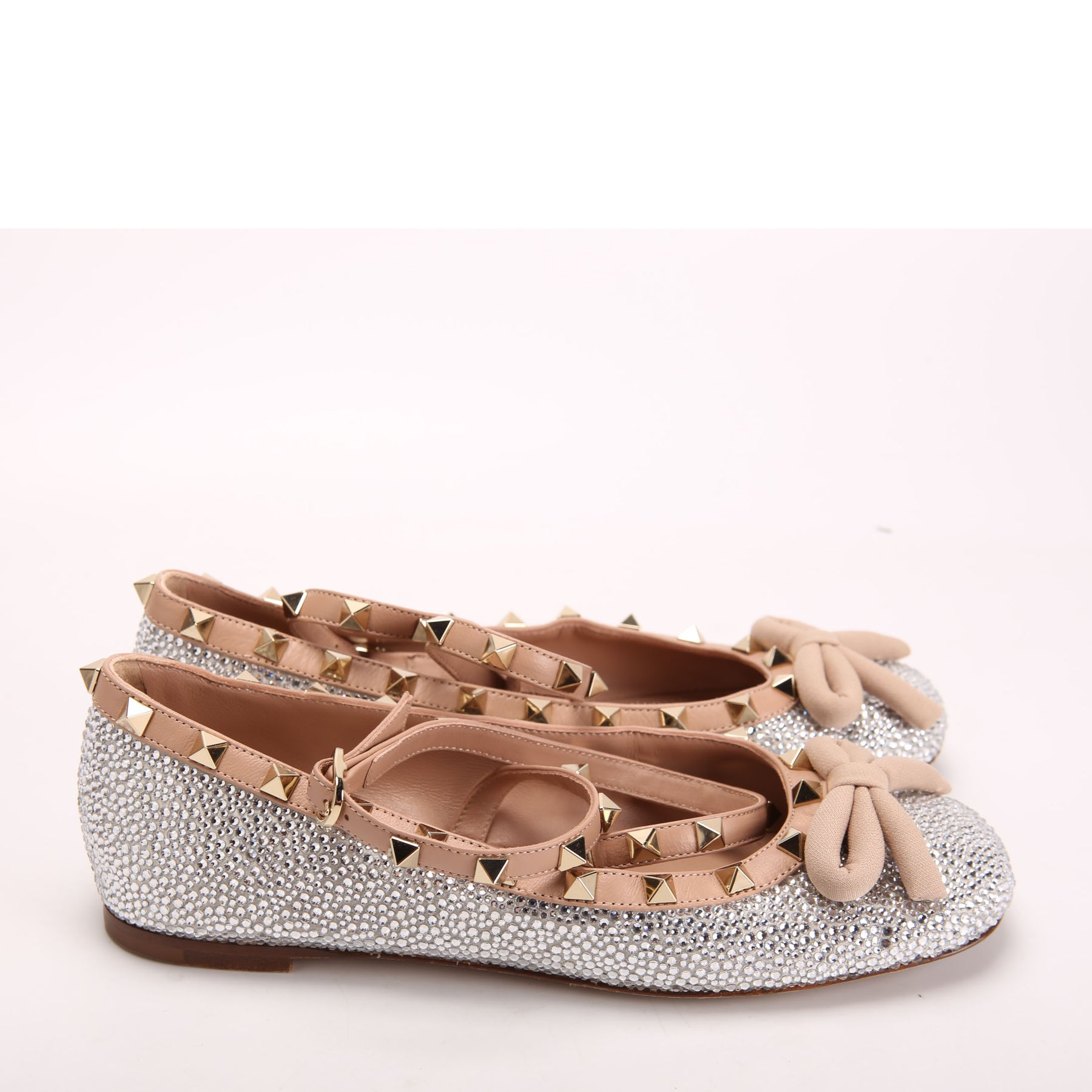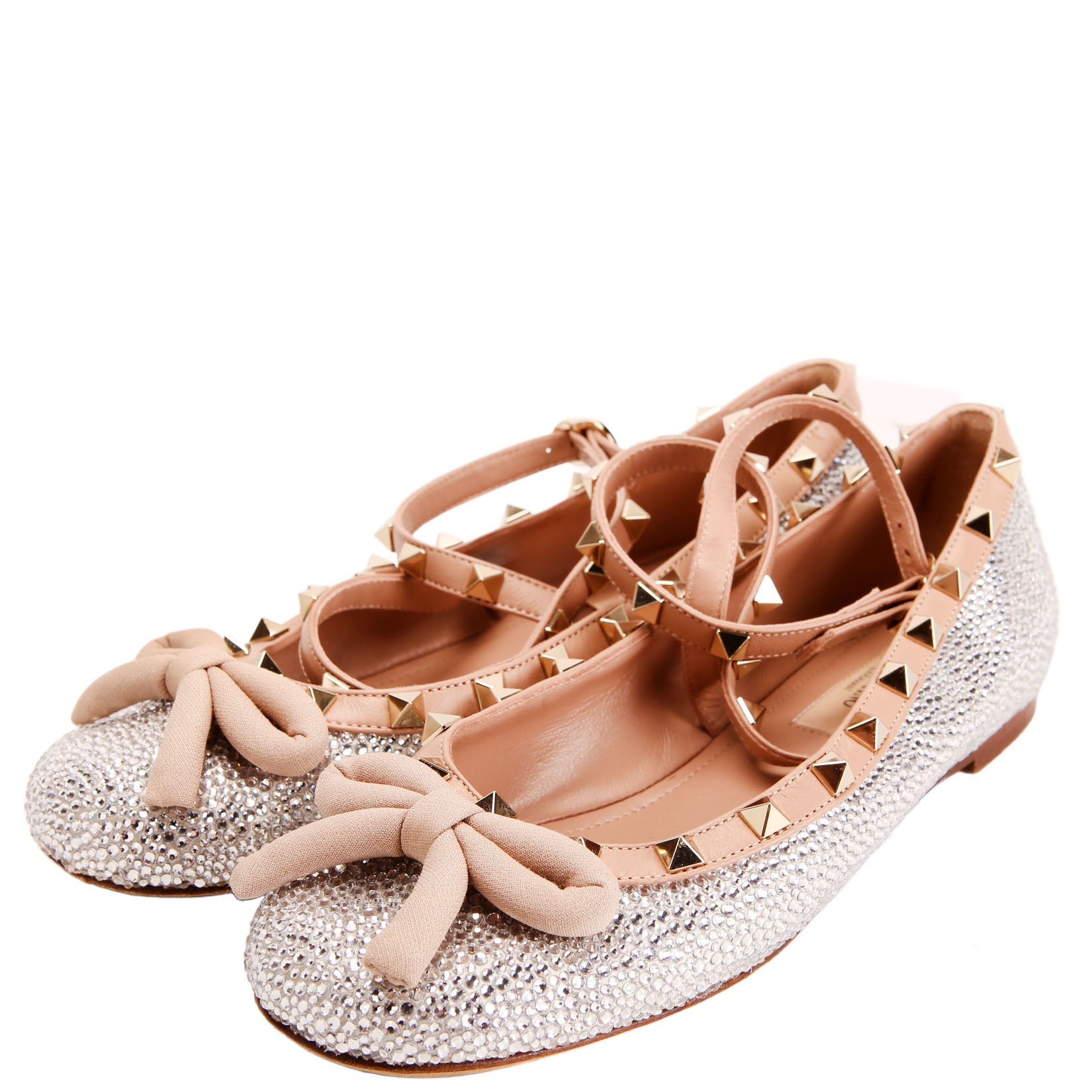These pre-owned Valentino Rockstud Ballet Flats Crystal Embossed are guaranteed 100% authentic.
