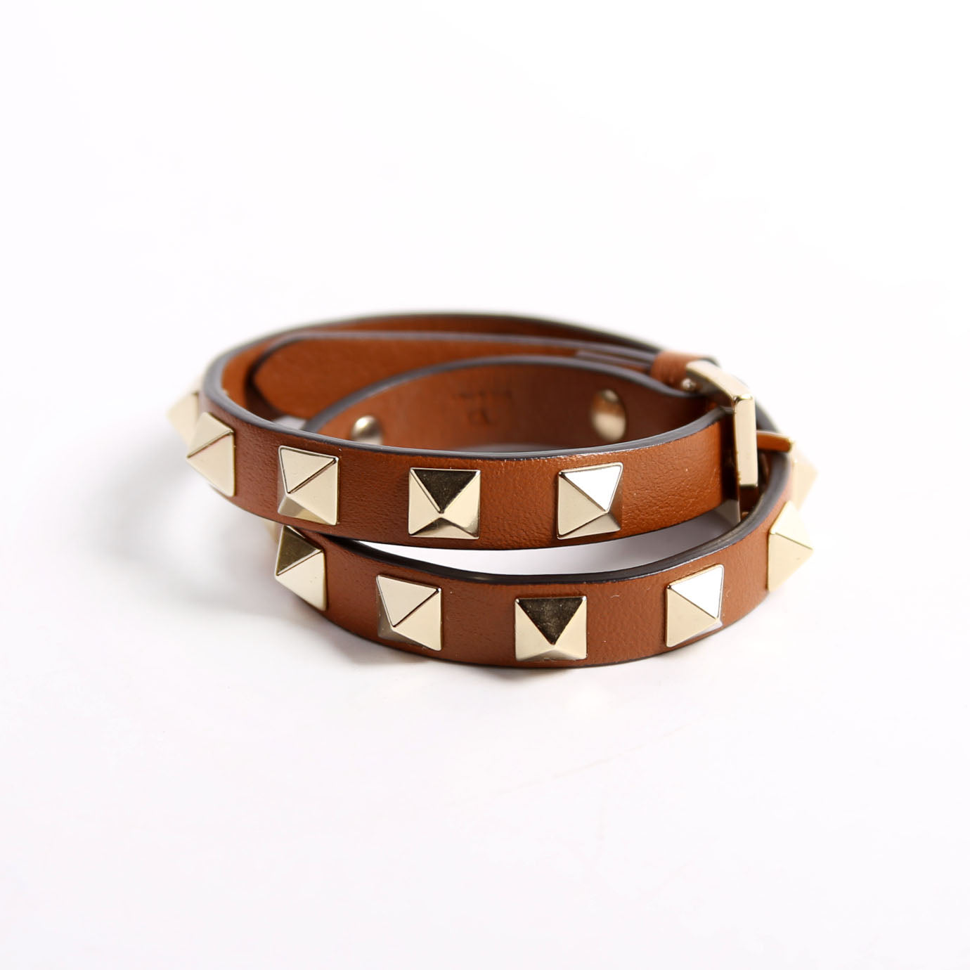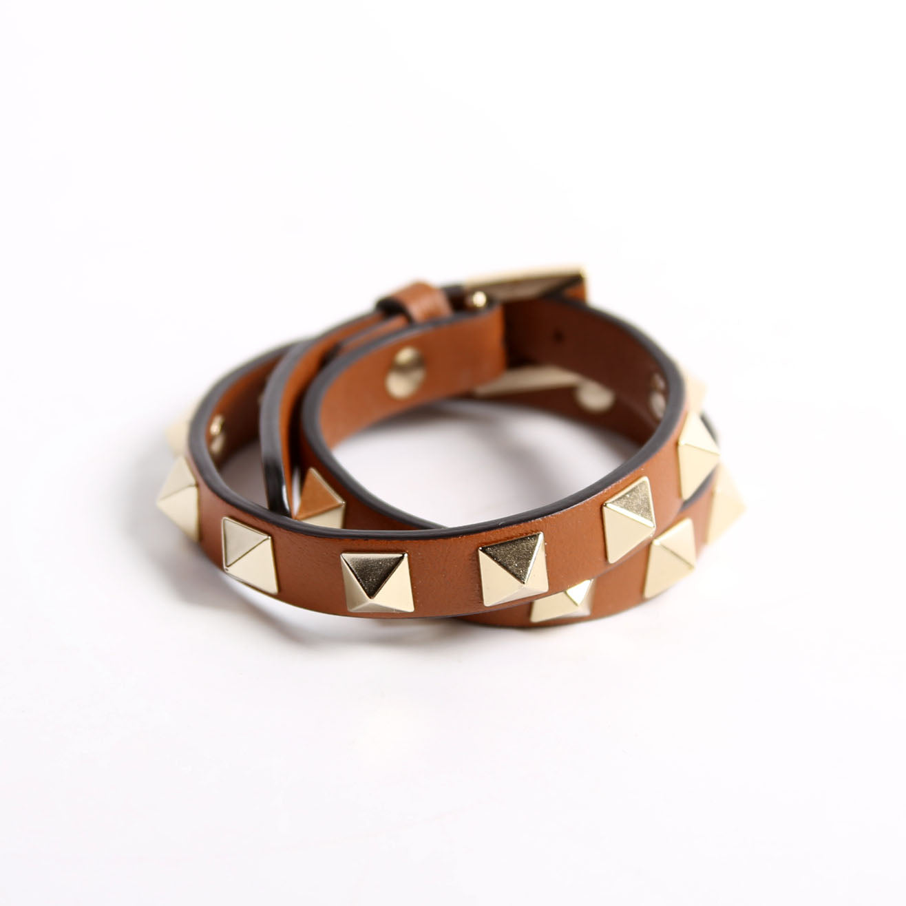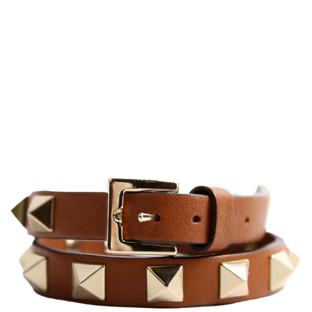 Rockstud Double Wrap Leather Bracelet Brown/Gold