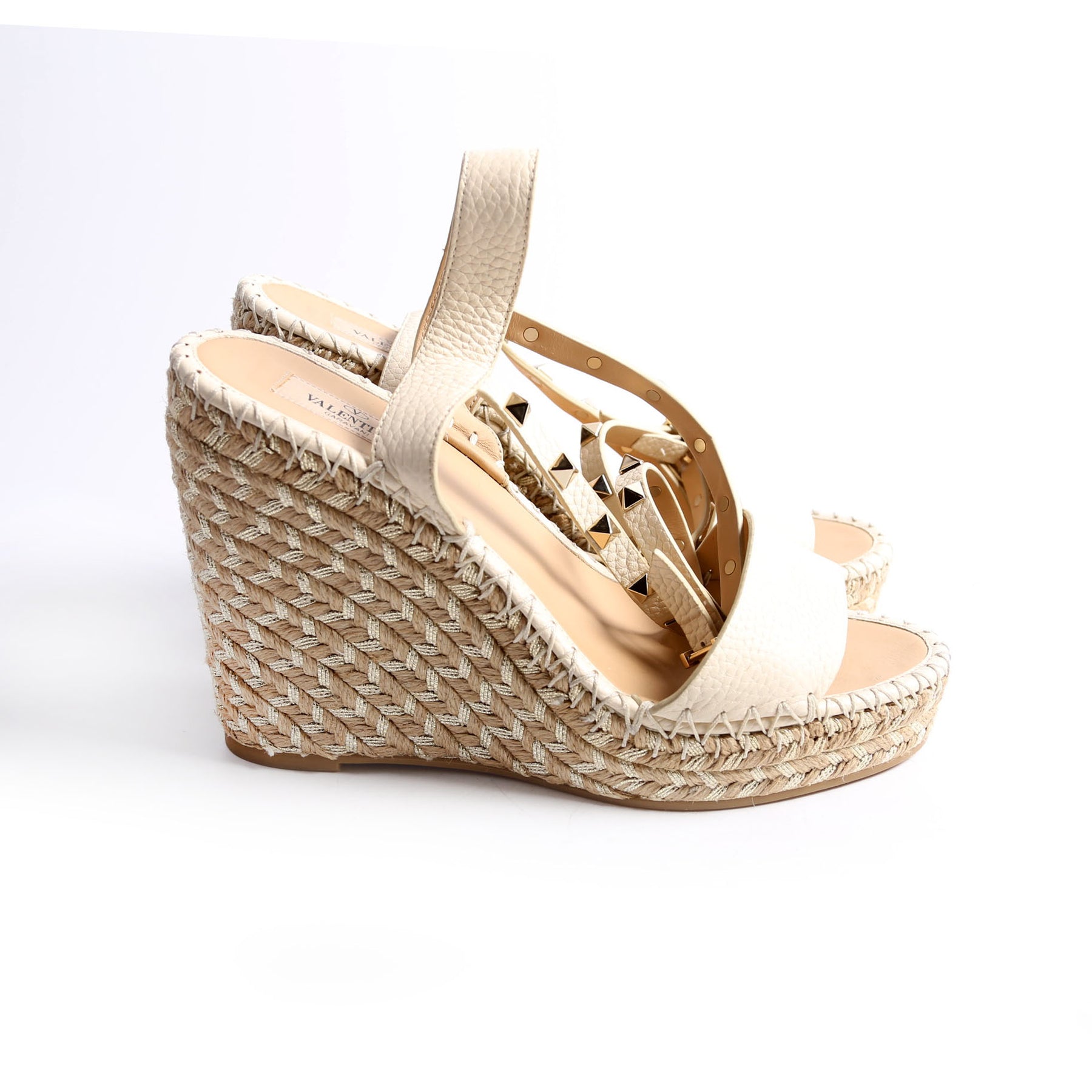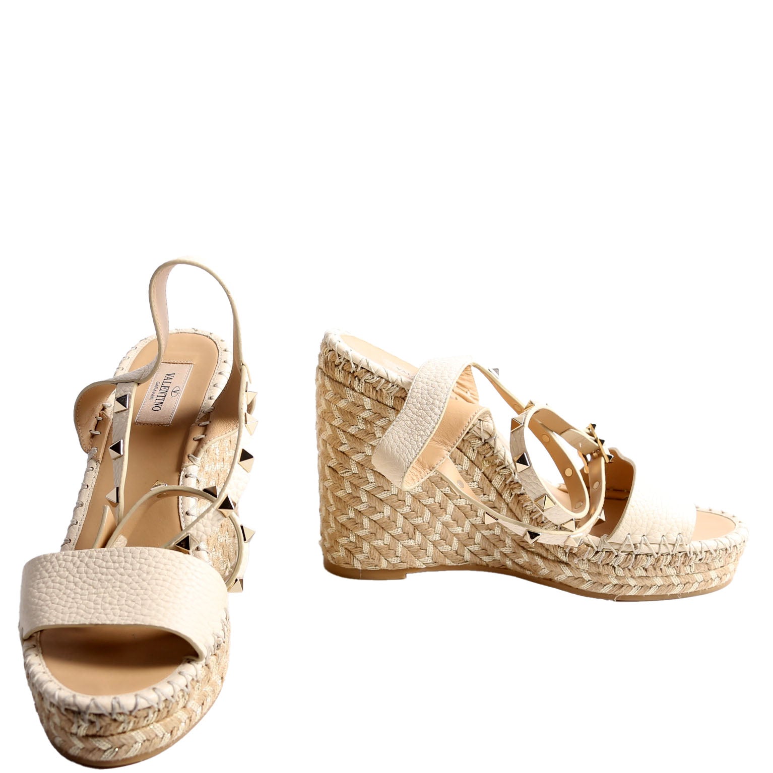 These pre-owned Valentino Rockstud Espadrille Wedges are guaranteed 100% authentic.