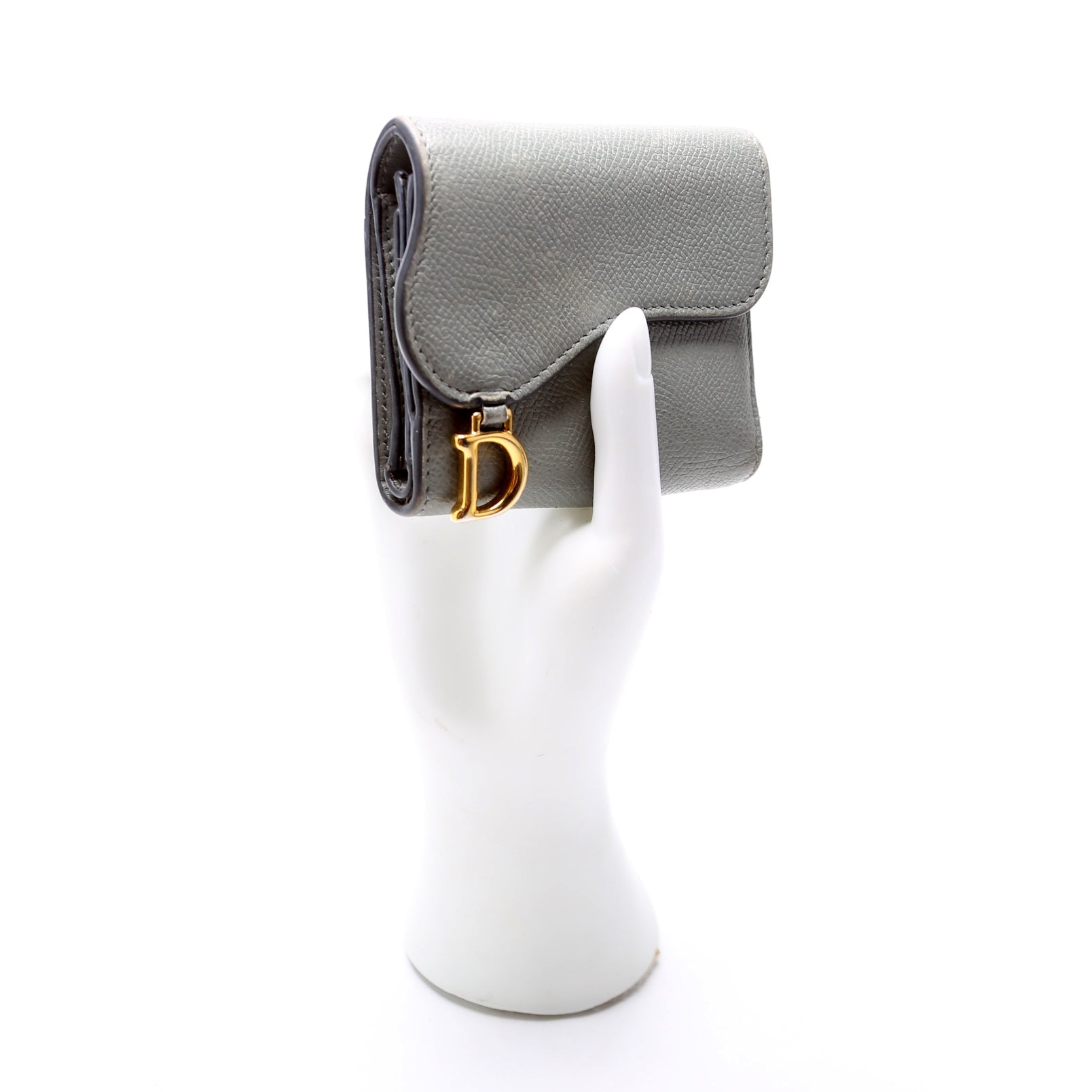 Saddle Lotus Wallet Calfskin Grey