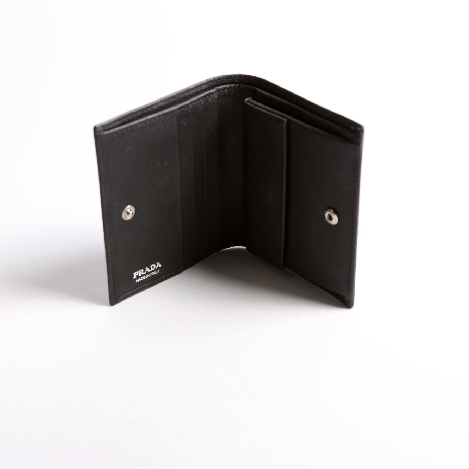 These pre-owned Prada Compact Bifold Wallet are guaranteed 100% authentic. The exterior is in the classic Prada Saffiano leather.