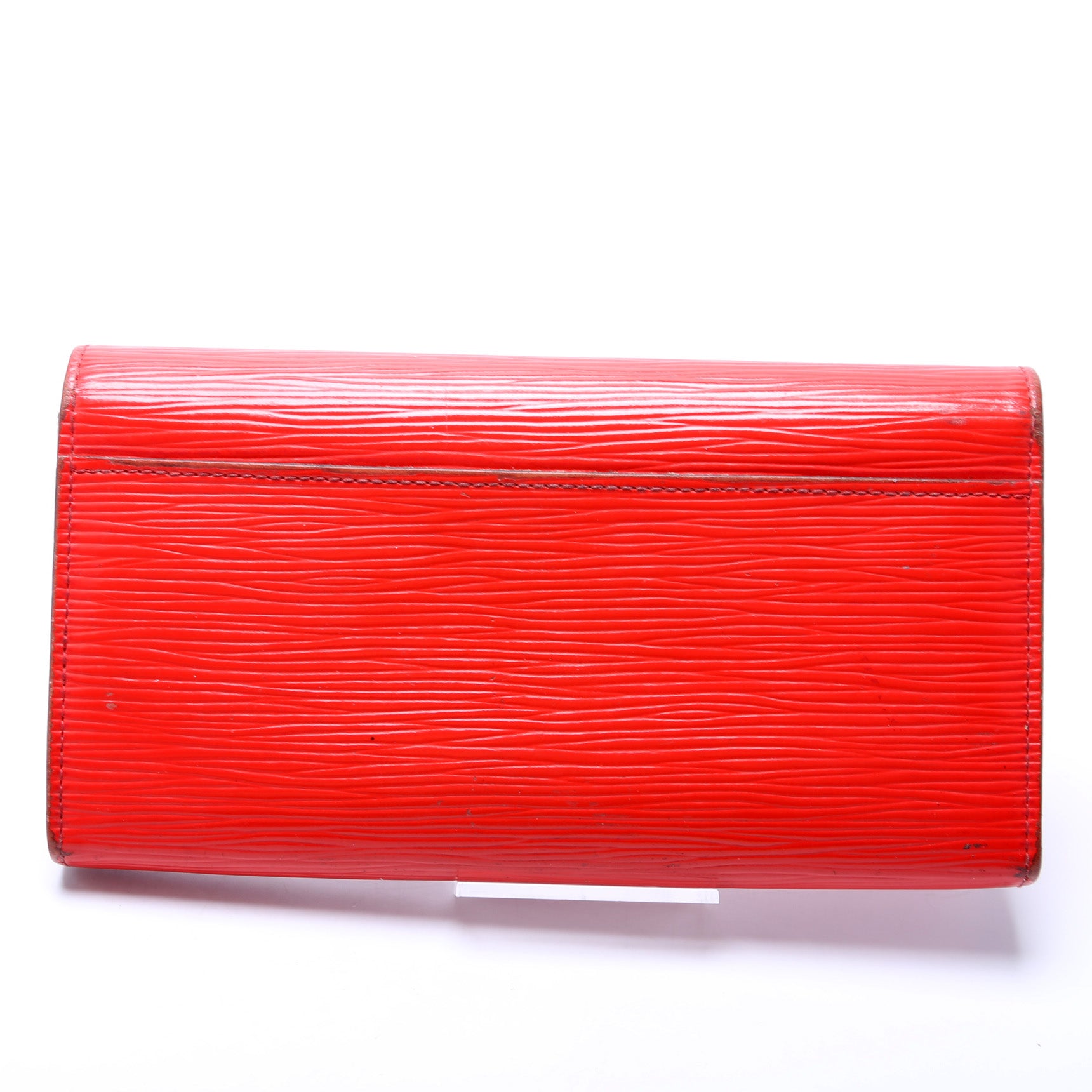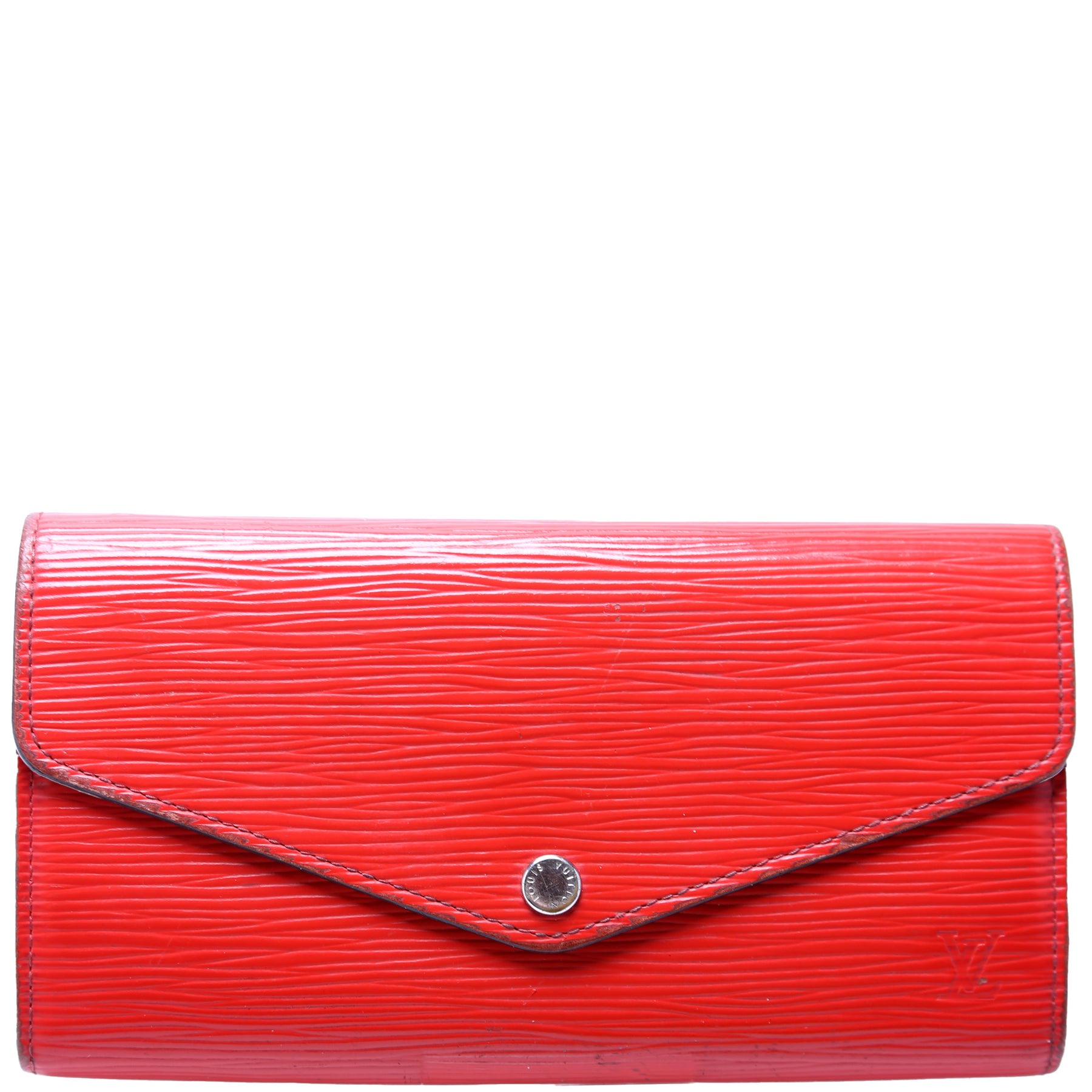 This pre-owned Louis Vuitton Sarah Wallet Newer is guaranteed 100% authentic. The exterior is in the classic Louis Vuitton Epi leather.