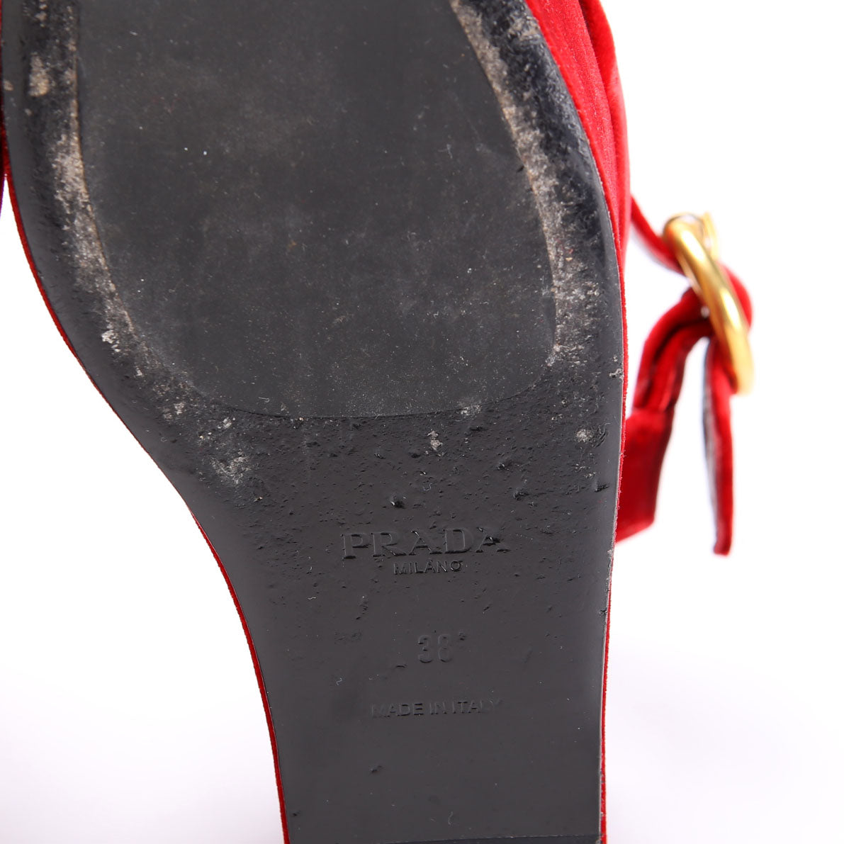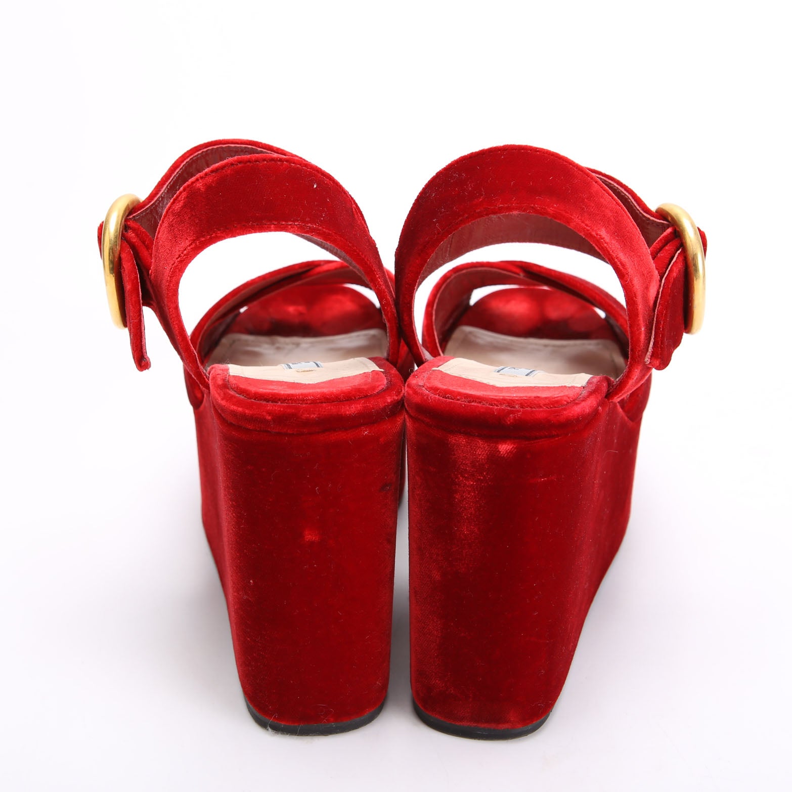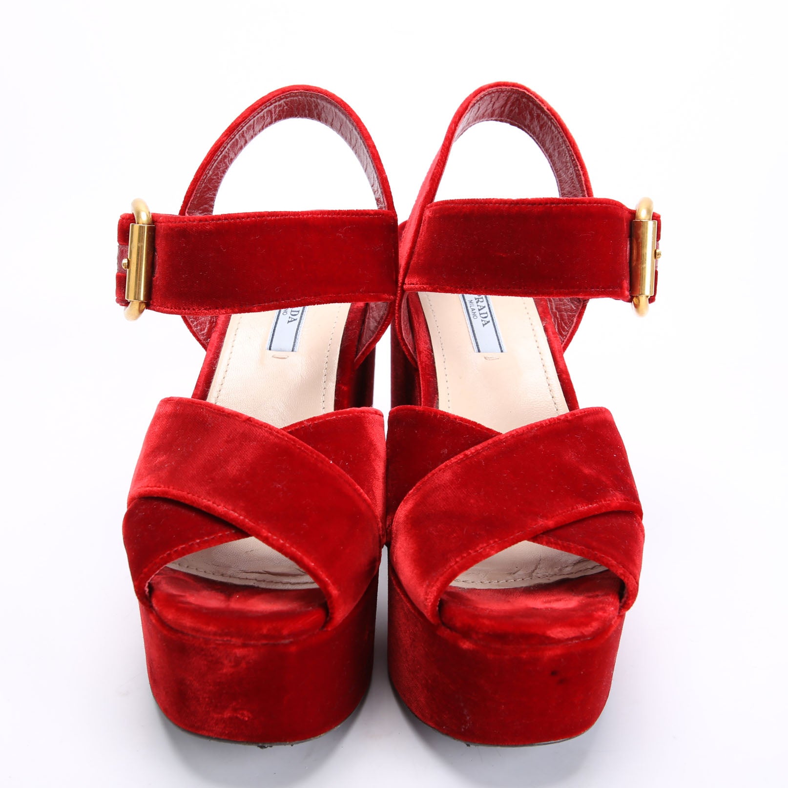 These pre-owned Prada Slingback Platform Velvet Sandals are guaranteed 100% authentic.