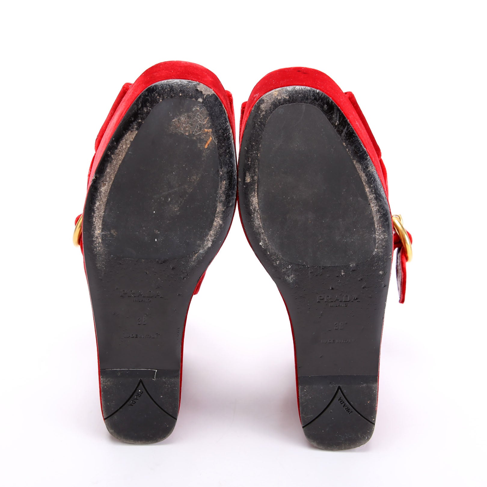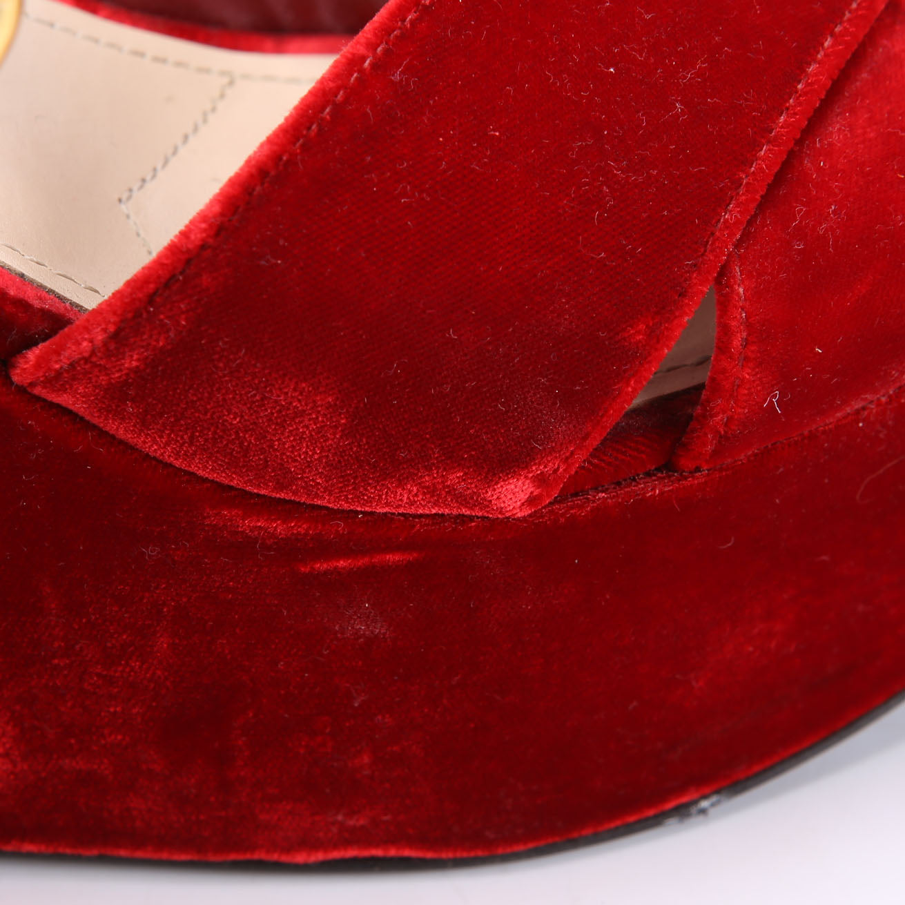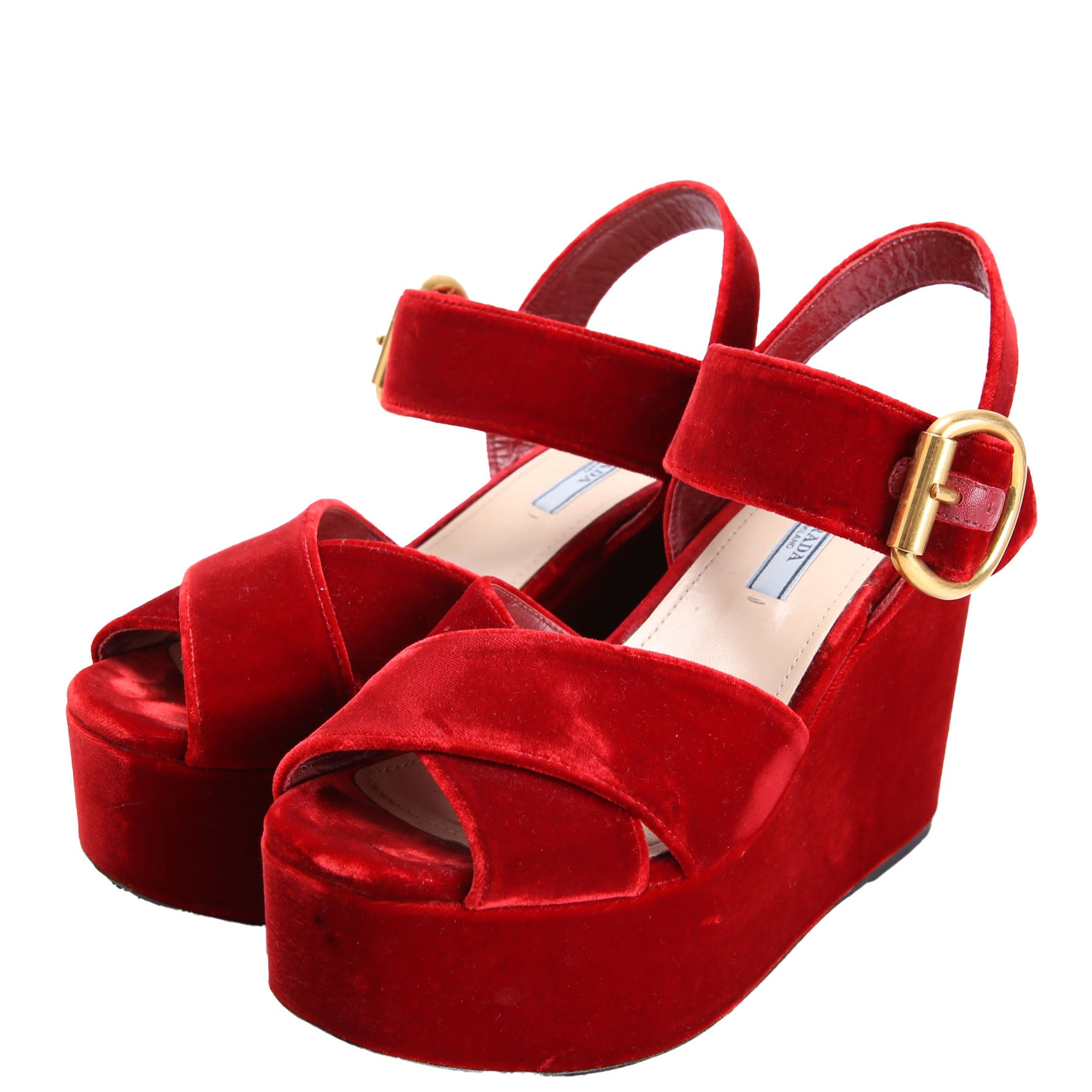 These pre-owned Prada Slingback Platform Velvet Sandals are guaranteed 100% authentic.