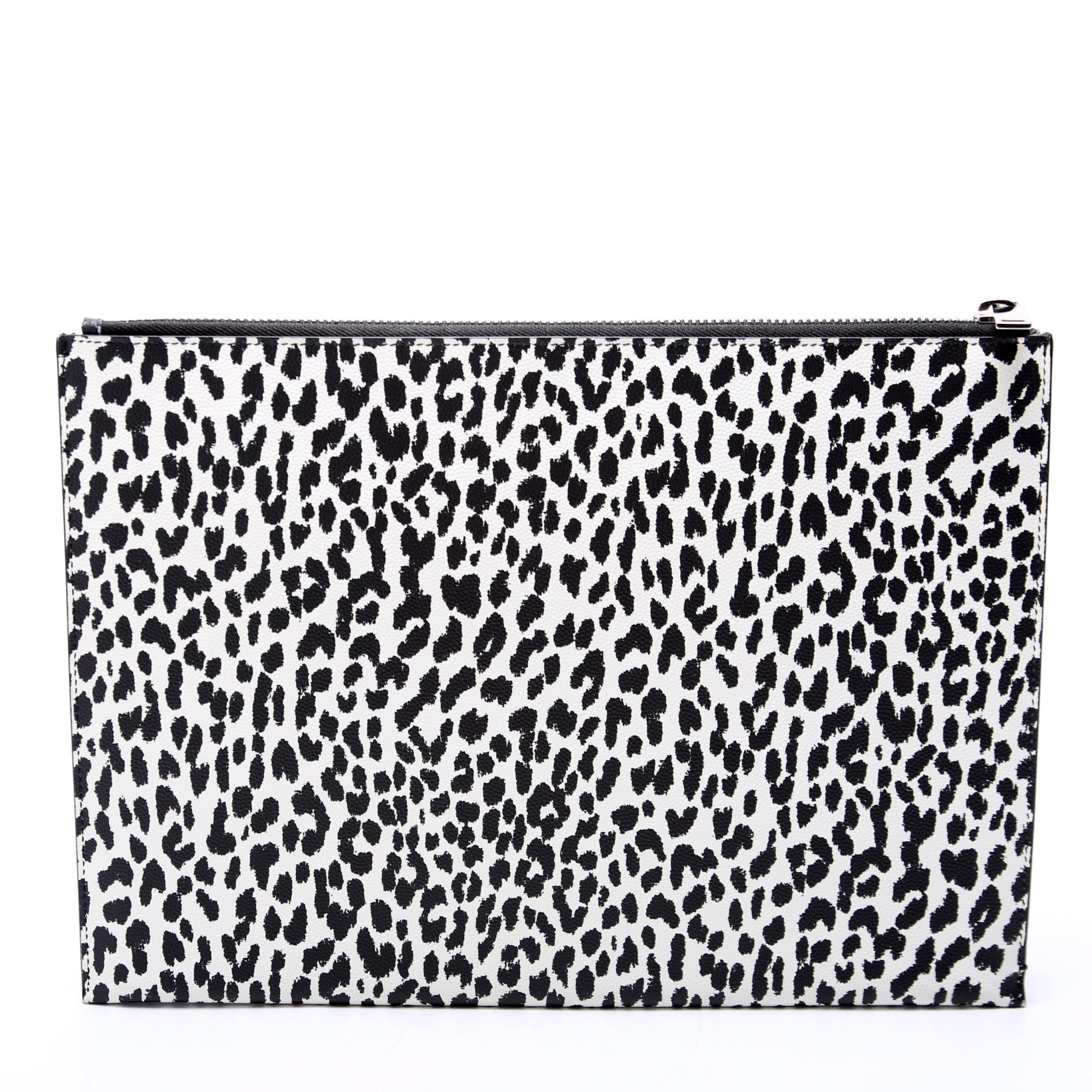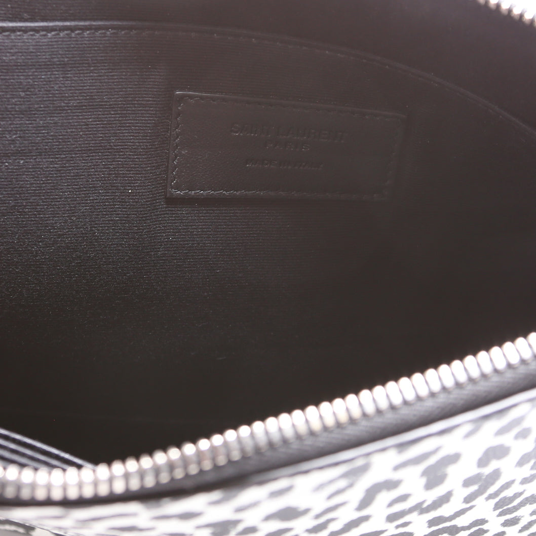 This pre-owned Saint Laurent Clutch is guaranteed 100% authentic. The exterior is stamped leopard print leather.