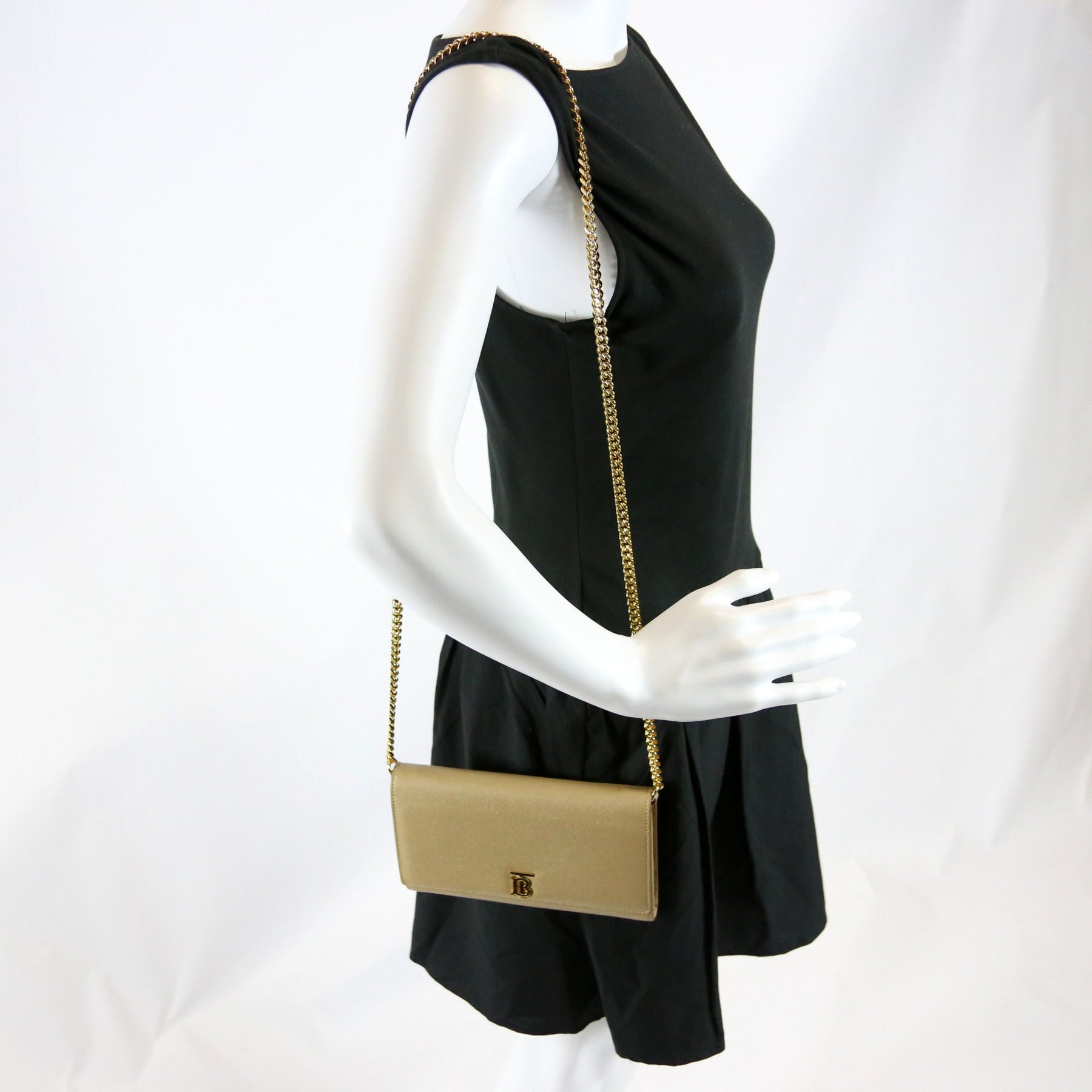 This pre-owned Burberry TB Continental Wallet On Chain is guaranteed 100% authentic.