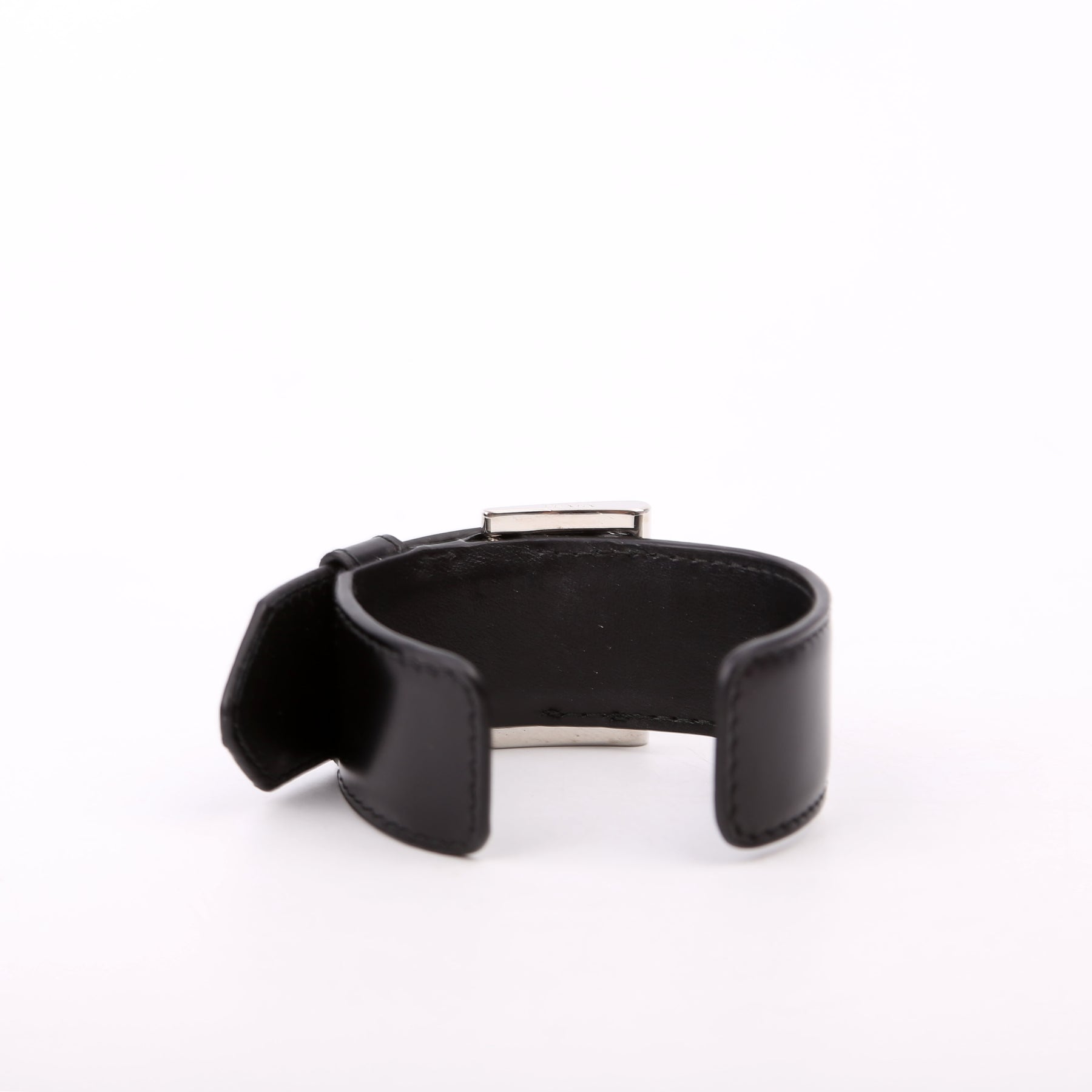 This pre-owned Prada Triangle Logo Leather Arm Cuff Bracelet is guaranteed 100% authentic.