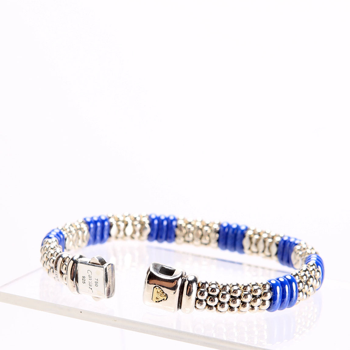 This pre-owned Lagos Ultramarine Ceramic Beaded Caviar/925 Bracelet is guaranteed 100% authentic.