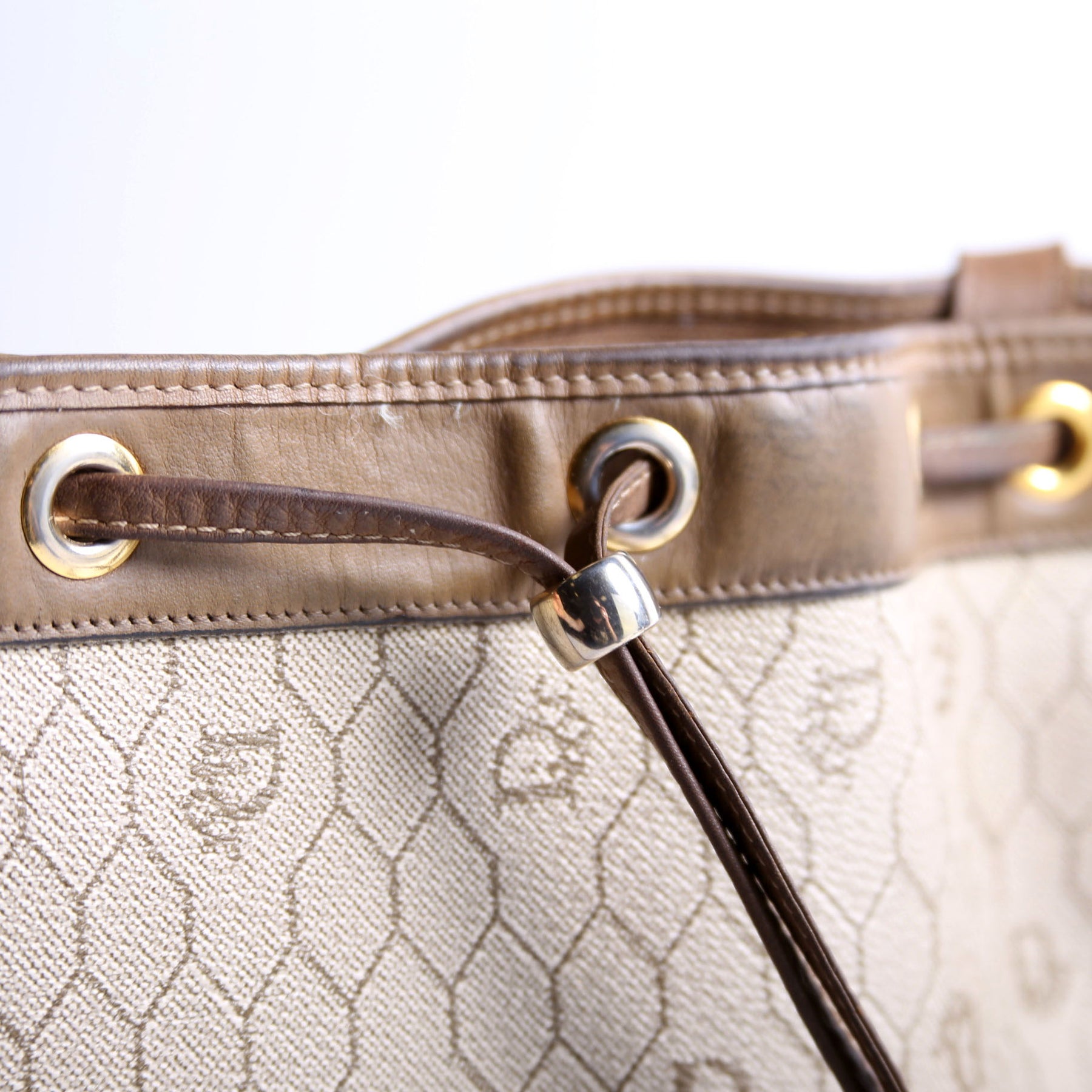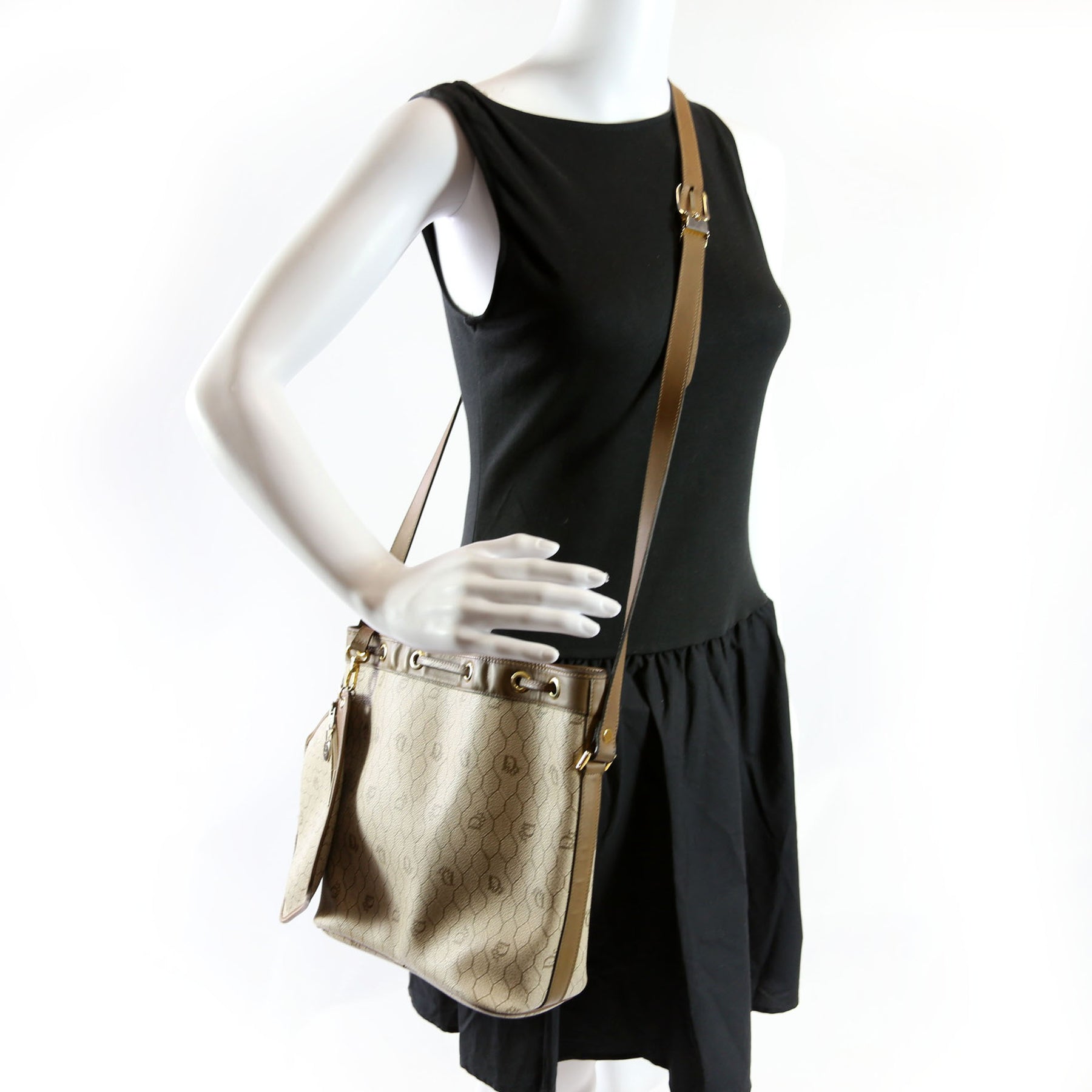 This pre-owned Dior Vintage Bucket Flap Honeycomb is guaranteed 100% authentic. The exterior is in the classic Dior canvas.