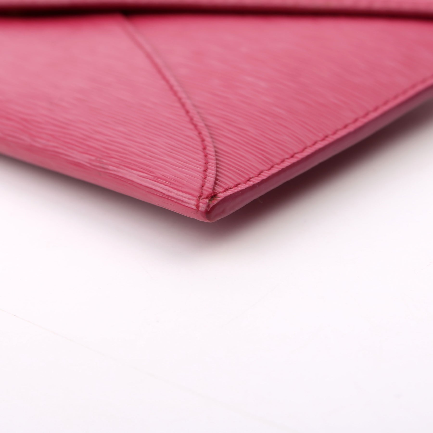 Exterior: The exterior leather is free of any rips or cracks, there are light marks throughout. The corners and pipping show light wear. The exterior features one zip closure pocket.