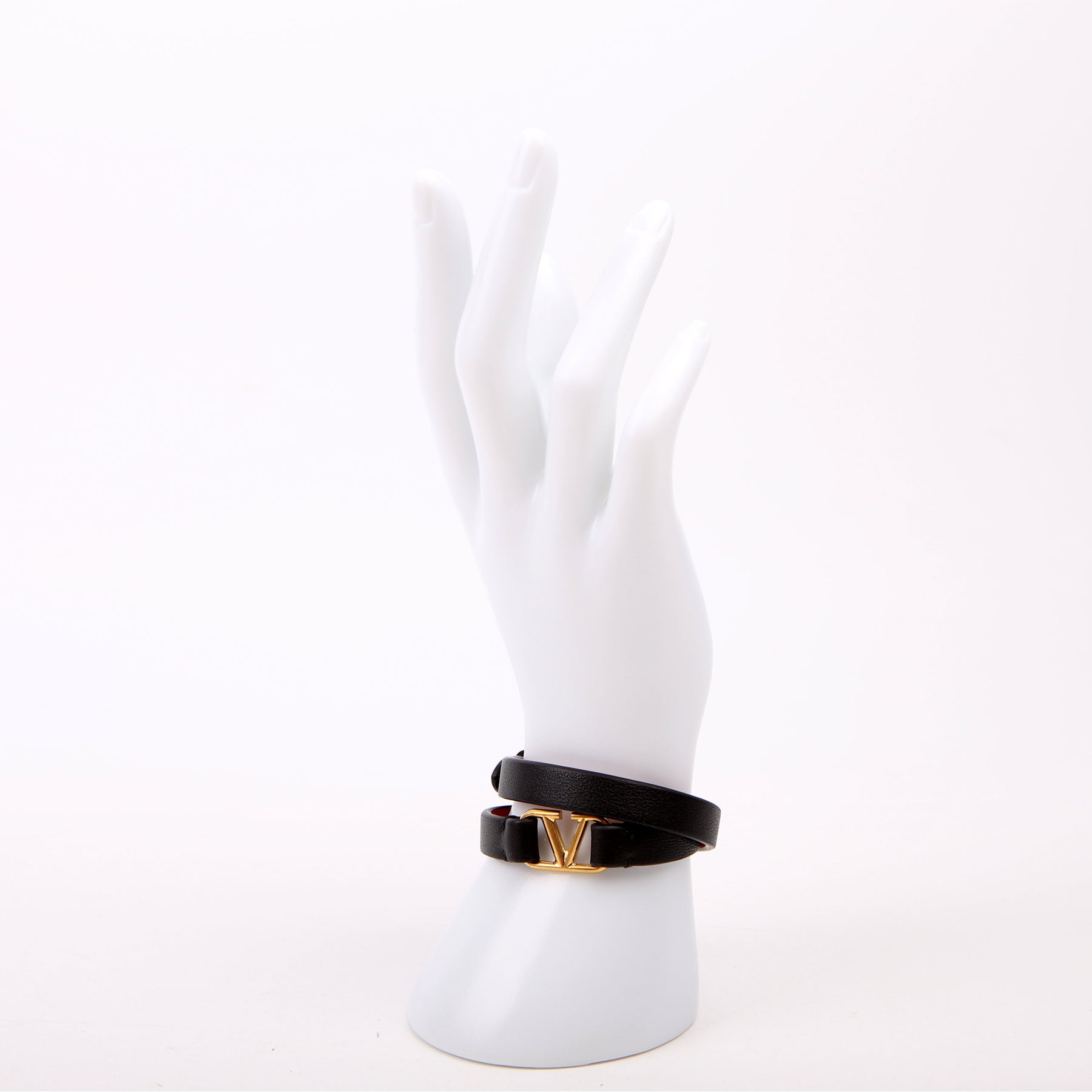 This pre-owned Valentino Vlogo Double Wrap Leather Bracelet is guaranteed 100% authentic.