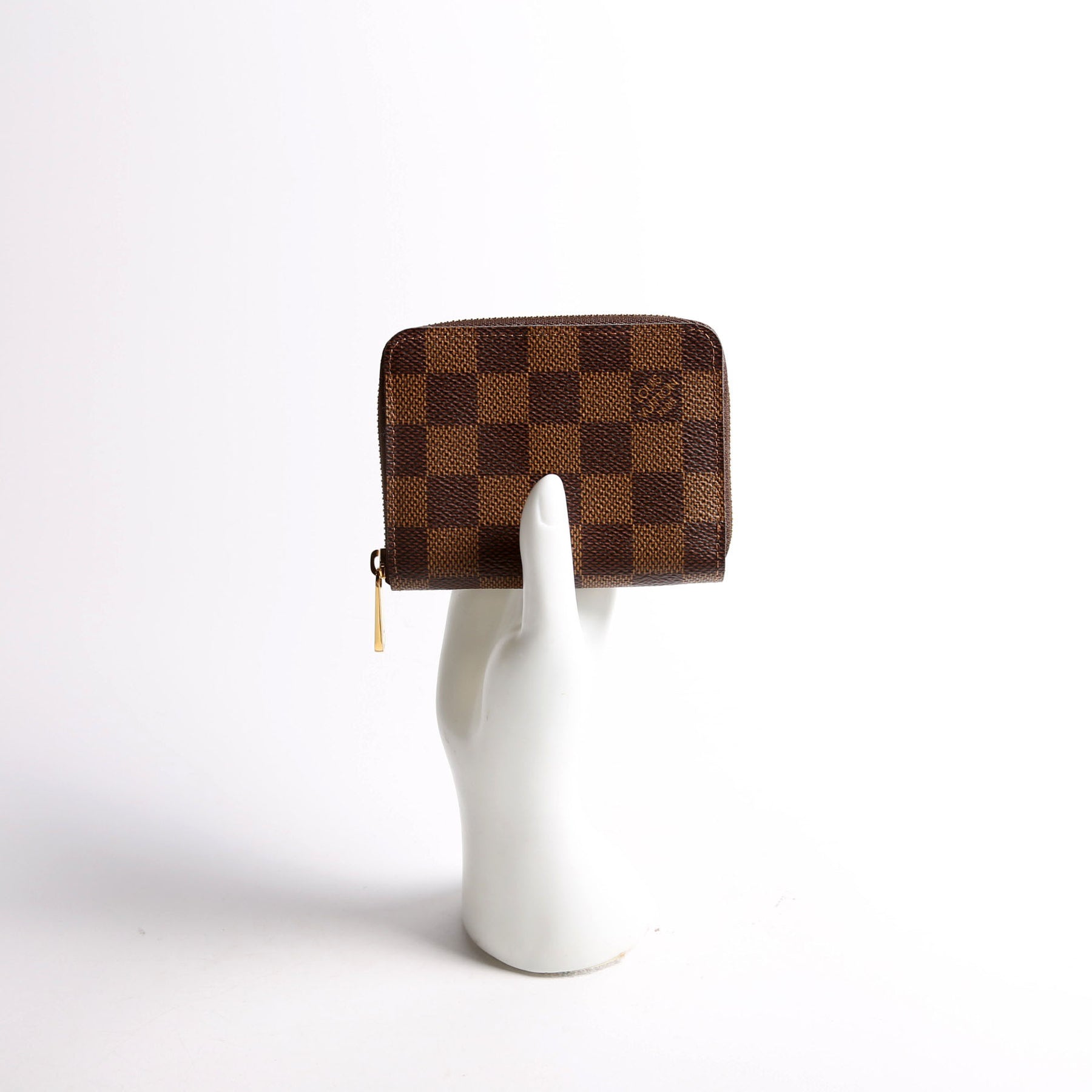 These pre-owned Louis Vuitton Zippy Coin Purse are guaranteed 100% authentic. The exterior is in the classic Louis Vuitton Damier Ebene coated canvas.