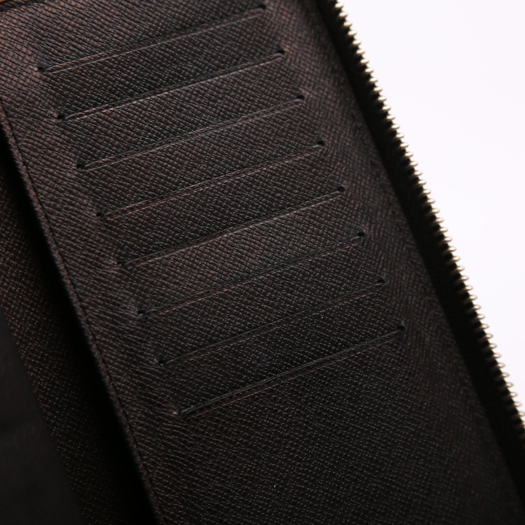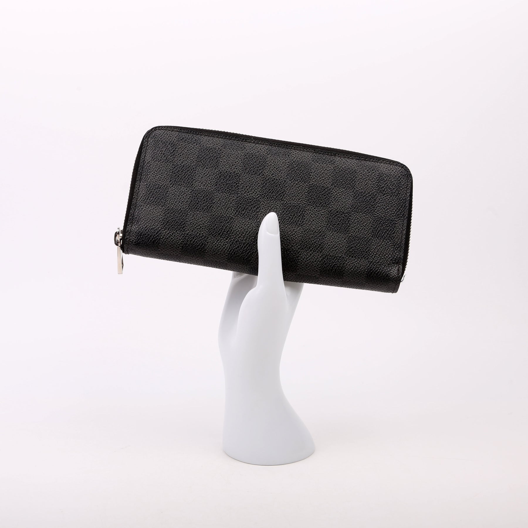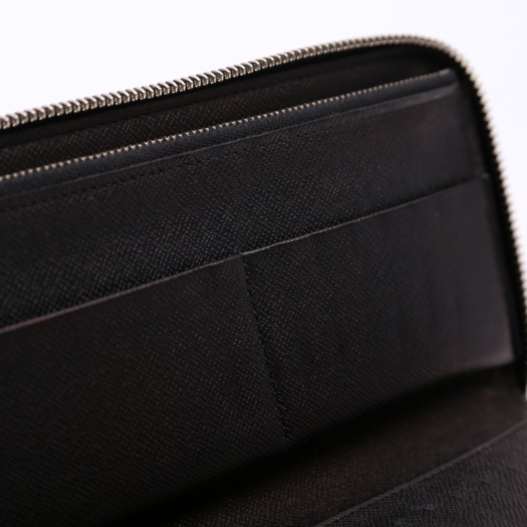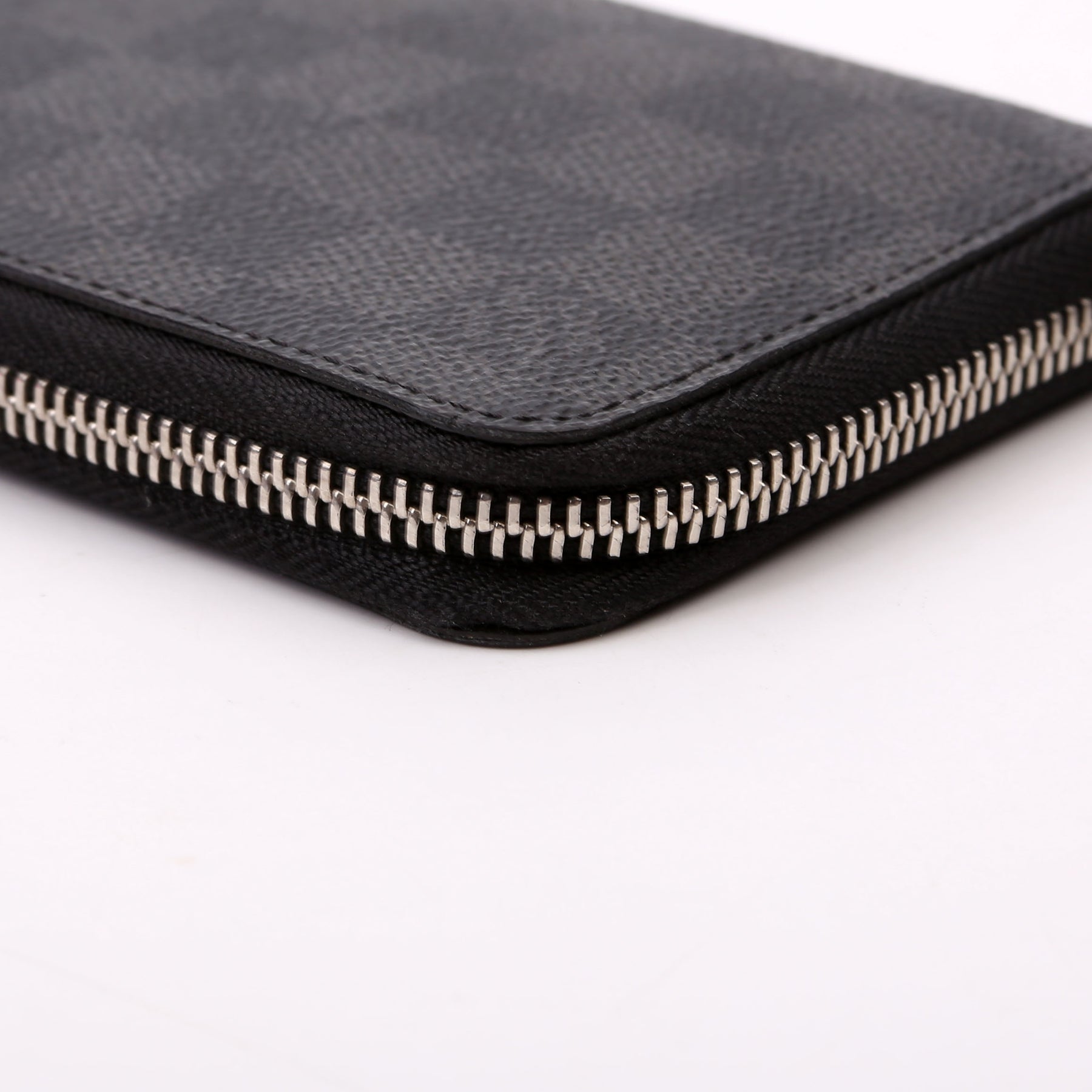 This pre-owned Louis Vuitton Zippy Organizer is guaranteed 100% authentic. The exterior is in the classic Louis Vuitton Damier Graphite coated canvas.