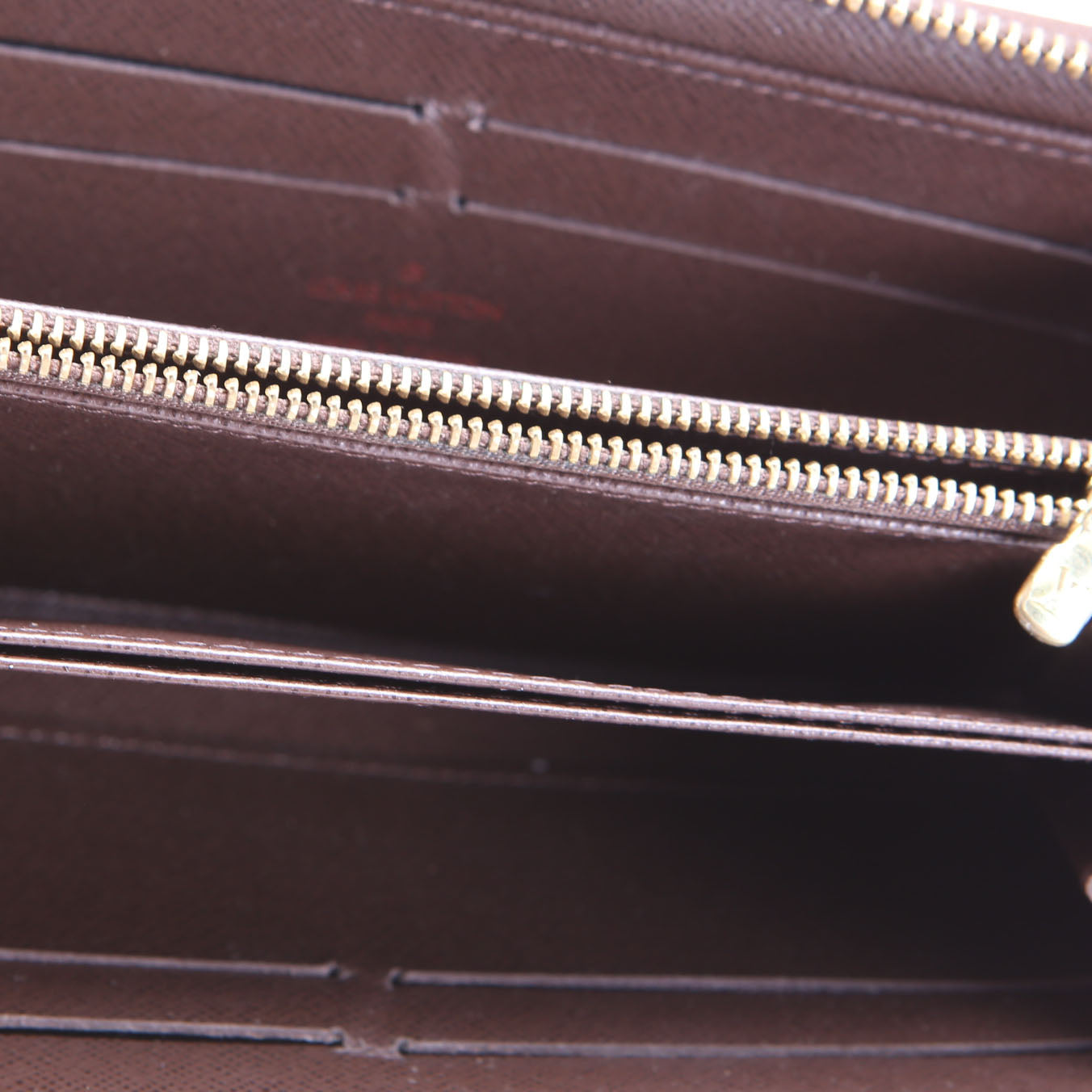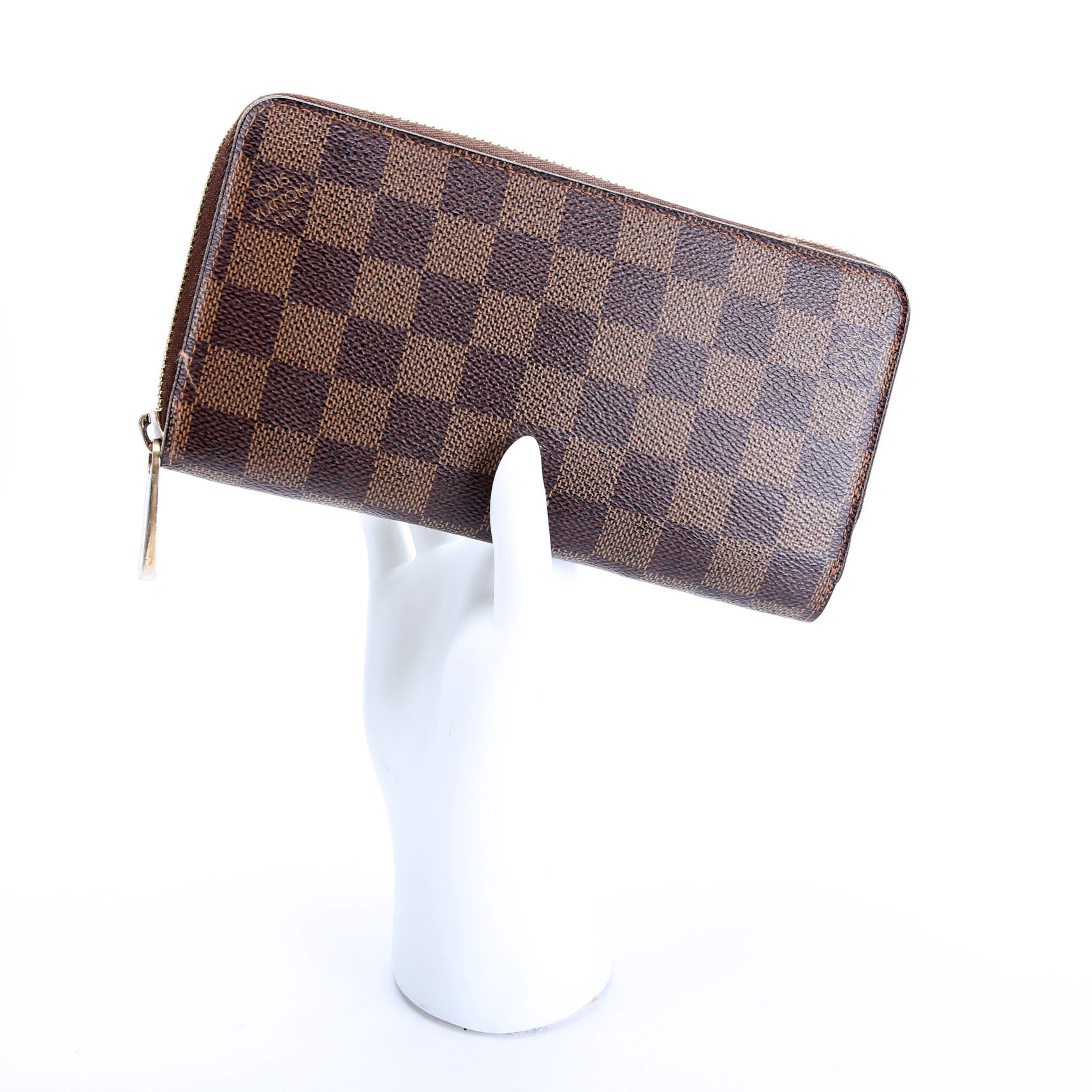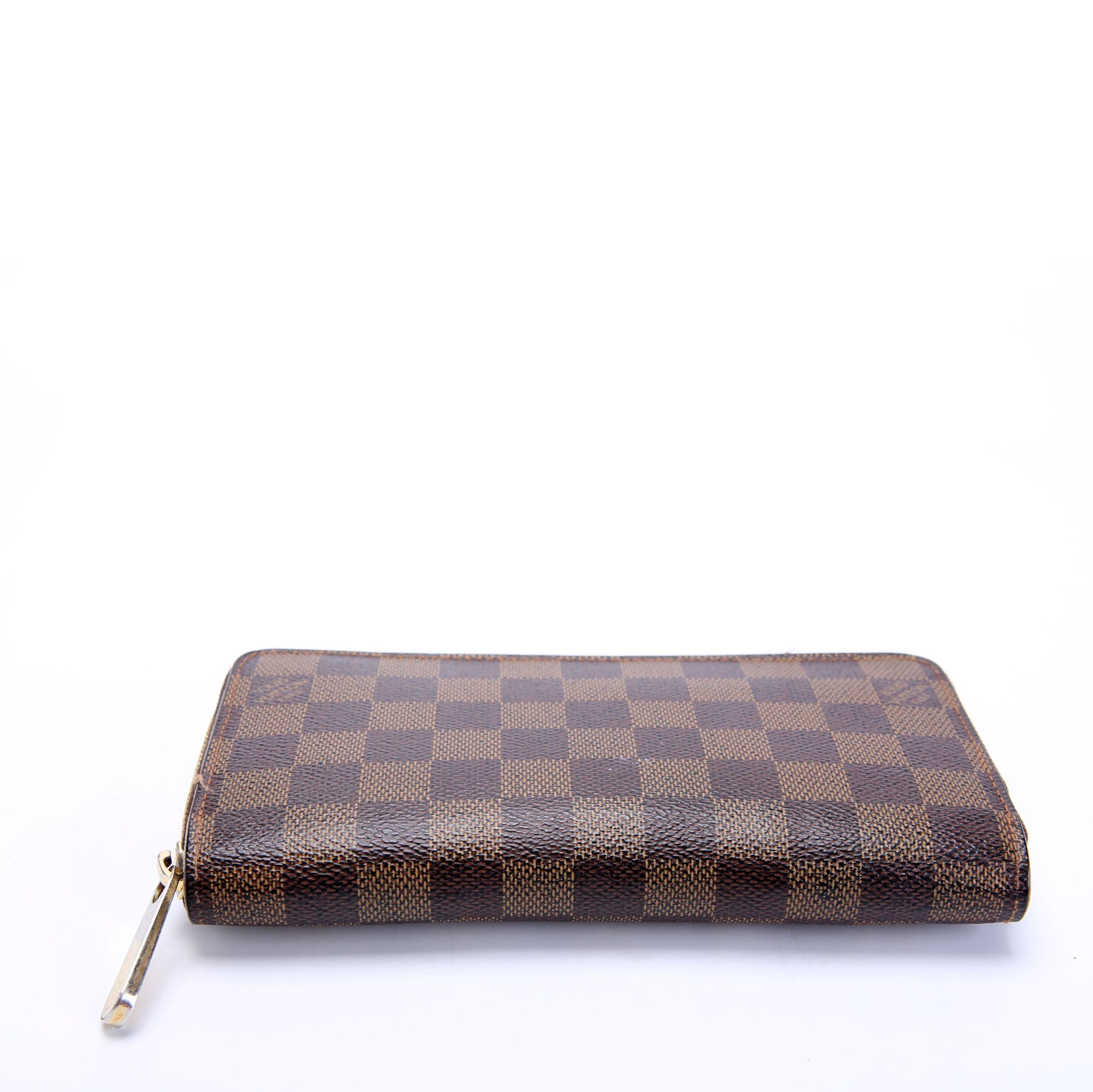 This pre-owned Louis Vuitton Zippy Wallet is guaranteed 100% authentic. The exterior is in the classic Louis Vuitton Damier Ebene coated canvas.