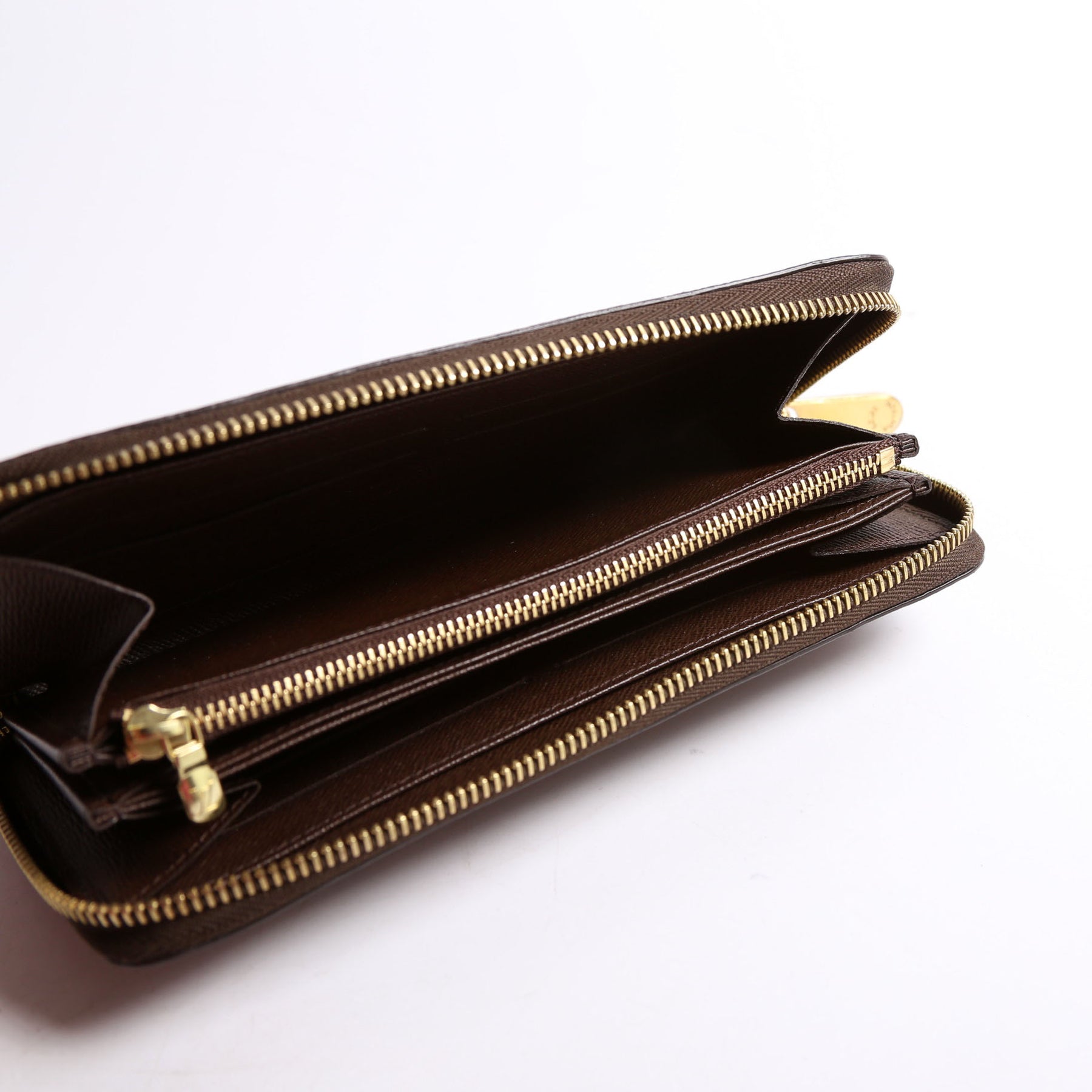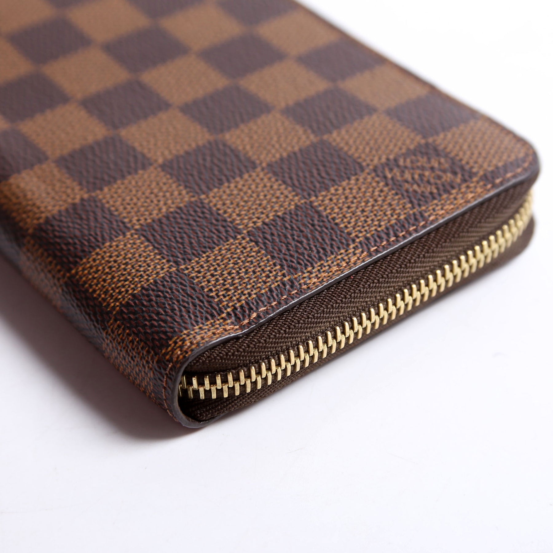 This pre-owned Louis Vuitton Zippy Wallet is guaranteed 100% authentic. The exterior is in the classic Louis Vuitton Damier Ebene coated canvas.