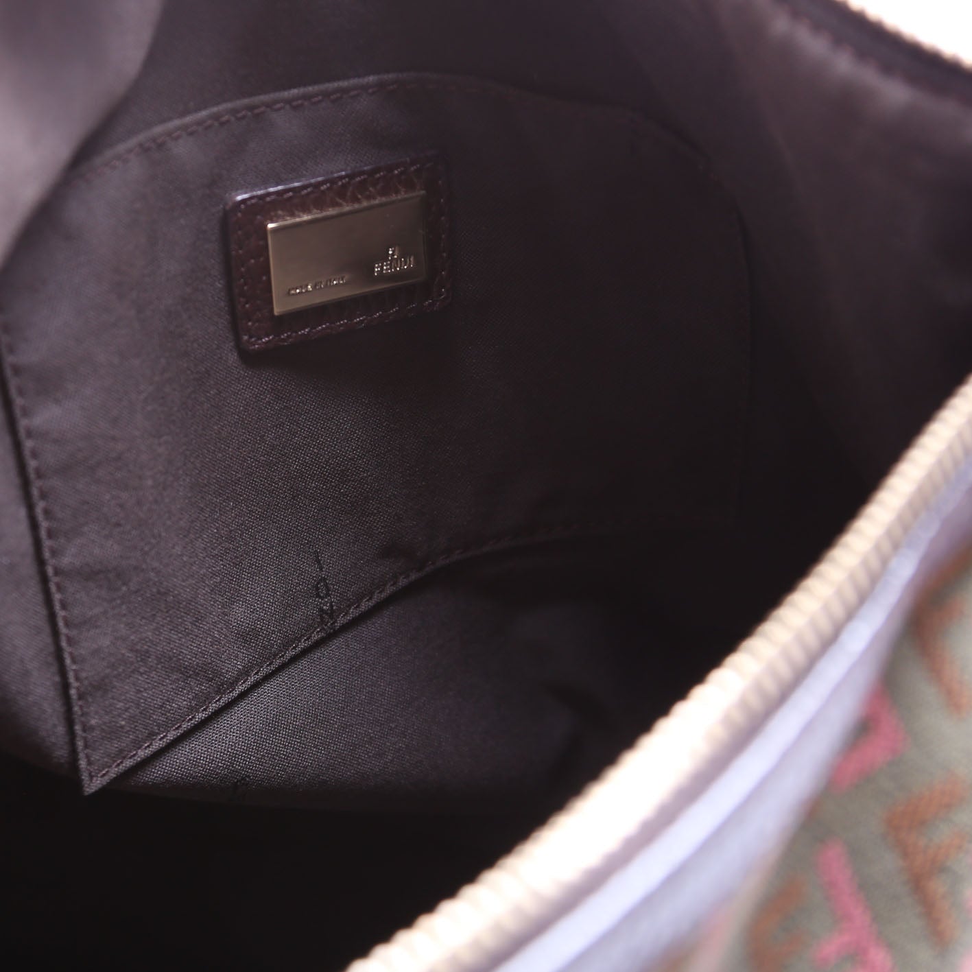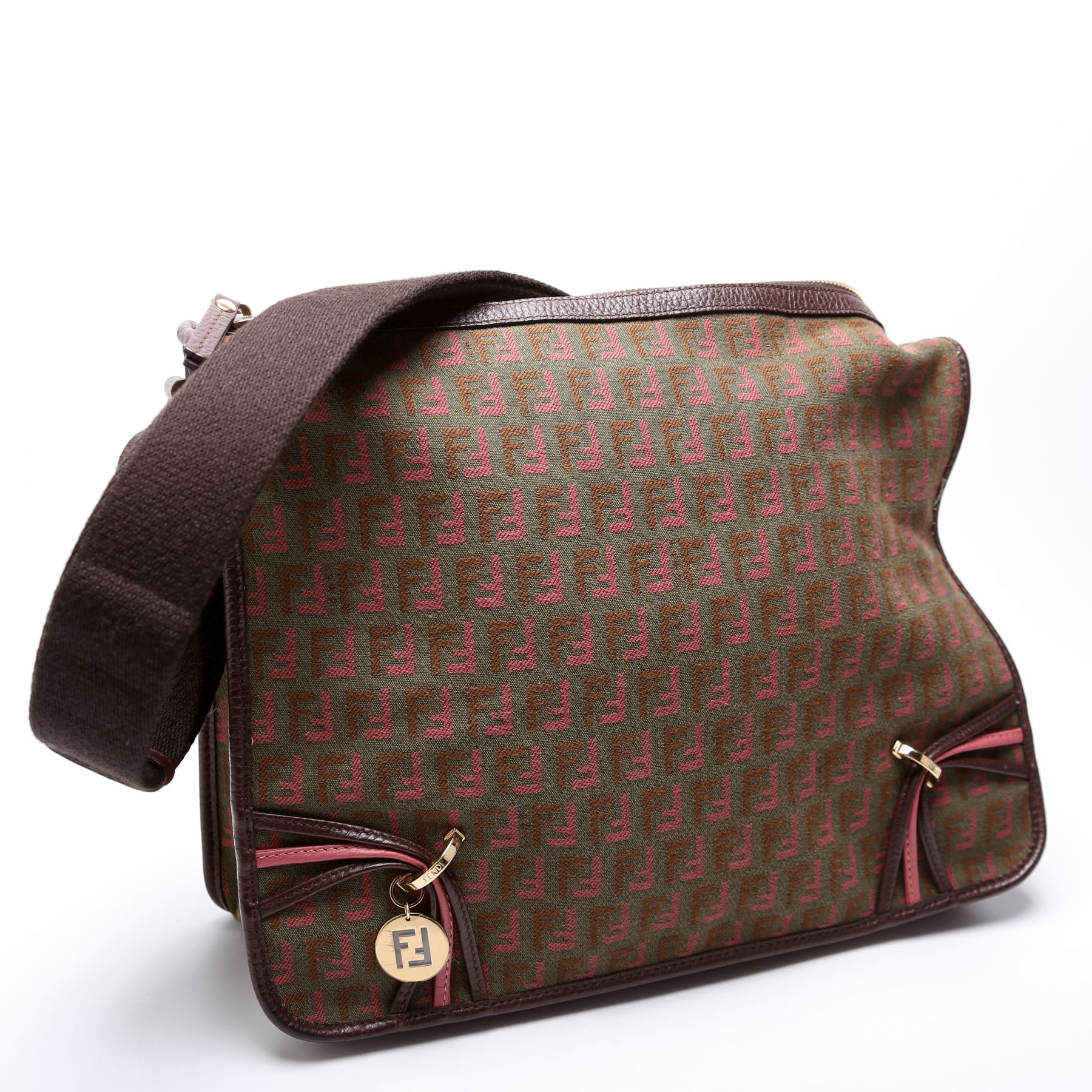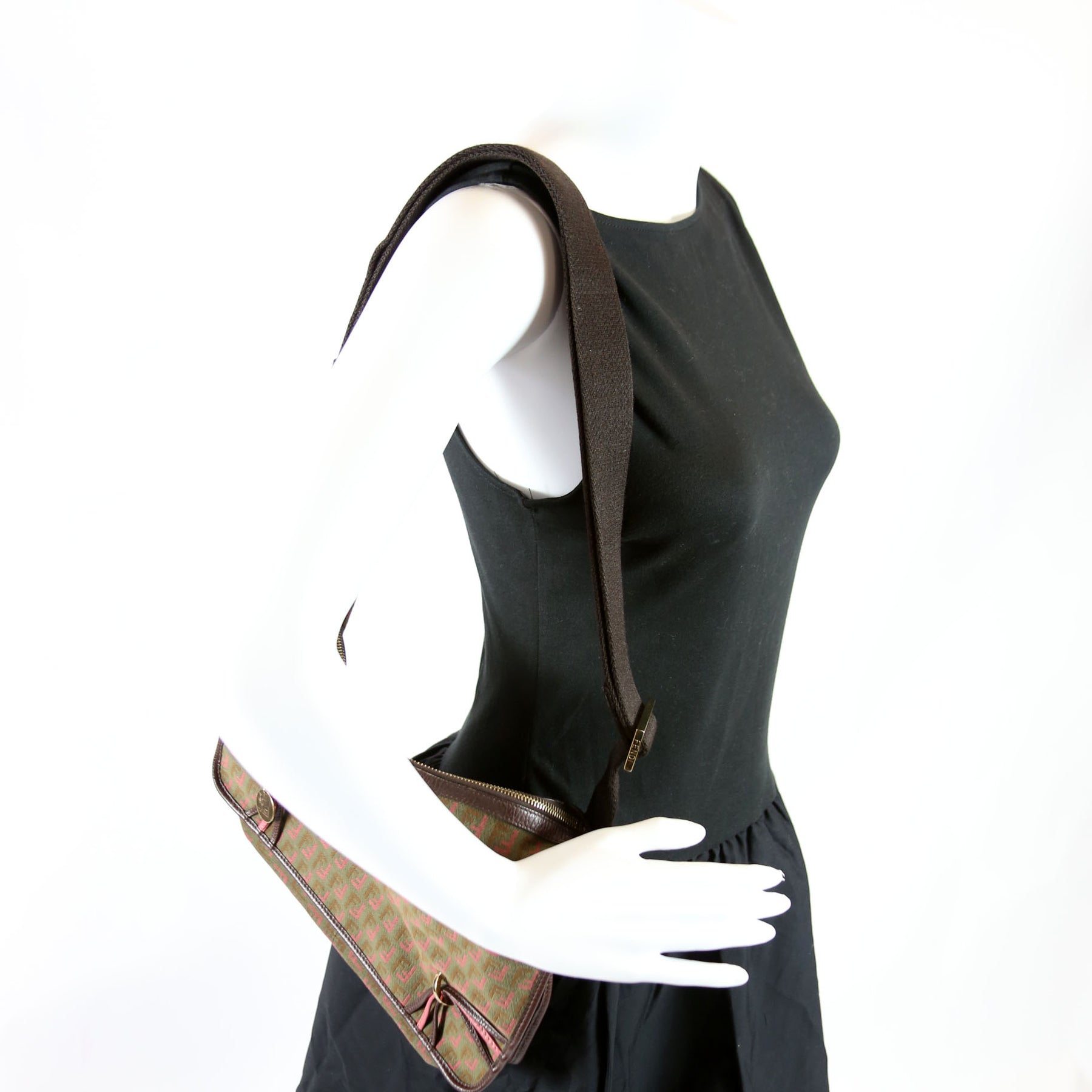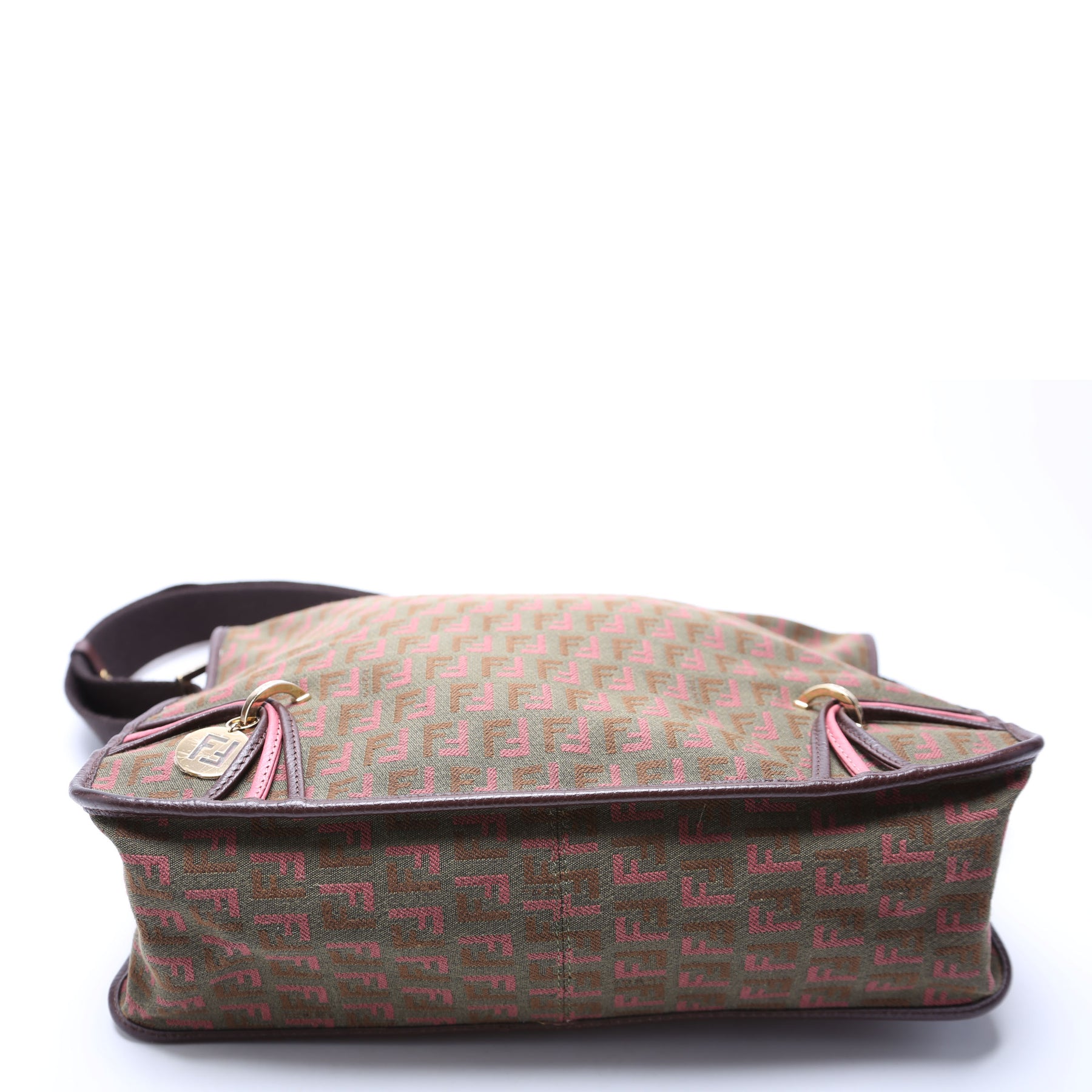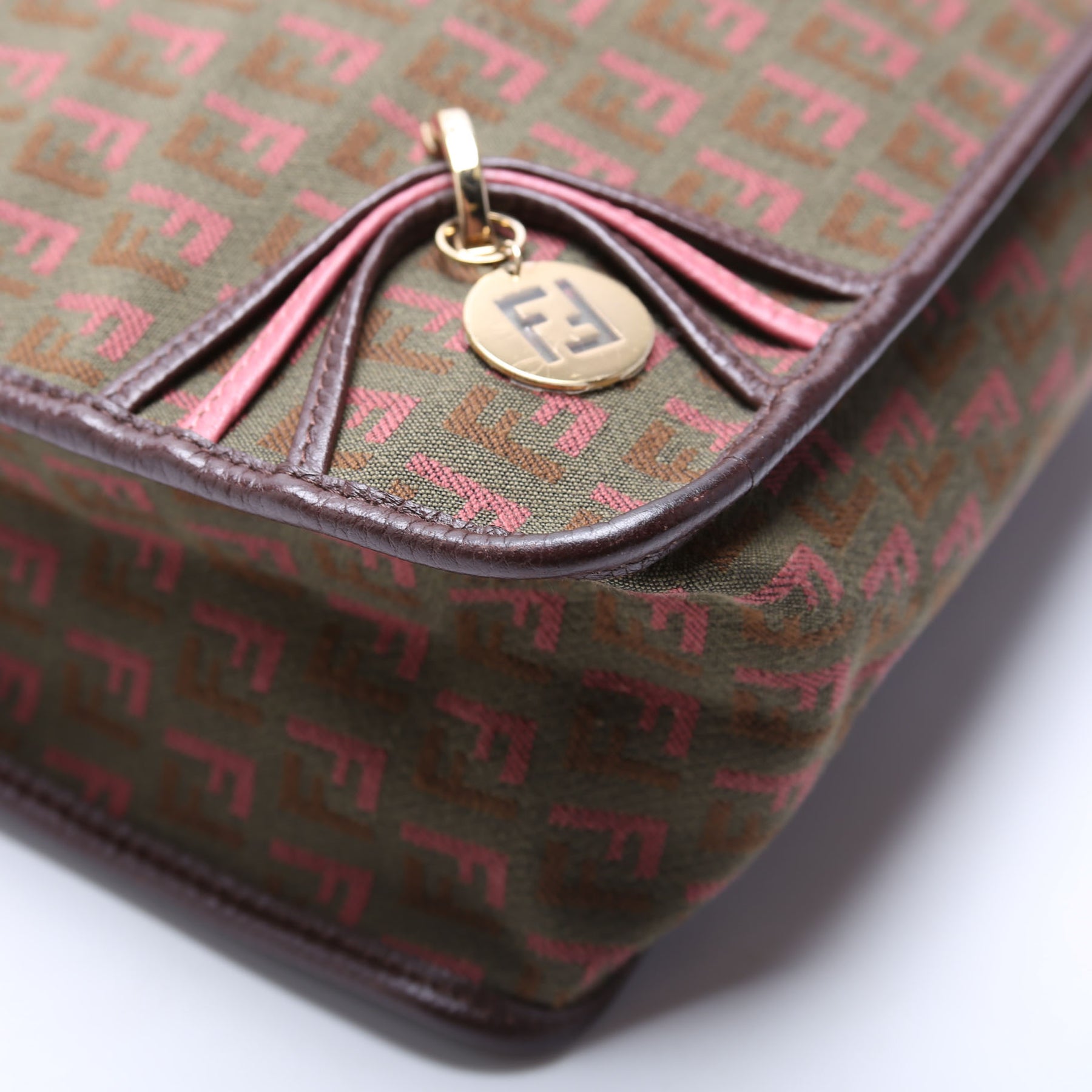 This pre-owned Fendi Zucchino FF Charm Shoulder Bag is guaranteed 100% authentic.