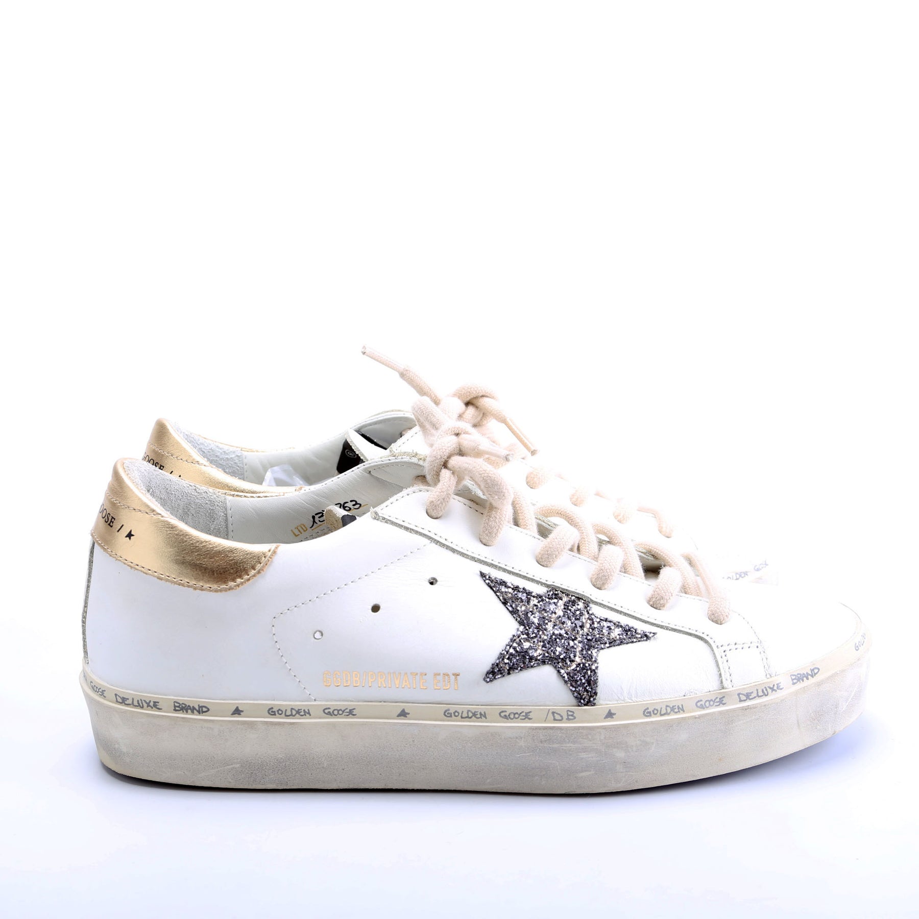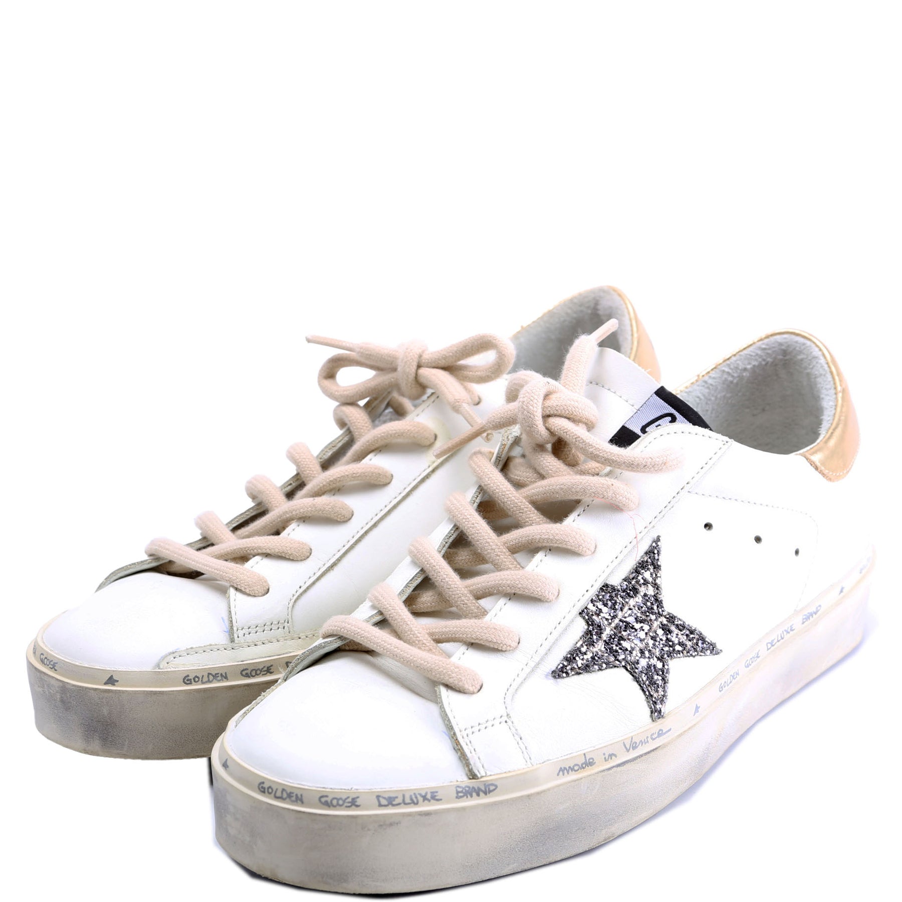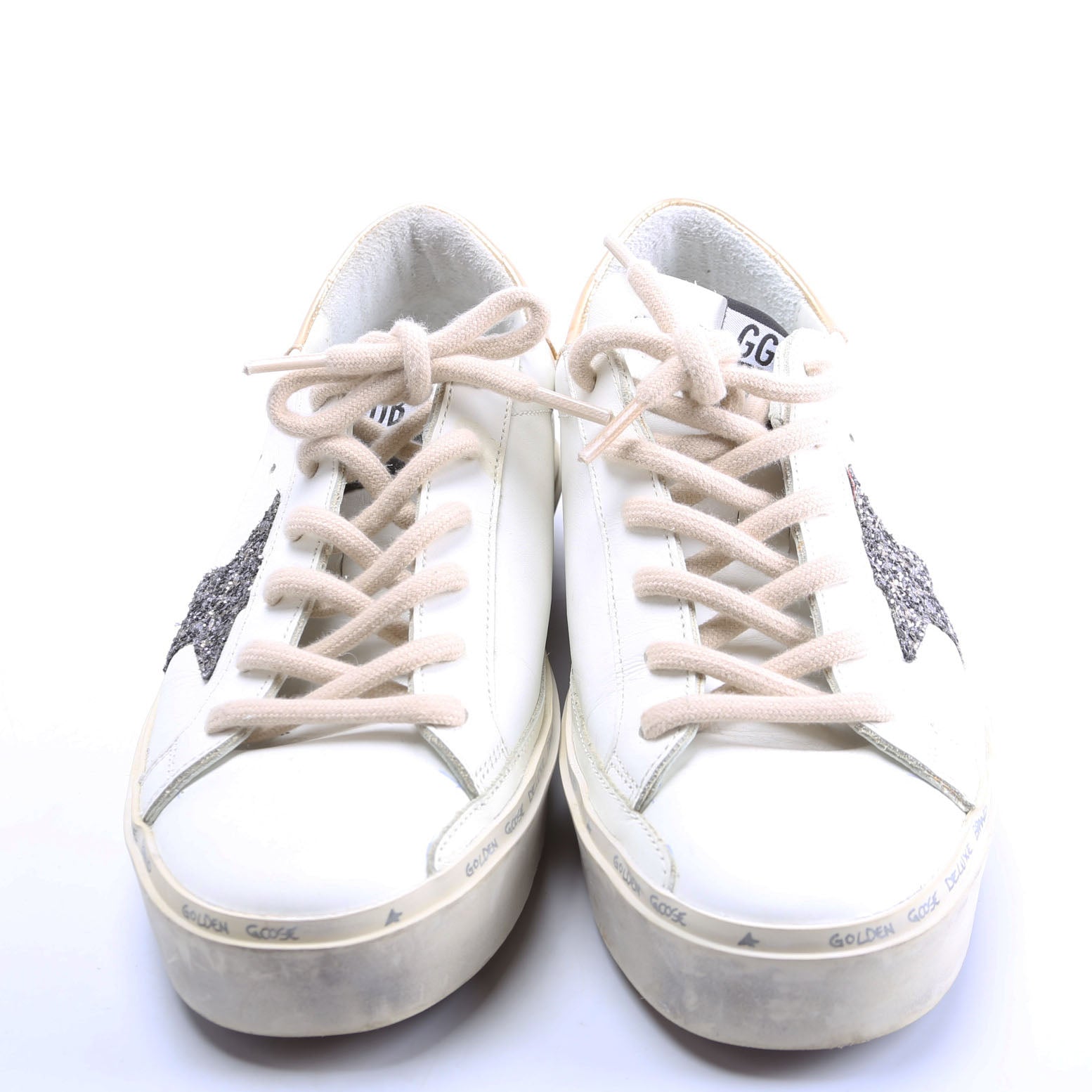 These pre-owned Golden Goose Hi-Star Sneakers are guaranteed 100% authentic.