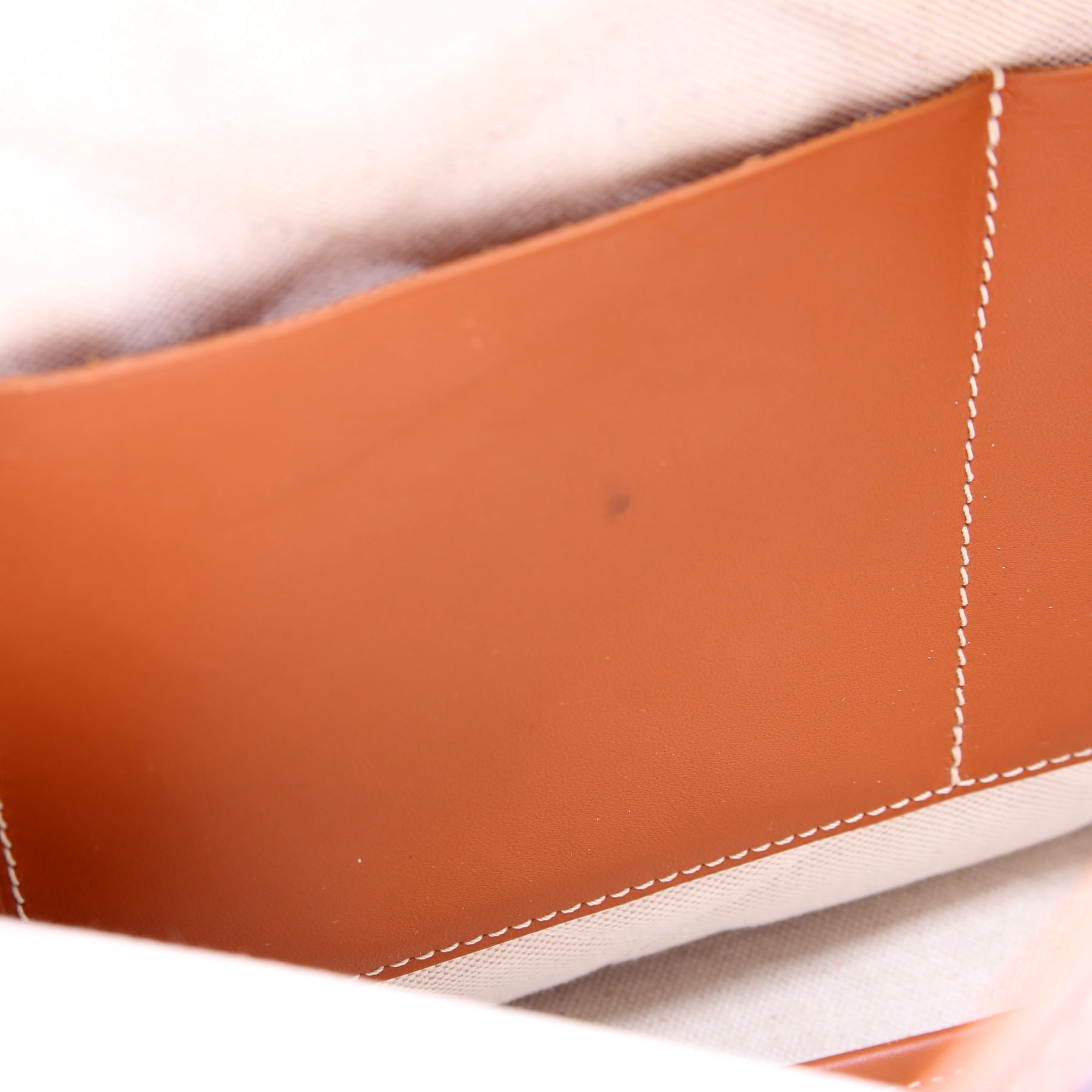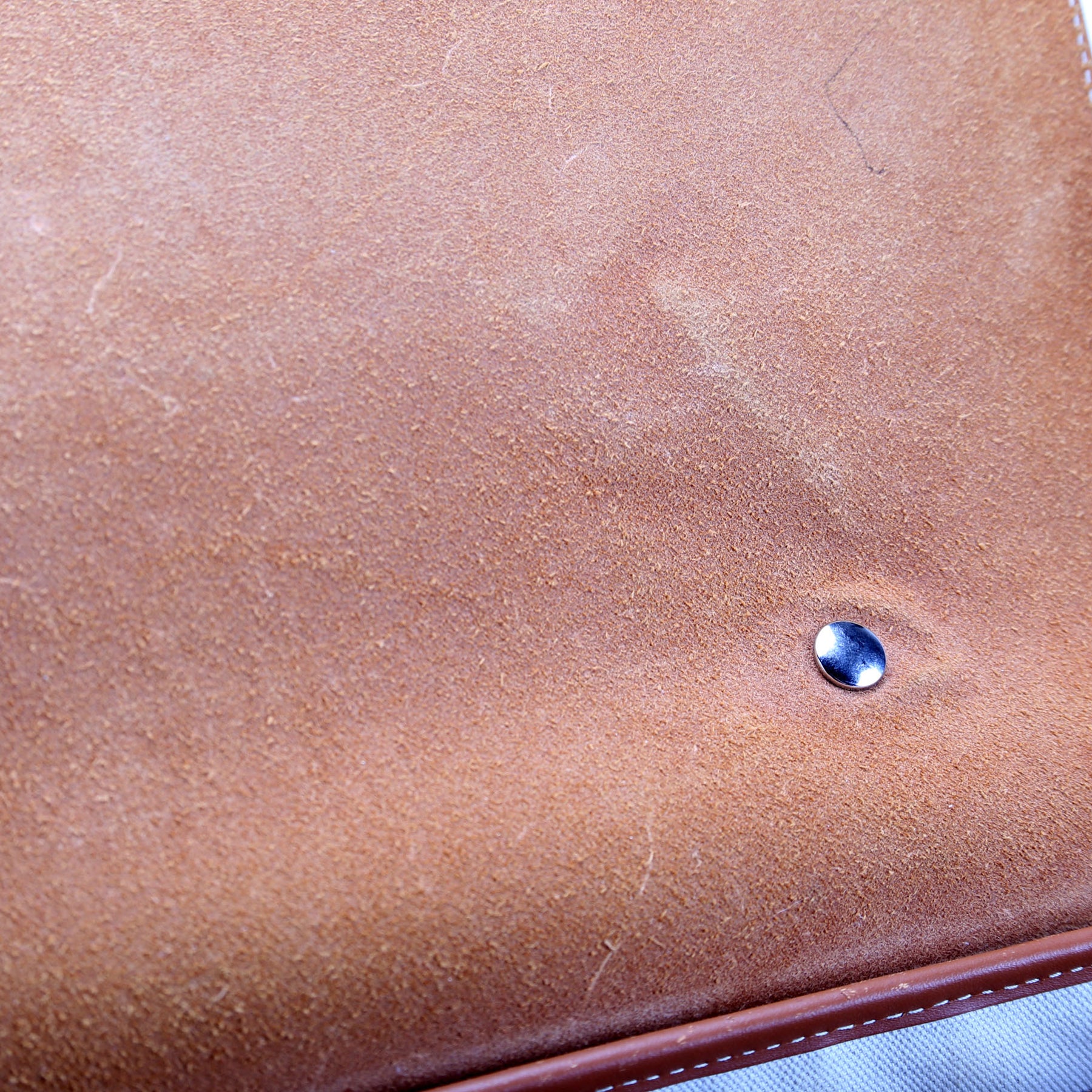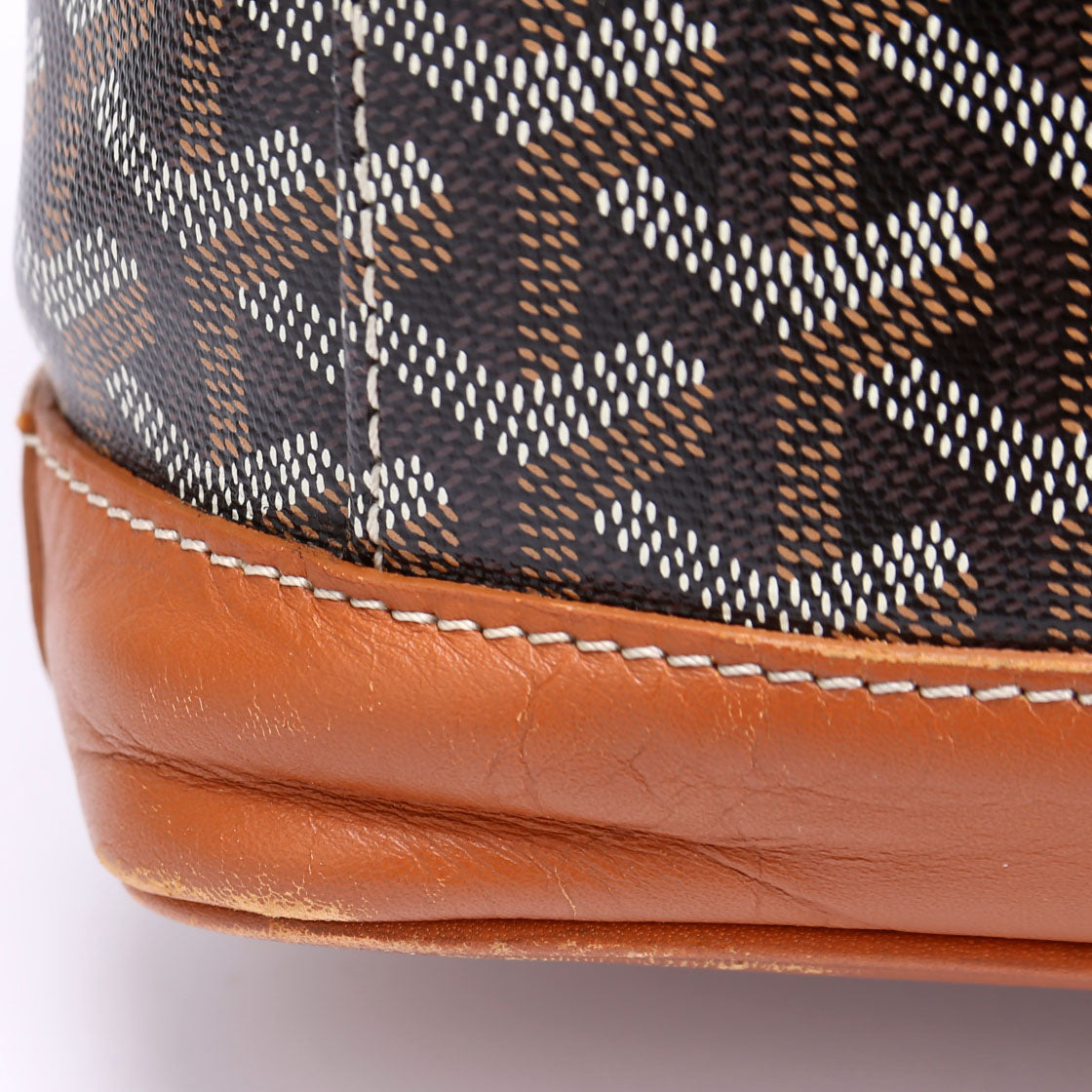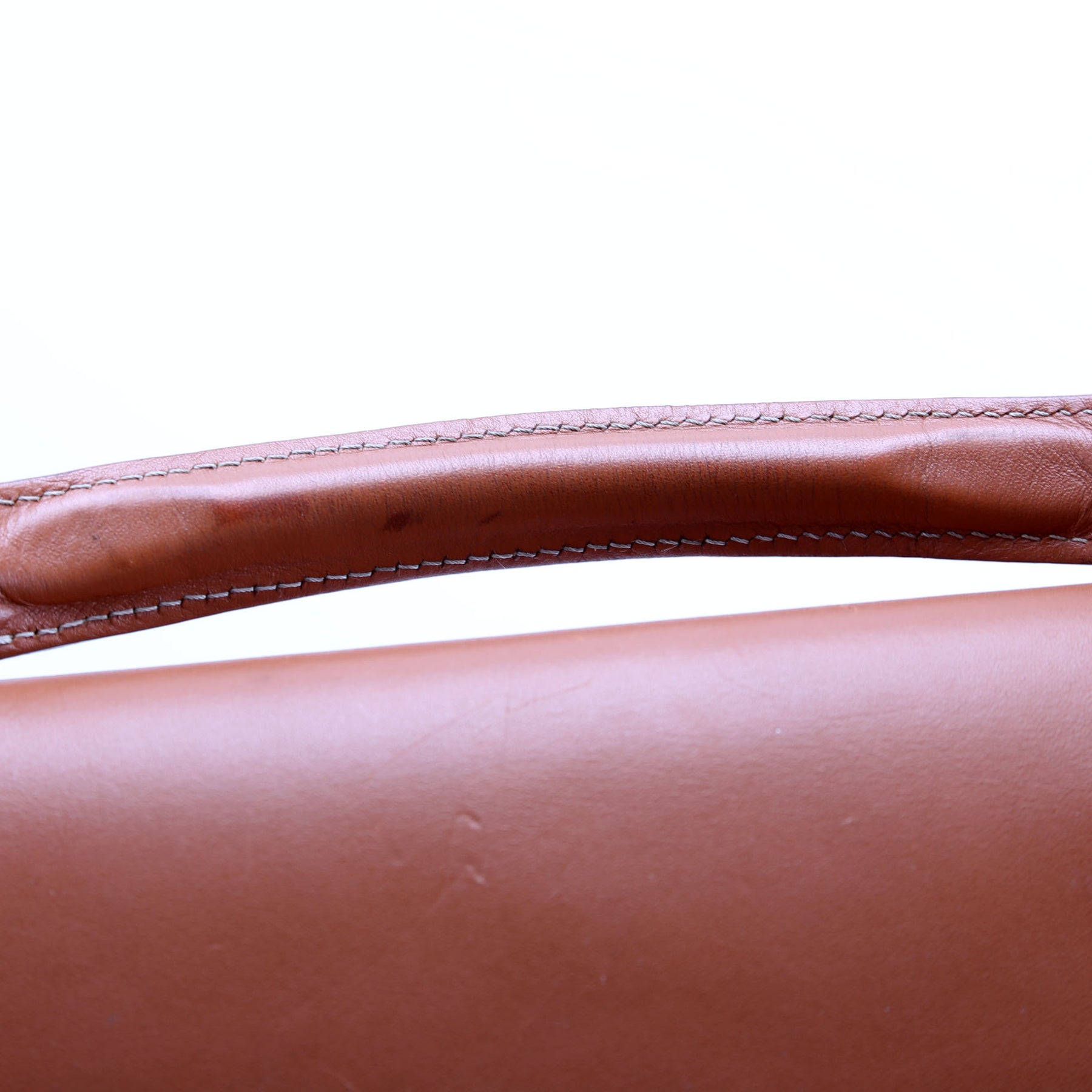 Handle: The leather handle shows cracking, scuffs and discoloration throughout. The leather base is starting to rip at the base of the handles.